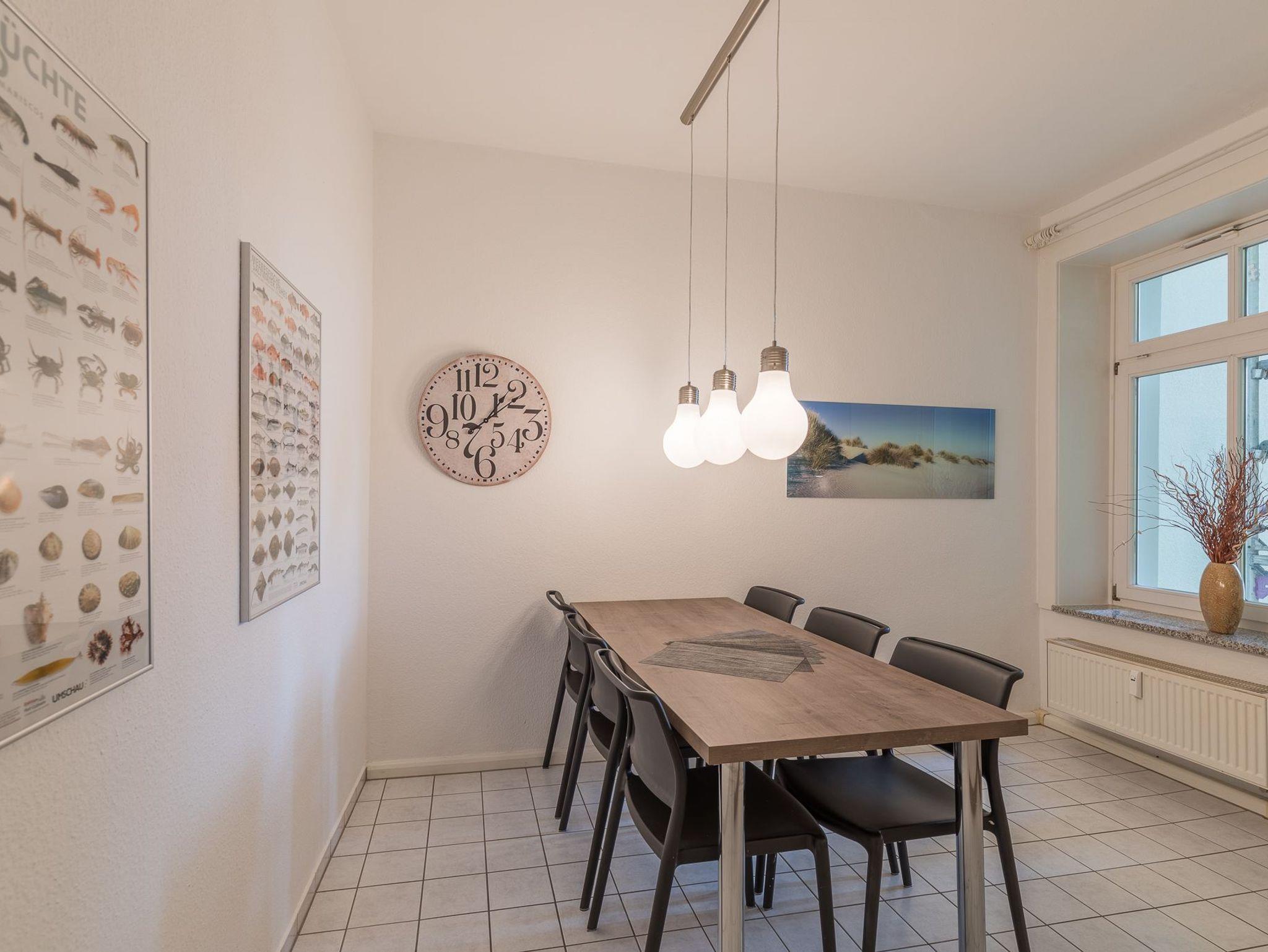 Fahrstuhl im Haus (fährt aber nur bis zur halben Etage), vom Wohnzimmer und den beiden Schlafzimmern haben Sie eine Teilseesicht, innerhalb weniger Gehminuten erreichen Sie die Alte Liebe und verschiedene Restaurants. Genießen Sie die Leichtigkeit und Weitläufigkeit unserer Ferienhäuser und die Wohlfühlatmosphäre an der Nordsee.