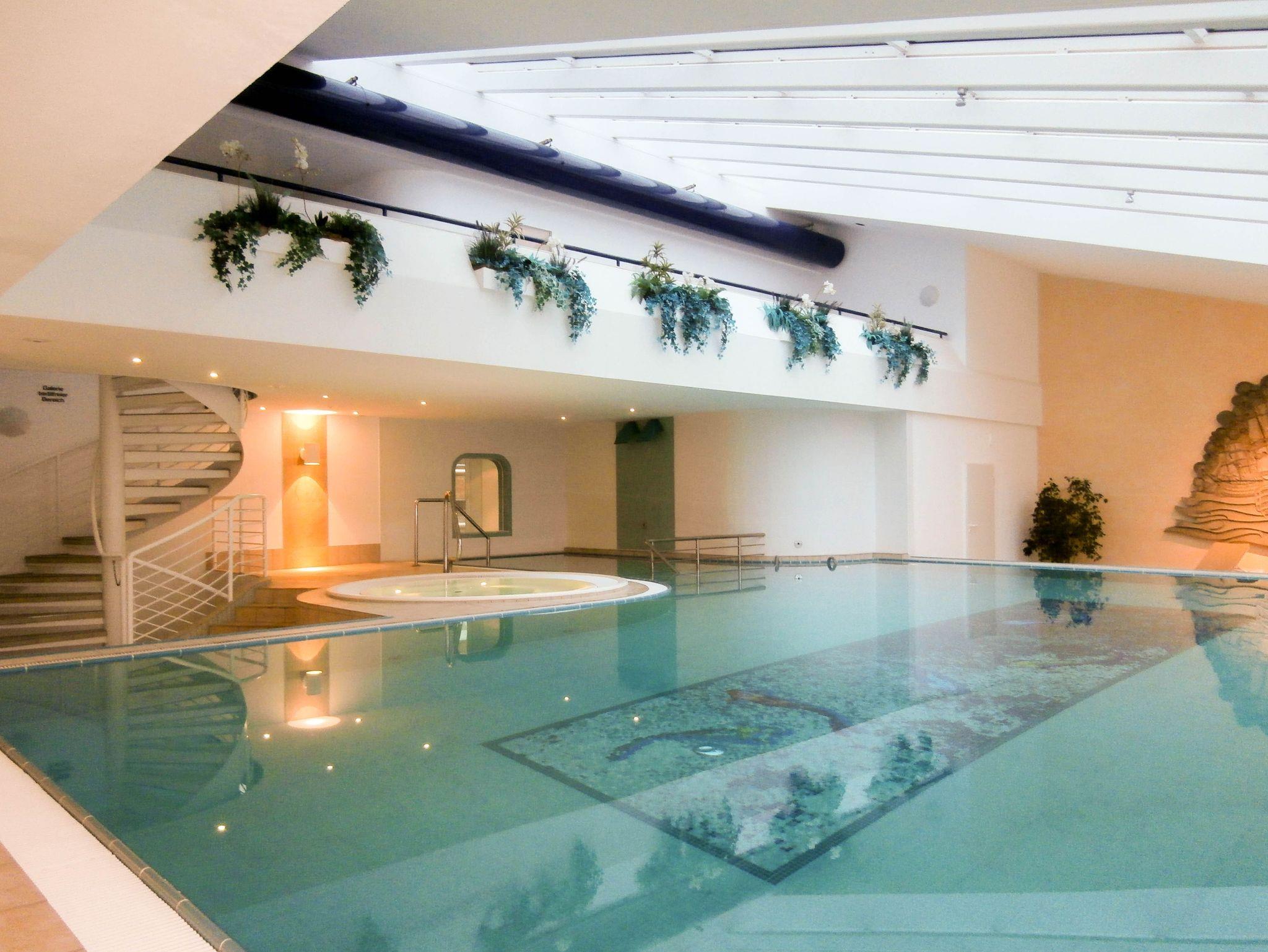 Freizeitangebote: Tischtennisraum, Freizeitbereich mit Hallenbad inkl. Wasserfall und Gegenstromanlage, Whirlpool, Fitnessraum, Dampfsaune, finnische Sauna und Biosauna (mit 60° und 40-50% Luftfeuchtigkeit). Ebenfalls im Haus befinden sich ein Restaurant, eine Pizzeria, ein Eiscafe, ein Backshop, ein Kiosk sowie ein Kosmetiksalon.