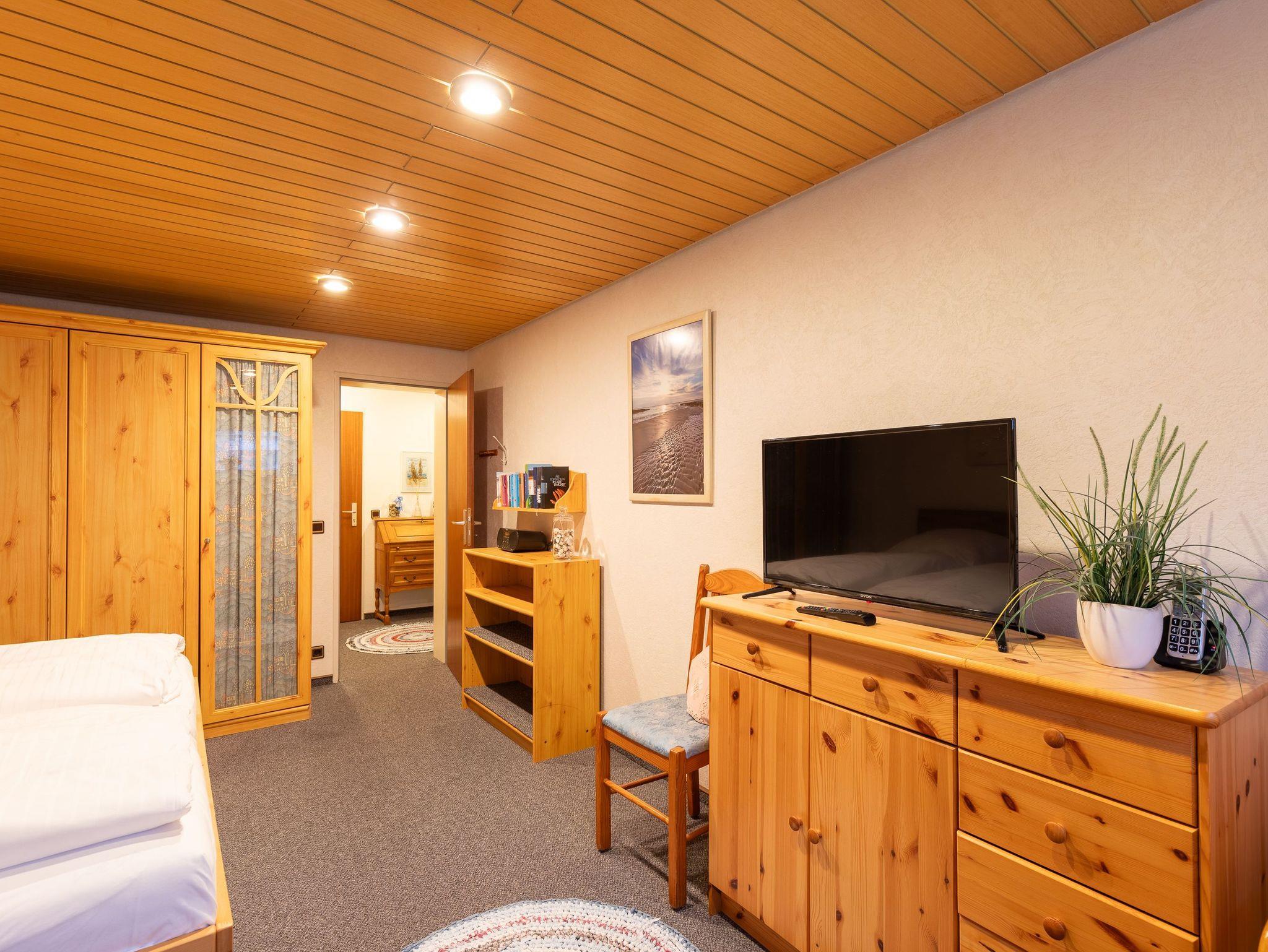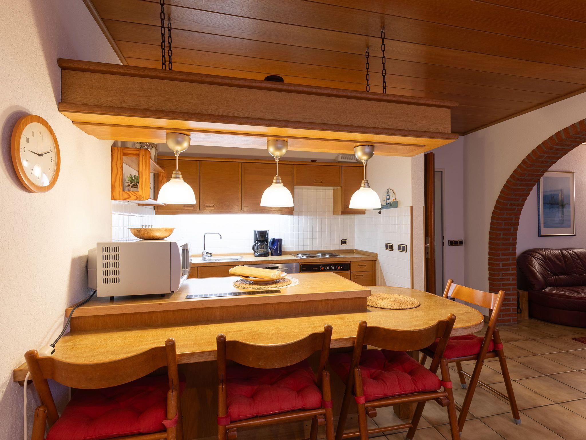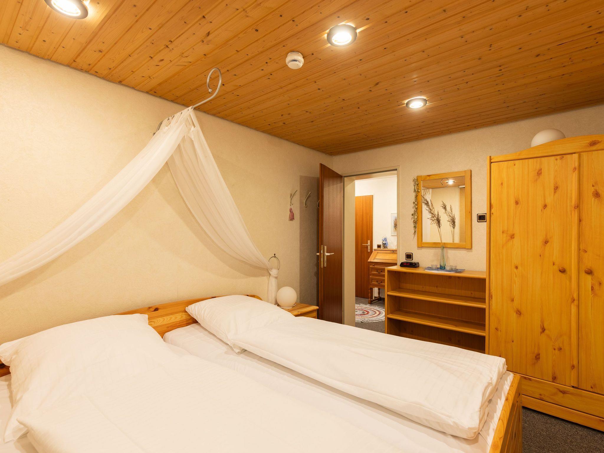 Die 3 Zimmer Wohnung, ca. 76m² ist für bis zu 5 Personen ausgestattet, helles großes Wohnzimmer mit Sofa, TV, Essplatz mit 5 Stühlen und Zugang zum Balkon, mit Gartenmöbel, Küchenzeile (Kochfeld mit vier Platten, kleiner Backofen, Geschirrspüler, Kaffeemaschine, Wasserkocher, Toaster), 1 Bad mit Dusche und WC, Flur, die Schlafzimmer befinden sich im Souterrain (an heißen Tagen erwartet Sie hier eine angenehme Kühle und ein gutes Raumklima), 1 Schlafzimmer mit Doppelbett und Kleiderschrank, 1 Schlafzimmer mit Doppelbett, 1 Einzelbett und Kleiderschrank, PKW-Stellplatz am Haus, Nichtraucher, es sind keine Tiere erlaubt.