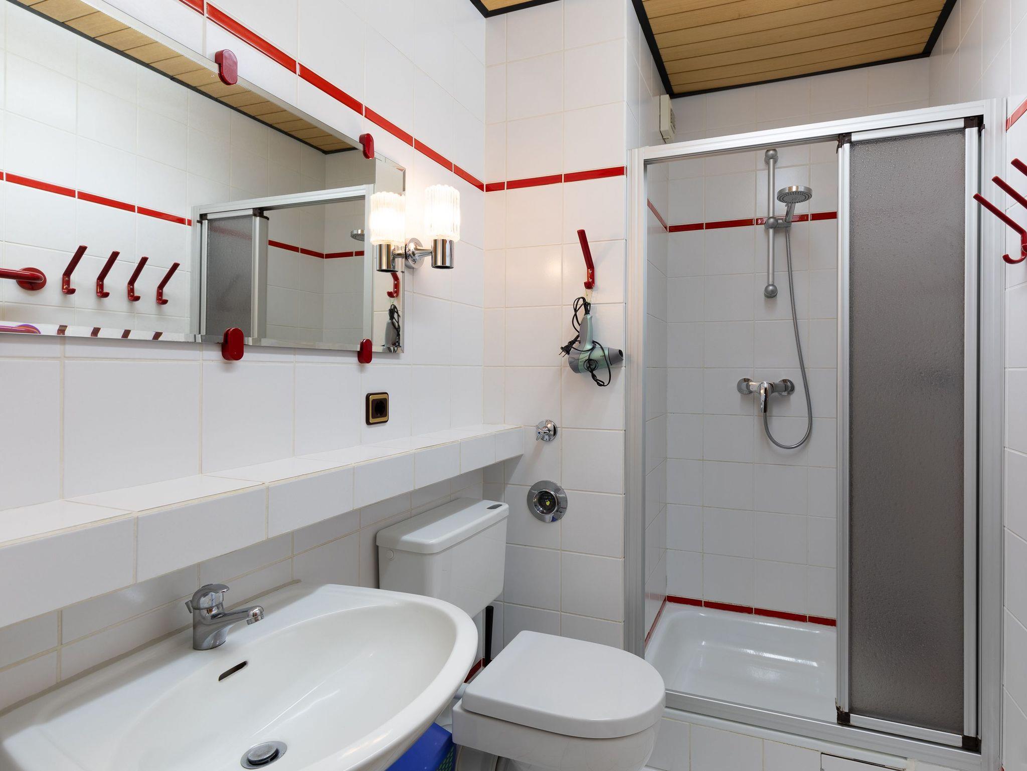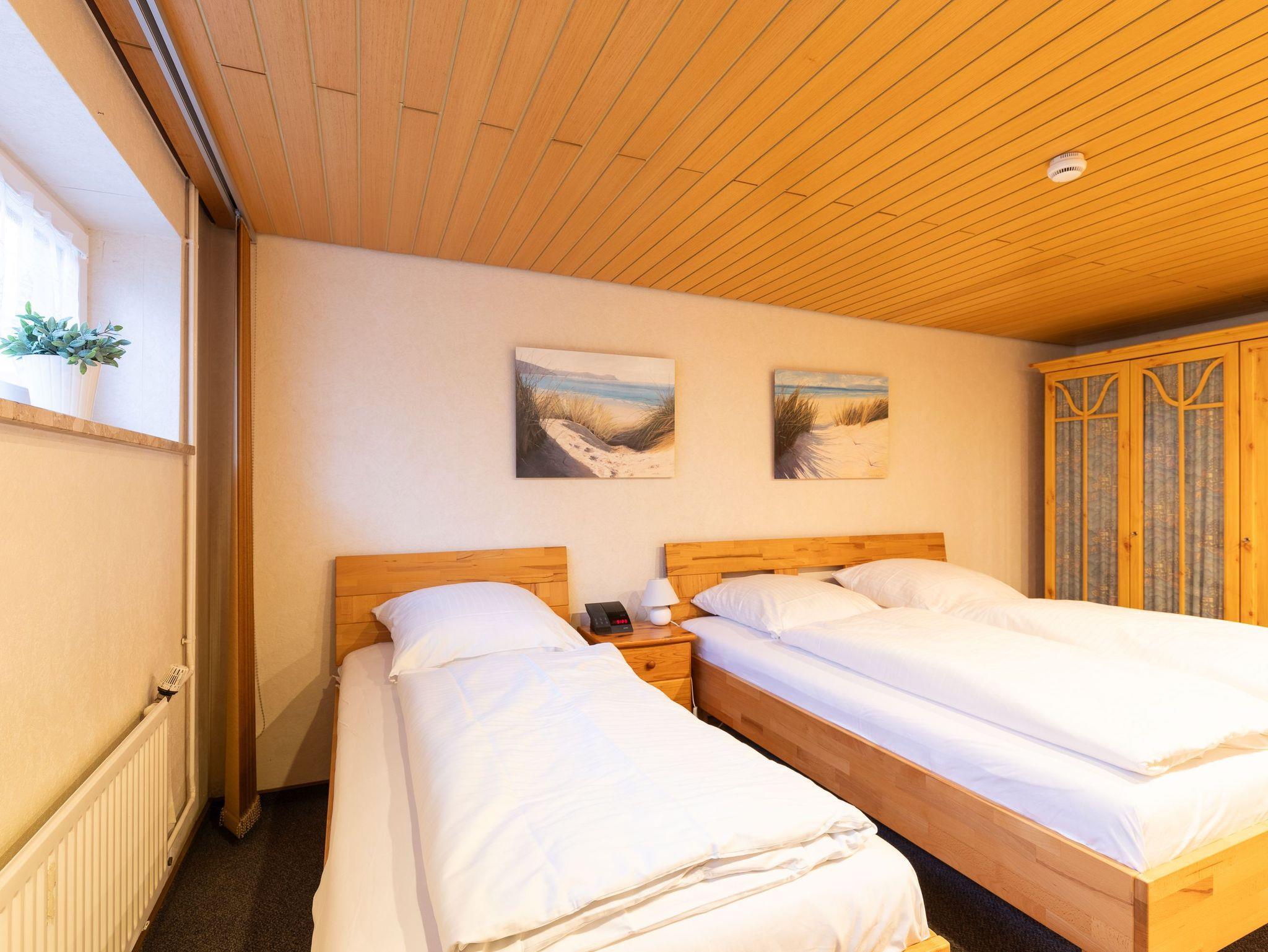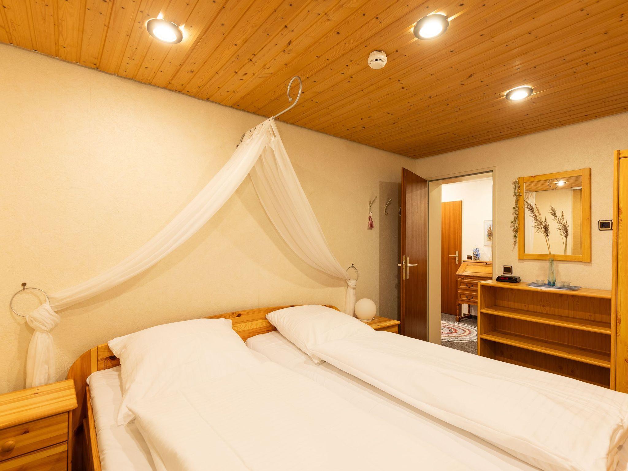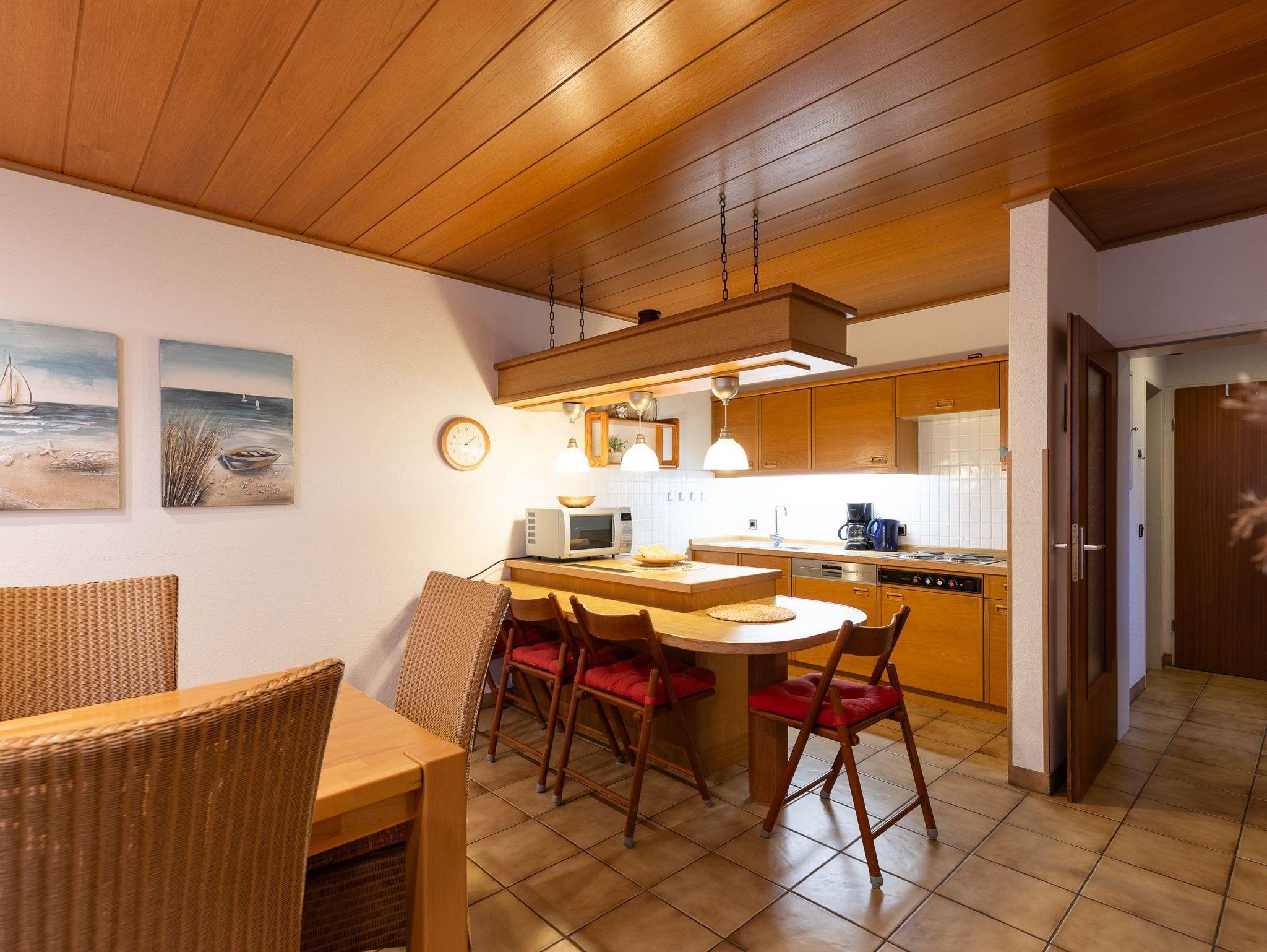 Die 3 Zimmer Wohnung, ca. 76m² ist für bis zu 5 Personen ausgestattet, helles großes Wohnzimmer mit Sofa, TV, Essplatz mit 5 Stühlen und Zugang zum Balkon, mit Gartenmöbel, Küchenzeile (Kochfeld mit vier Platten, kleiner Backofen, Geschirrspüler, Kaffeemaschine, Wasserkocher, Toaster), 1 Bad mit Dusche und WC, Flur, die Schlafzimmer befinden sich im Souterrain (an heißen Tagen erwartet Sie hier eine angenehme Kühle und ein gutes Raumklima), 1 Schlafzimmer mit Doppelbett und Kleiderschrank, 1 Schlafzimmer mit Doppelbett, 1 Einzelbett und Kleiderschrank, PKW-Stellplatz am Haus, Nichtraucher, es sind keine Tiere erlaubt.