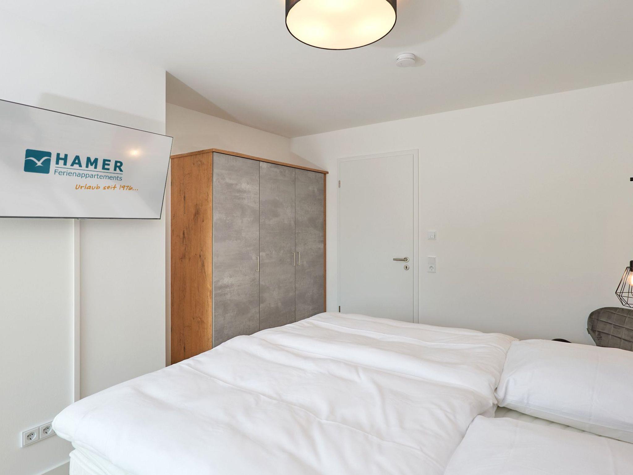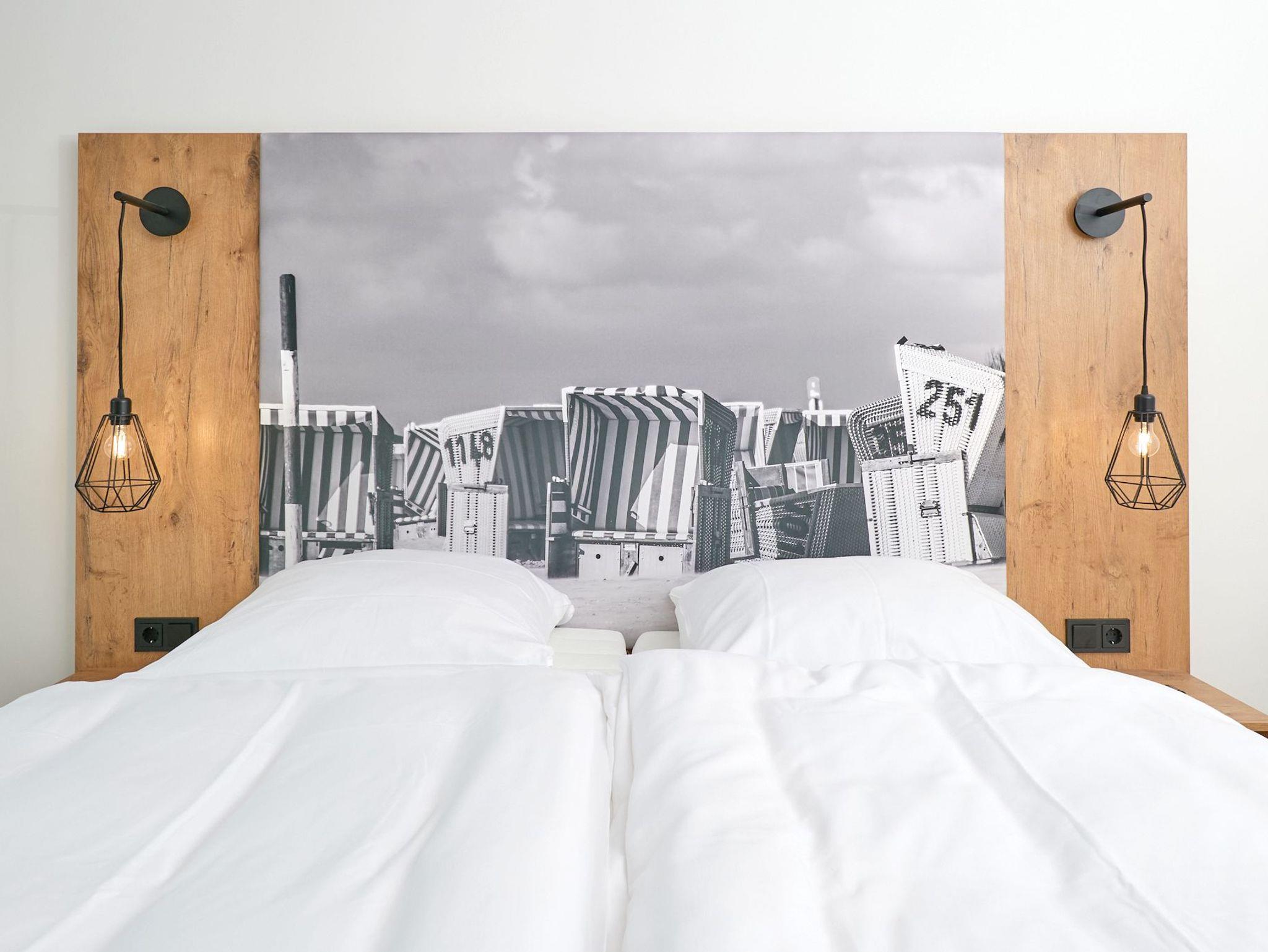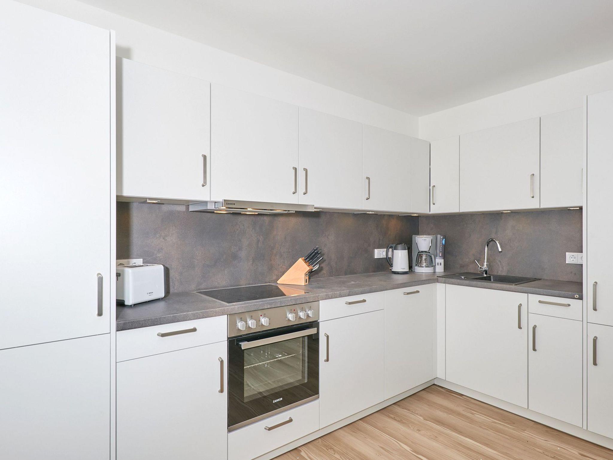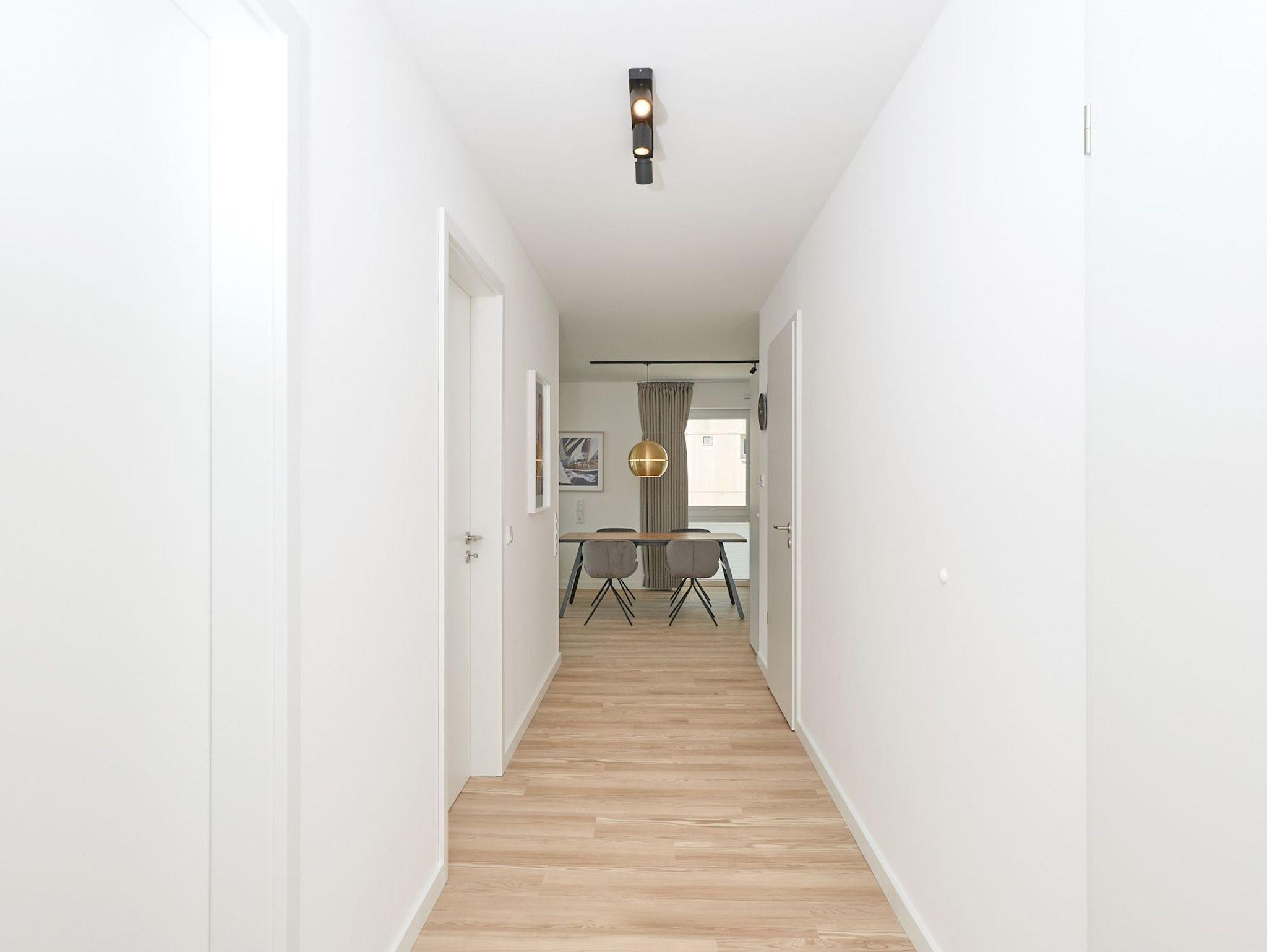 Neubau Mai 2023! Sehr schöne, moderne 3-Raum-Wohnung bis 4 Pers. voll ausgestattet auf ca. 99 m² in der 1.Etage gelegen, 2 Schlafzimmer mit komfortablen Doppelbetten (Bettwäsche inkl.) und Außenjalousien an allen Fenstern, ebenerdige Dusche/WC, Wohnzimmer mit großer Küchenzeile (Backofen, Geschirrspüler, Mikrowelle) 3x Kabel-TV, Radio, kostenfreies W-LAN-Internet, großer Balkon (west) mit Teilseesicht, Personenaufzug, reservierter Pkw-Stellplatz in der Tiefgarage inkl., es sind keine Haustiere erlaubt und natürlich Nichtraucher. Durchfahrtshöhe Tiefgarage: 2,05m.