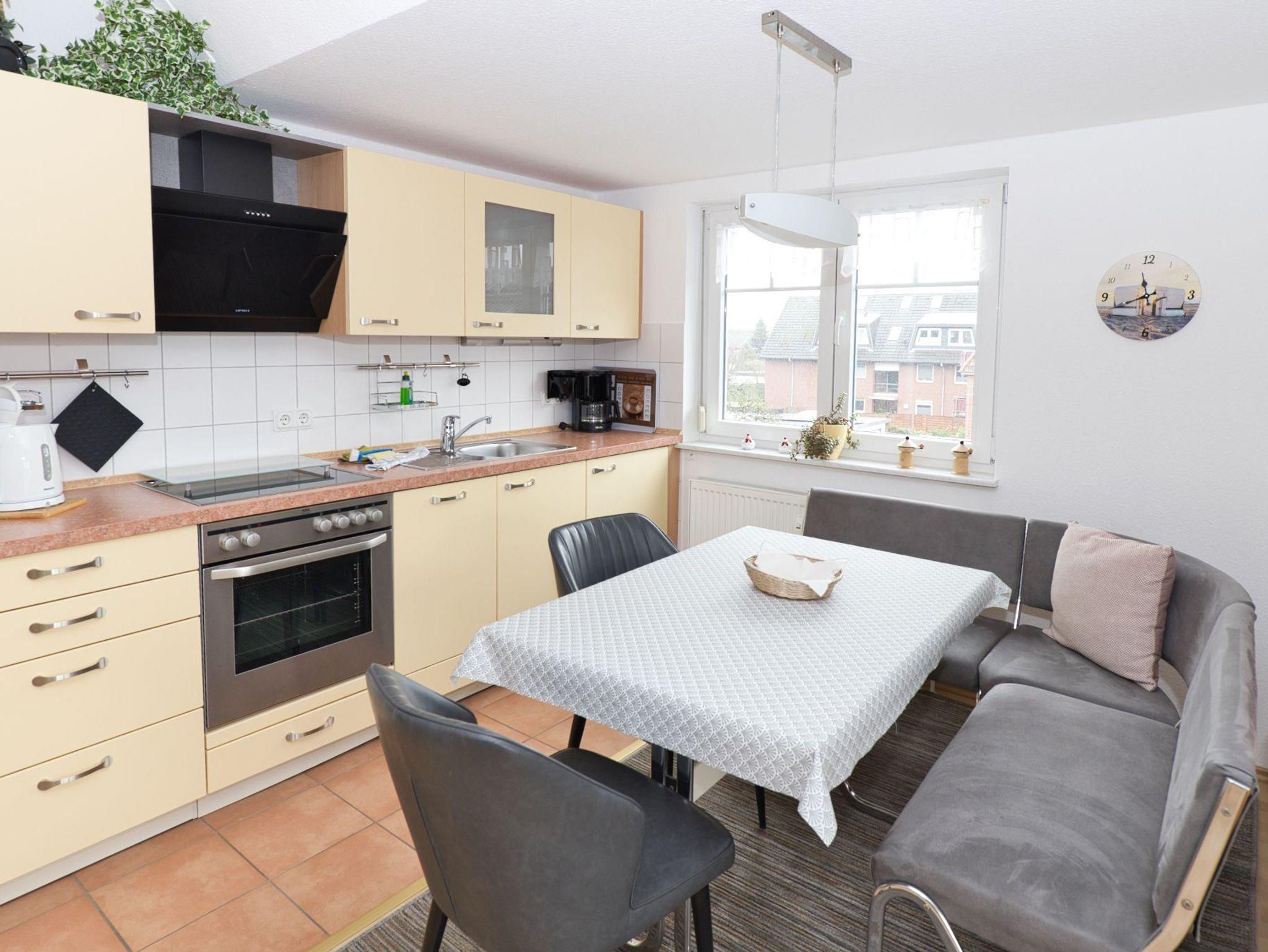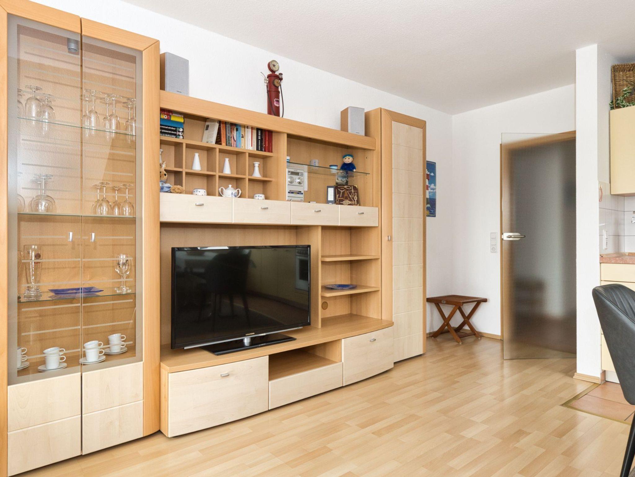 Die Wohnung verfügt über ein geräumiges Schlafzimmer mit einem großen Kleiderschrank, damit Sie sich wie zu Hause fühlen können. Das Duschbad ist mit einer Fußbodenheizung und einem Fenster ausgestattet, um Ihnen ein angenehmes und erfrischendes Erlebnis zu bieten. Der gemütliche Wohnbereich ist großzügig gestaltet und bietet mit einer 4,60 m langen Fensterfront eine traumhafte Aussicht auf die Umgebung. Hier können Sie sich entspannen und in wenigen Schritten die Nordsee genießen. Der Essbereich bietet genügend Platz für 2 Personen und ist der ideale Ort für ein gemütliches Abendessen. Der Balkon mit Balkonmöbeln und einer Sonnenschutzmarkise, die Sie bequem per Fernbedienung bedienen können, lädt zum Verweilen und Entspannen ein.