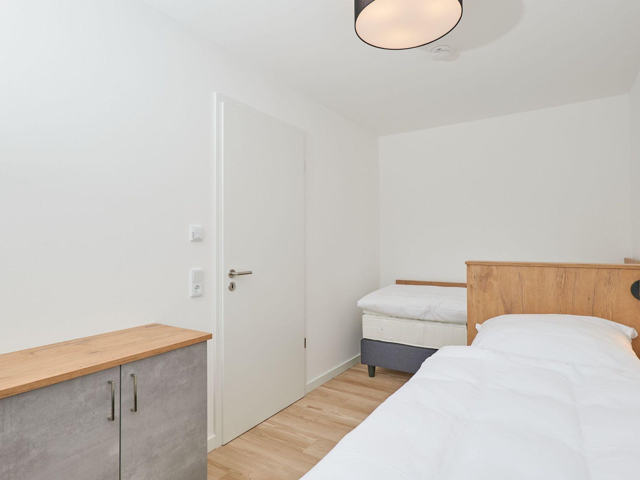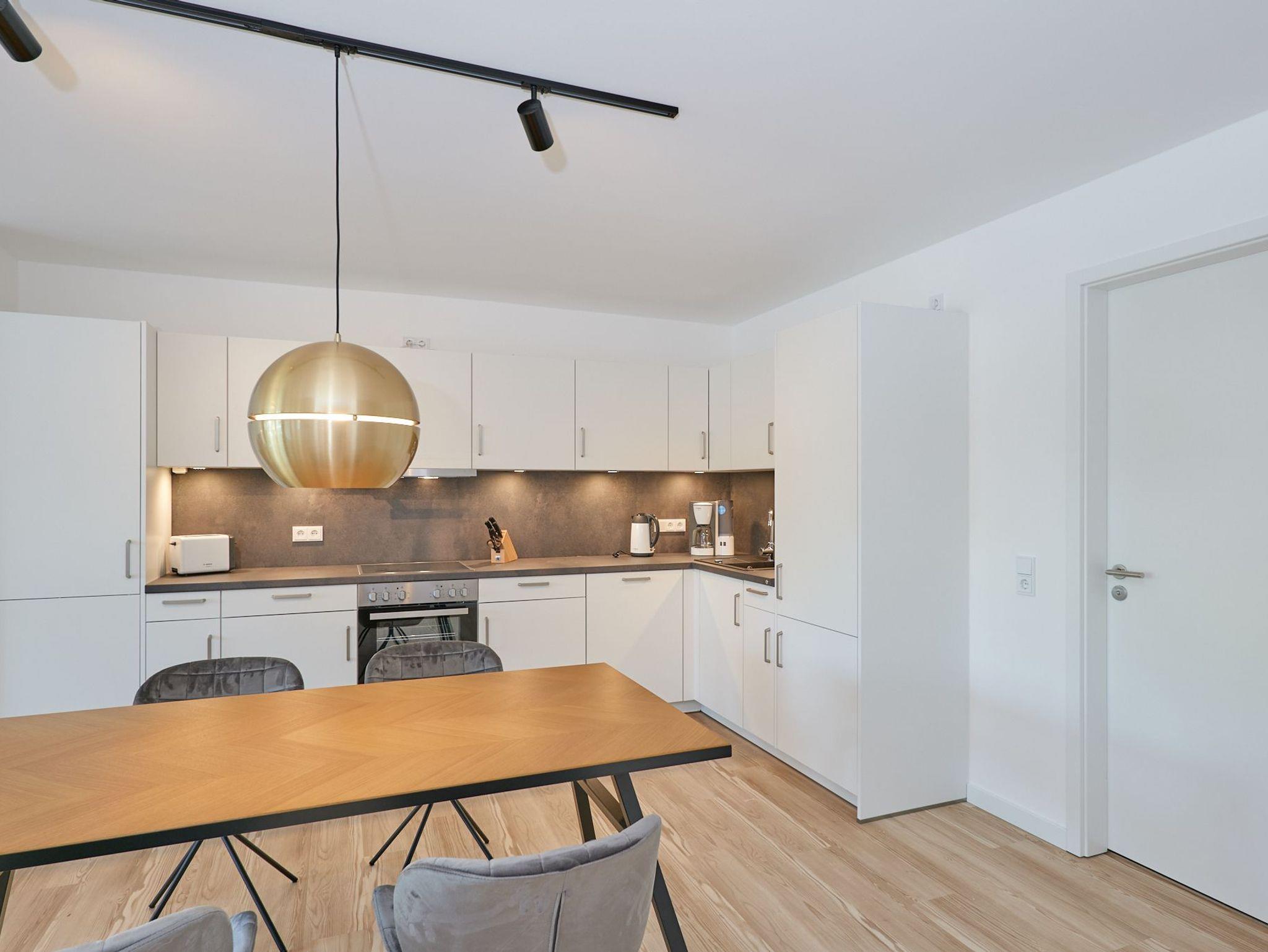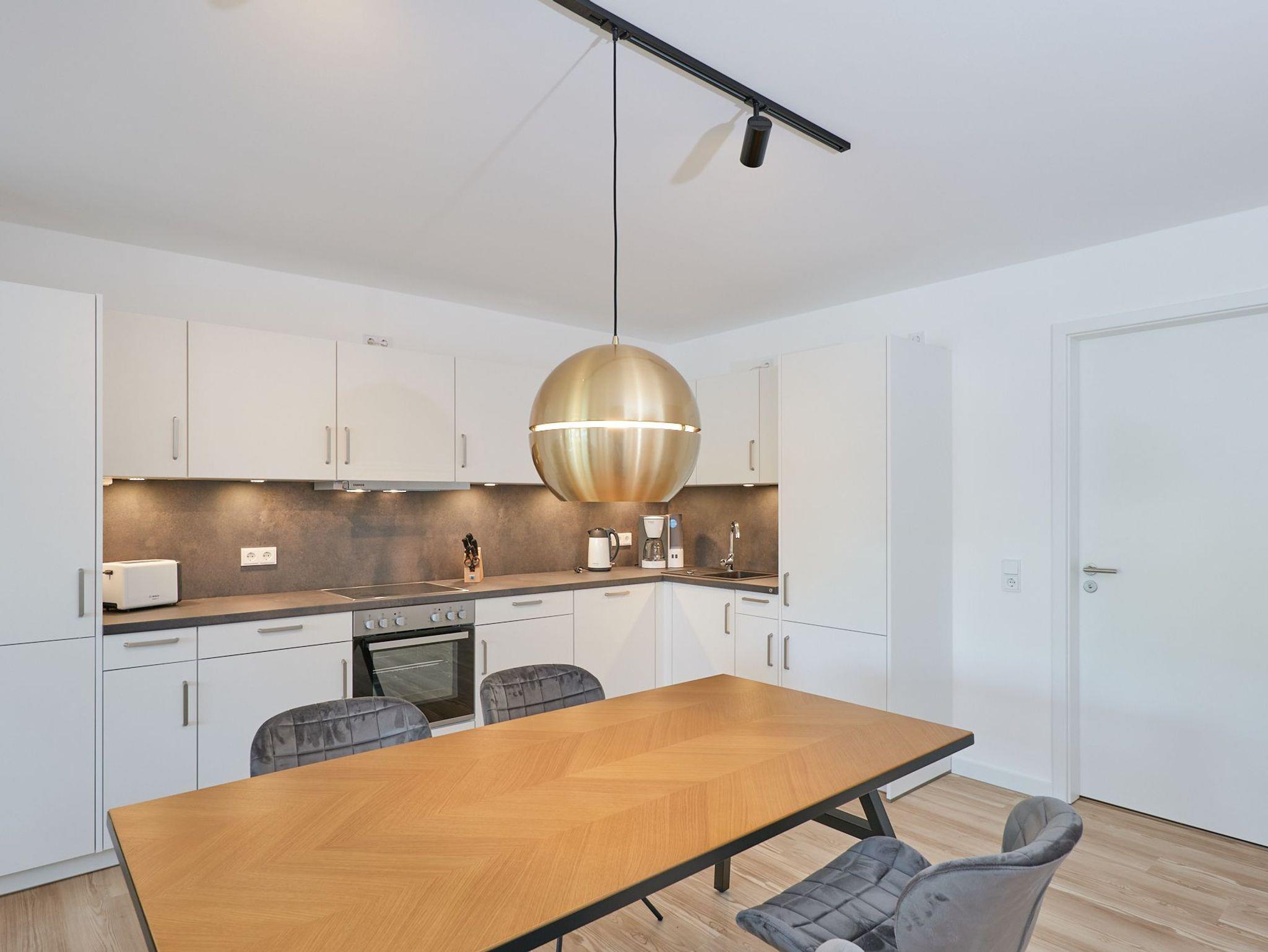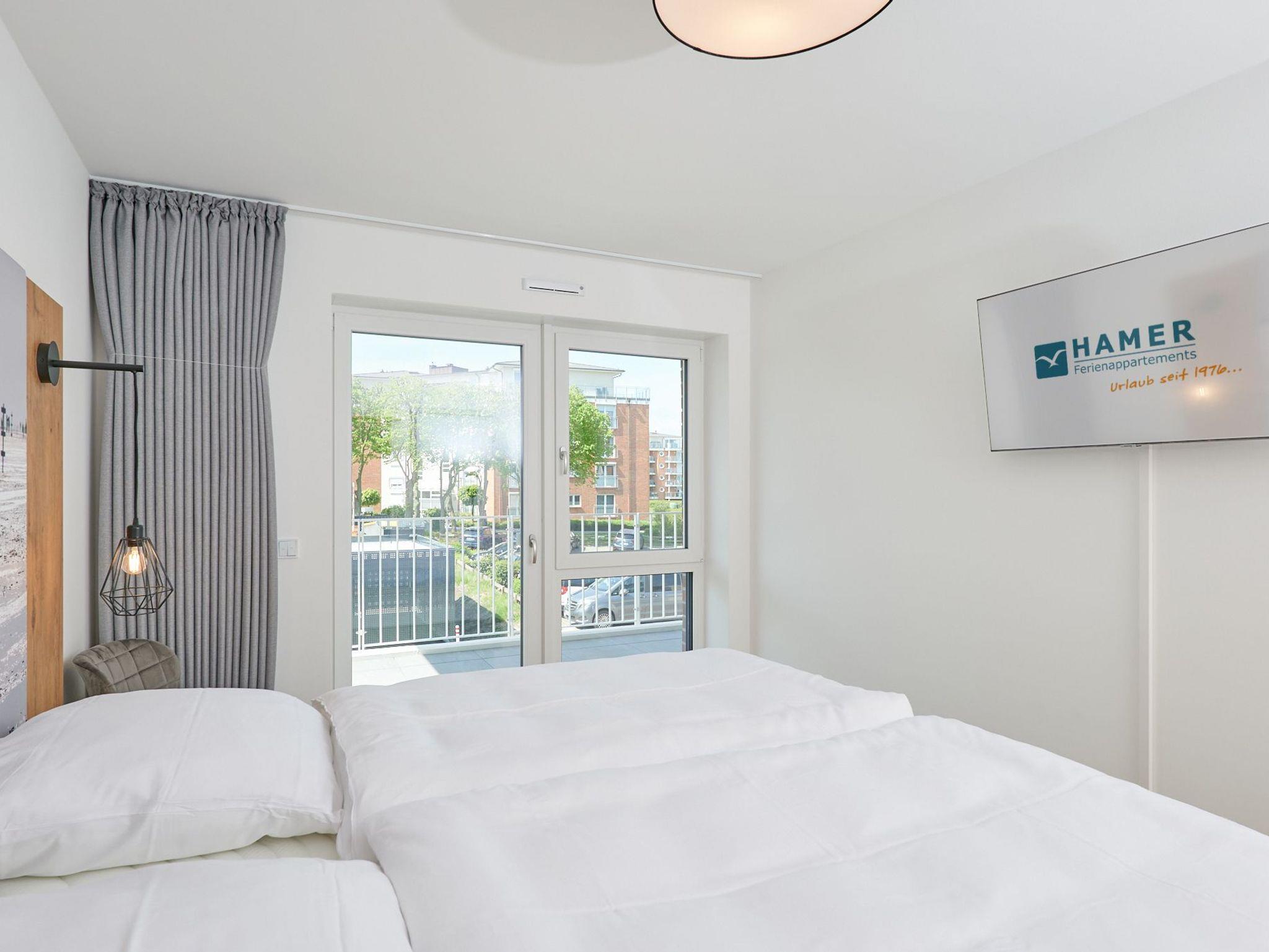 Neubau Mai 2023! Sehr schöne, moderne 3-Raum-Wohnung bis 4 Pers. voll ausgestattet auf ca. 89 m² in der 2.Etage gelegen, 2 Schlafzimmer (1x Doppelbett, 1x 2 Einzelbetten) und Außenjalousien an allen Fenstern, ebenerdige Dusche/WC, Wohnzimmer mit großer Küchenzeile (Backofen, Geschirrspüler, Mikrowelle), 2x Kabel-TV, Radio, kostenfreies W-LAN-Internet, großer Balkon (west) mit Teilseesicht, Personenaufzug, reservierter Pkw-Stellplatz in der Tiefgarage inkl., es sind keine Haustiere erlaubt und natürlich Nichtraucher. Durchfahrtshöhe Tiefgarage: 2,05m.
