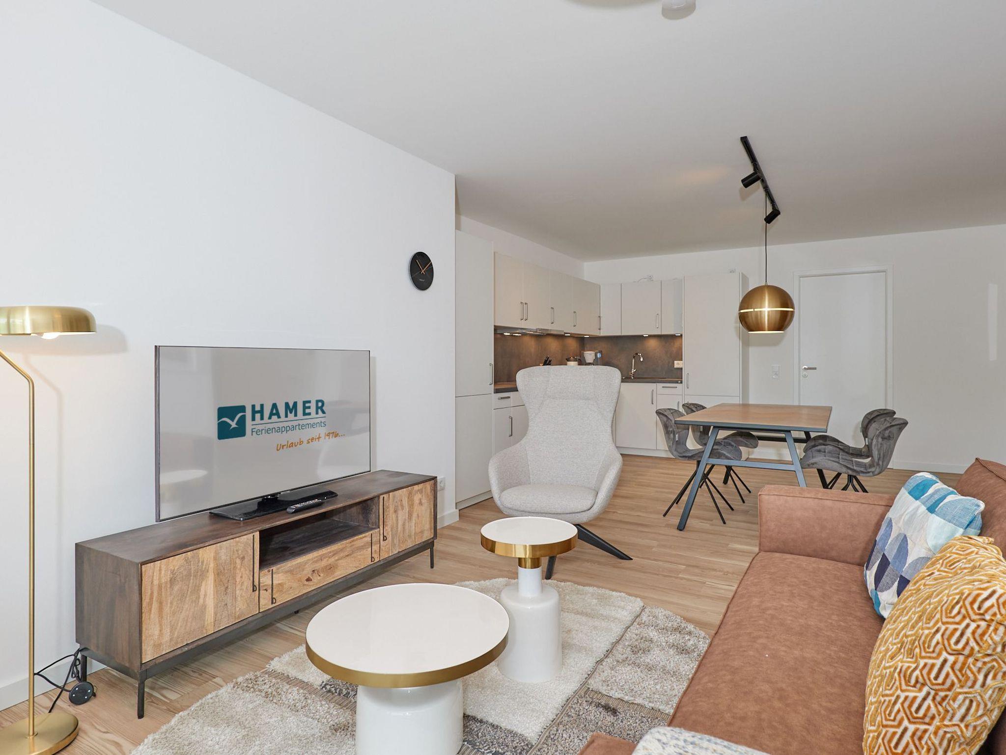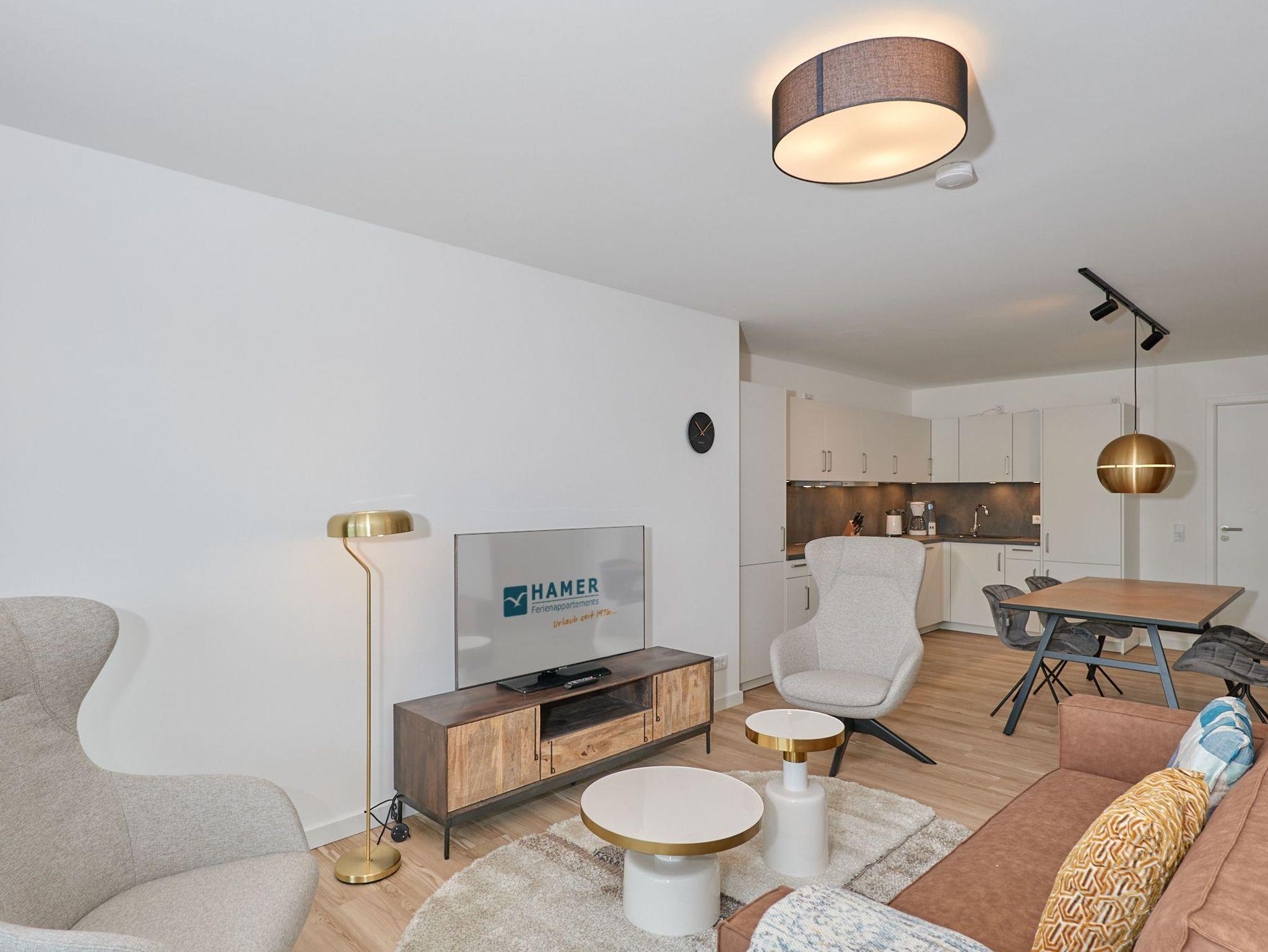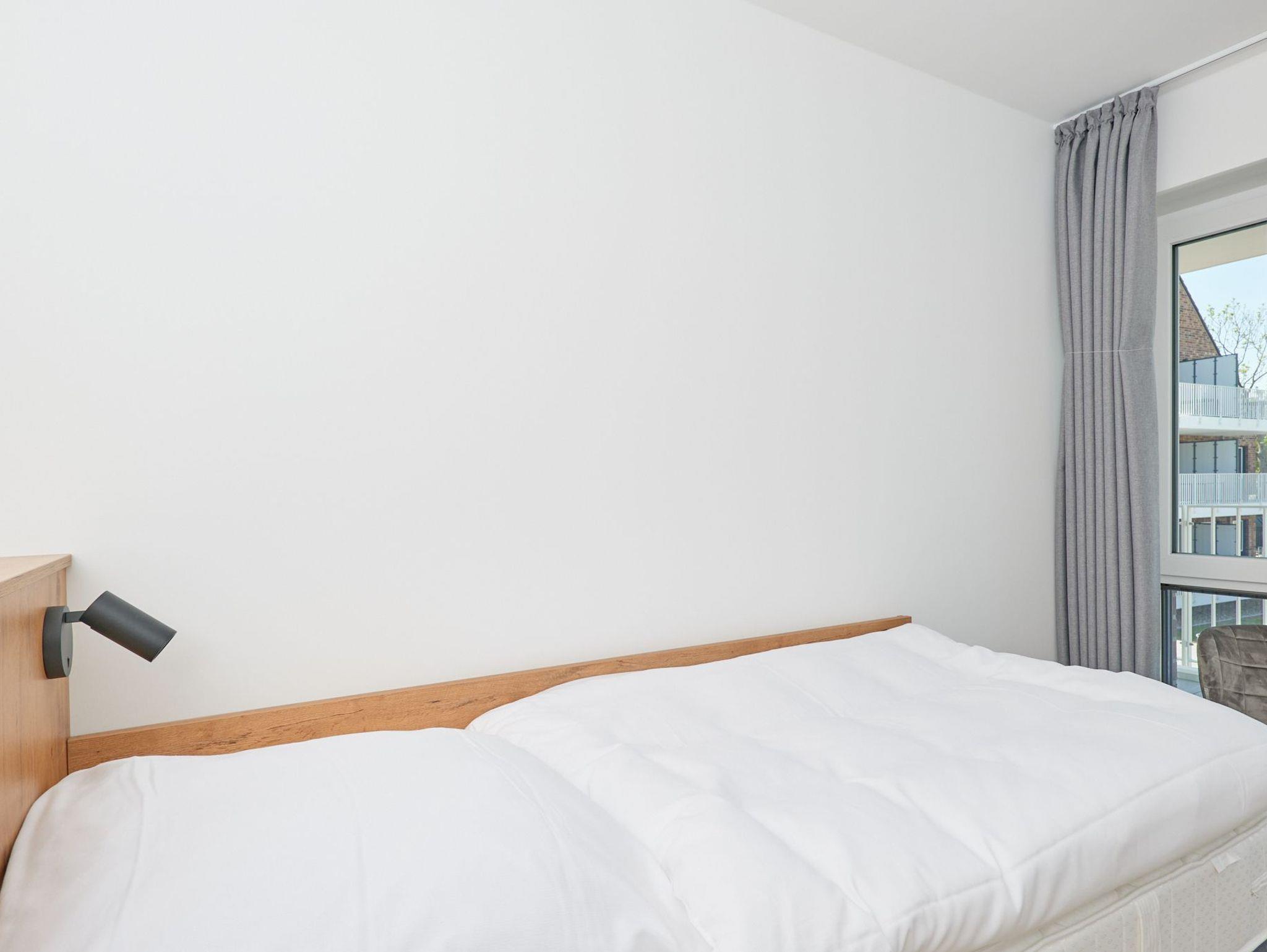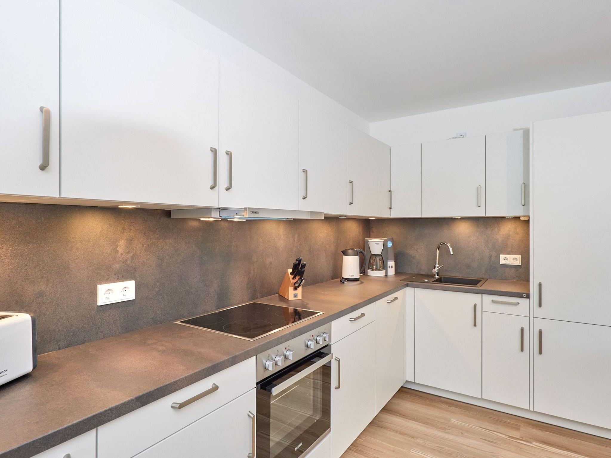 Neubau Mai 2023! Sehr schöne, moderne 3-Raum-Wohnung bis 4 Pers. voll ausgestattet auf ca. 89 m² in der 2.Etage gelegen, 2 Schlafzimmer (1x Doppelbett, 1x 2 Einzelbetten) und Außenjalousien an allen Fenstern, ebenerdige Dusche/WC, Wohnzimmer mit großer Küchenzeile (Backofen, Geschirrspüler, Mikrowelle), 2x Kabel-TV, Radio, kostenfreies W-LAN-Internet, großer Balkon (west) mit Teilseesicht, Personenaufzug, reservierter Pkw-Stellplatz in der Tiefgarage inkl., es sind keine Haustiere erlaubt und natürlich Nichtraucher. Durchfahrtshöhe Tiefgarage: 2,05m.