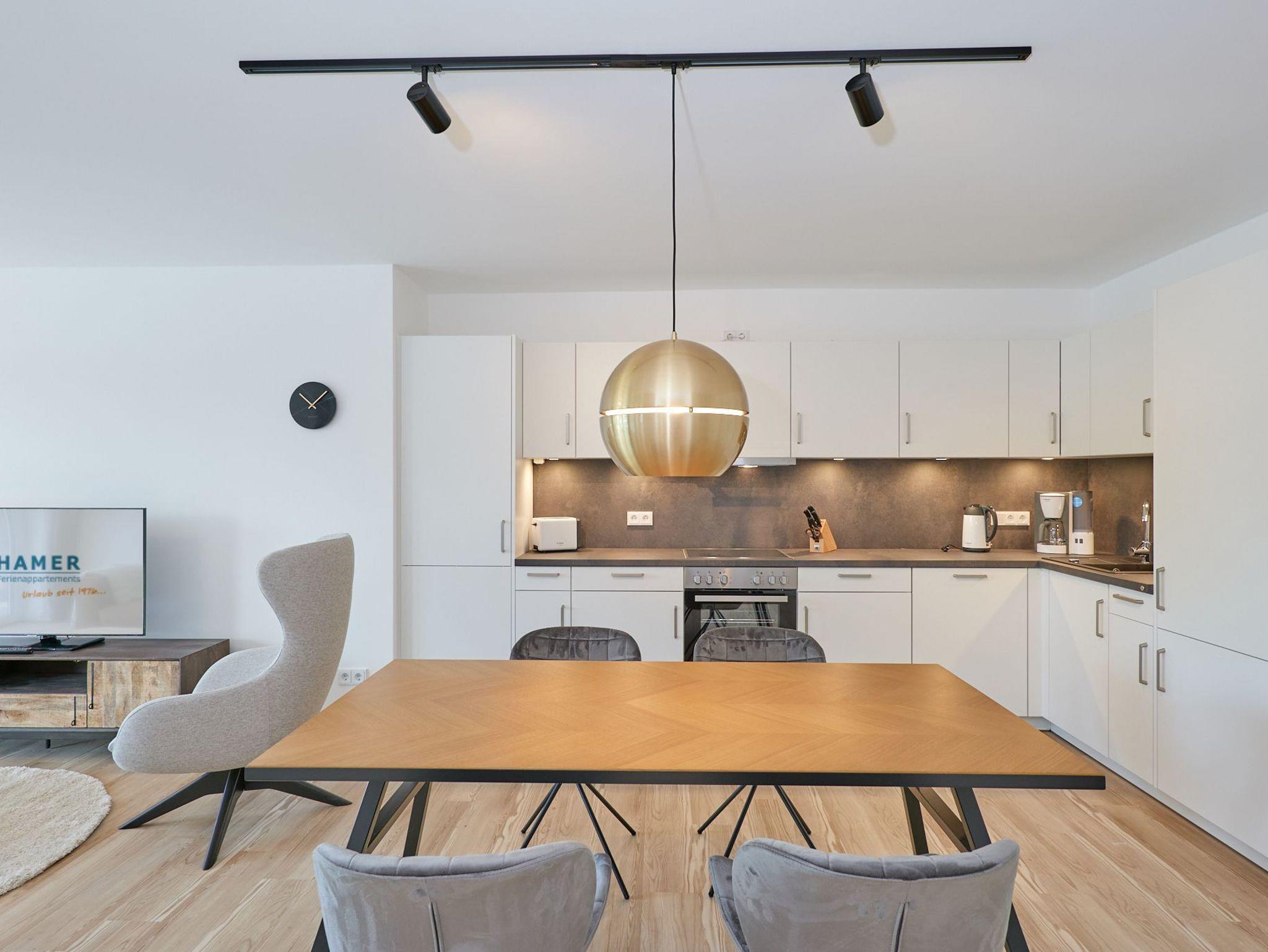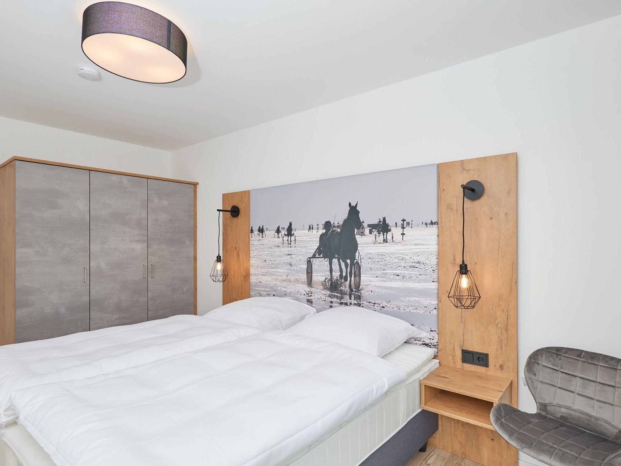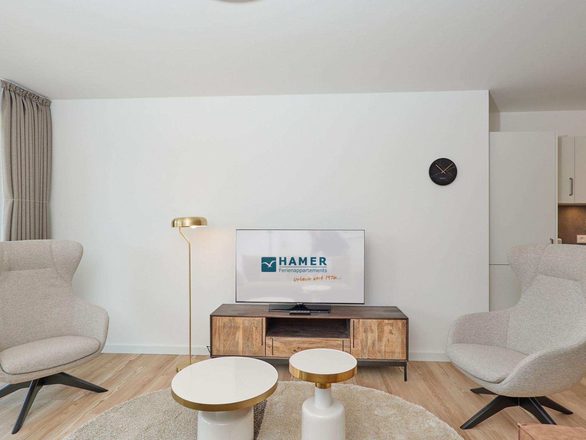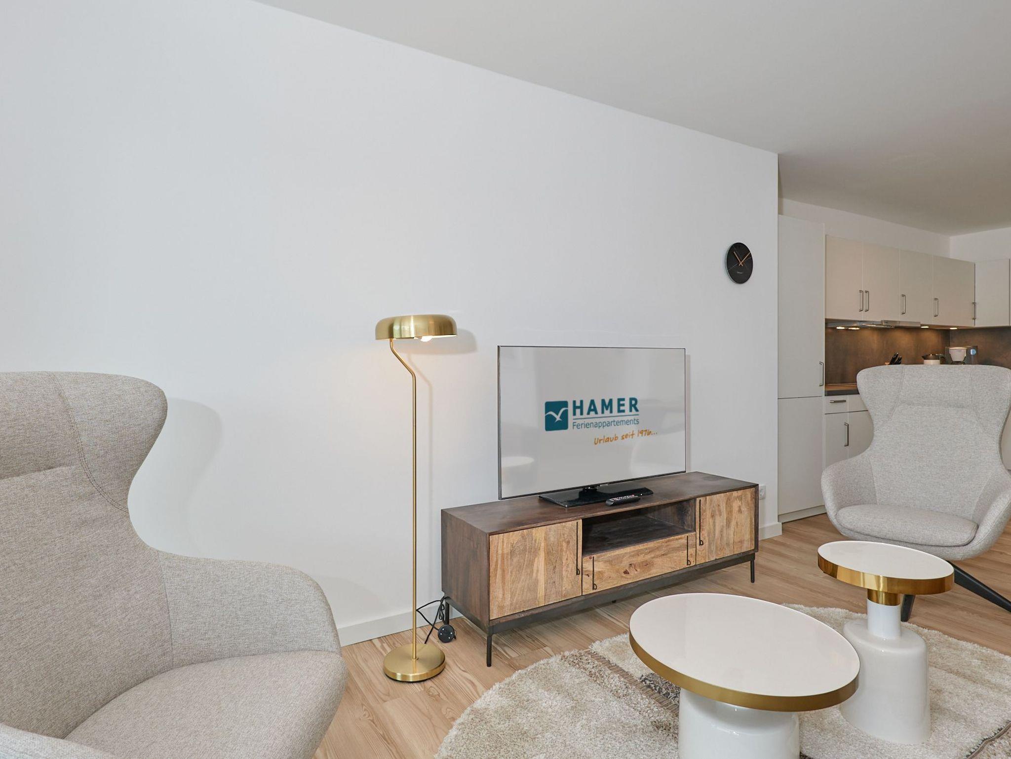 Neubau Mai 2023! Sehr schöne, moderne 3-Raum-Wohnung bis 4 Pers. voll ausgestattet auf ca. 89 m² in der 2.Etage gelegen, 2 Schlafzimmer (1x Doppelbett, 1x 2 Einzelbetten) und Außenjalousien an allen Fenstern, ebenerdige Dusche/WC, Wohnzimmer mit großer Küchenzeile (Backofen, Geschirrspüler, Mikrowelle), 2x Kabel-TV, Radio, kostenfreies W-LAN-Internet, großer Balkon (west) mit Teilseesicht, Personenaufzug, reservierter Pkw-Stellplatz in der Tiefgarage inkl., es sind keine Haustiere erlaubt und natürlich Nichtraucher. Durchfahrtshöhe Tiefgarage: 2,05m.