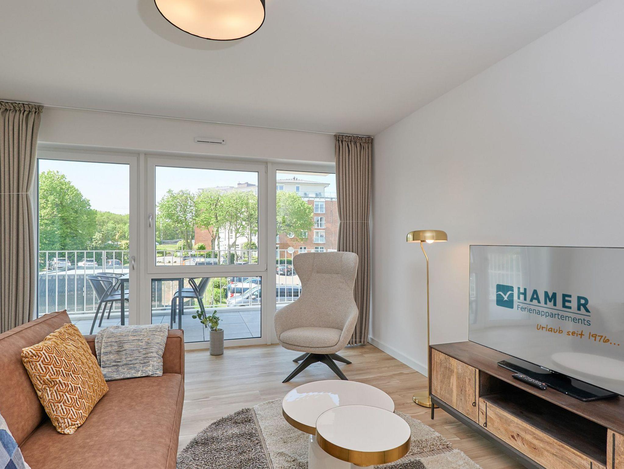 Moderne 3-Raum-Wohnung mit Balkon und Teilseesicht in Cuxhaven, perfekt für bis zu 4 Personen.