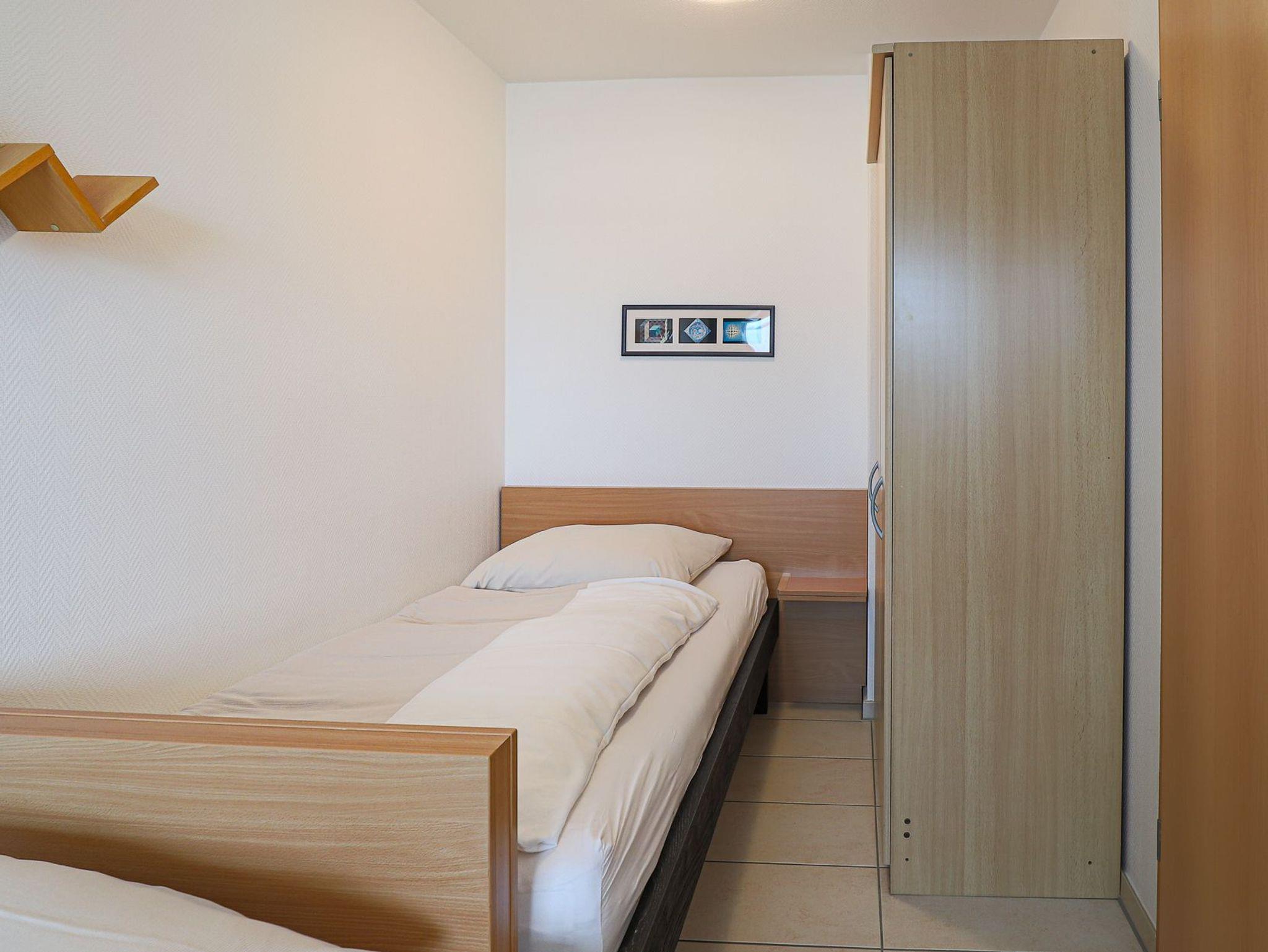 Großer Wohn- Ess und Küchenbereich mit TV, Radio, Geschirrspüler, Mikrowelle, Kühlschrank mit Gefrierfach. Schlafzimmer mit 2 Einzelbetten. Eingangsbereich hell und freundlich mit Garderobe. Das Duschbad mit WC ist hell gefliest und verfügt über eine geräumige Dusche. Fahrstuhl, Tiefgarage, Schwimmbad mit Seeblick und Sauna.