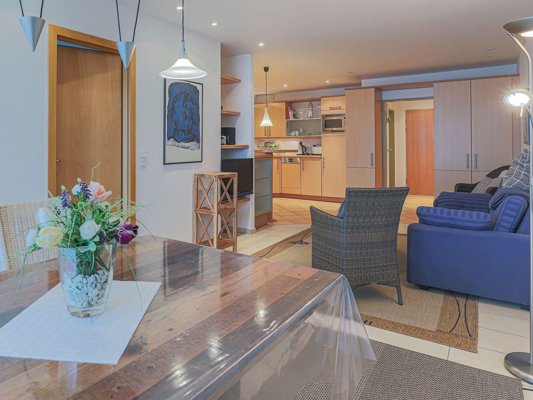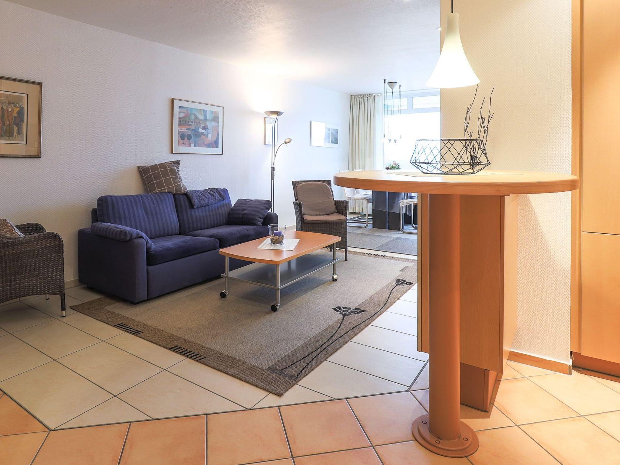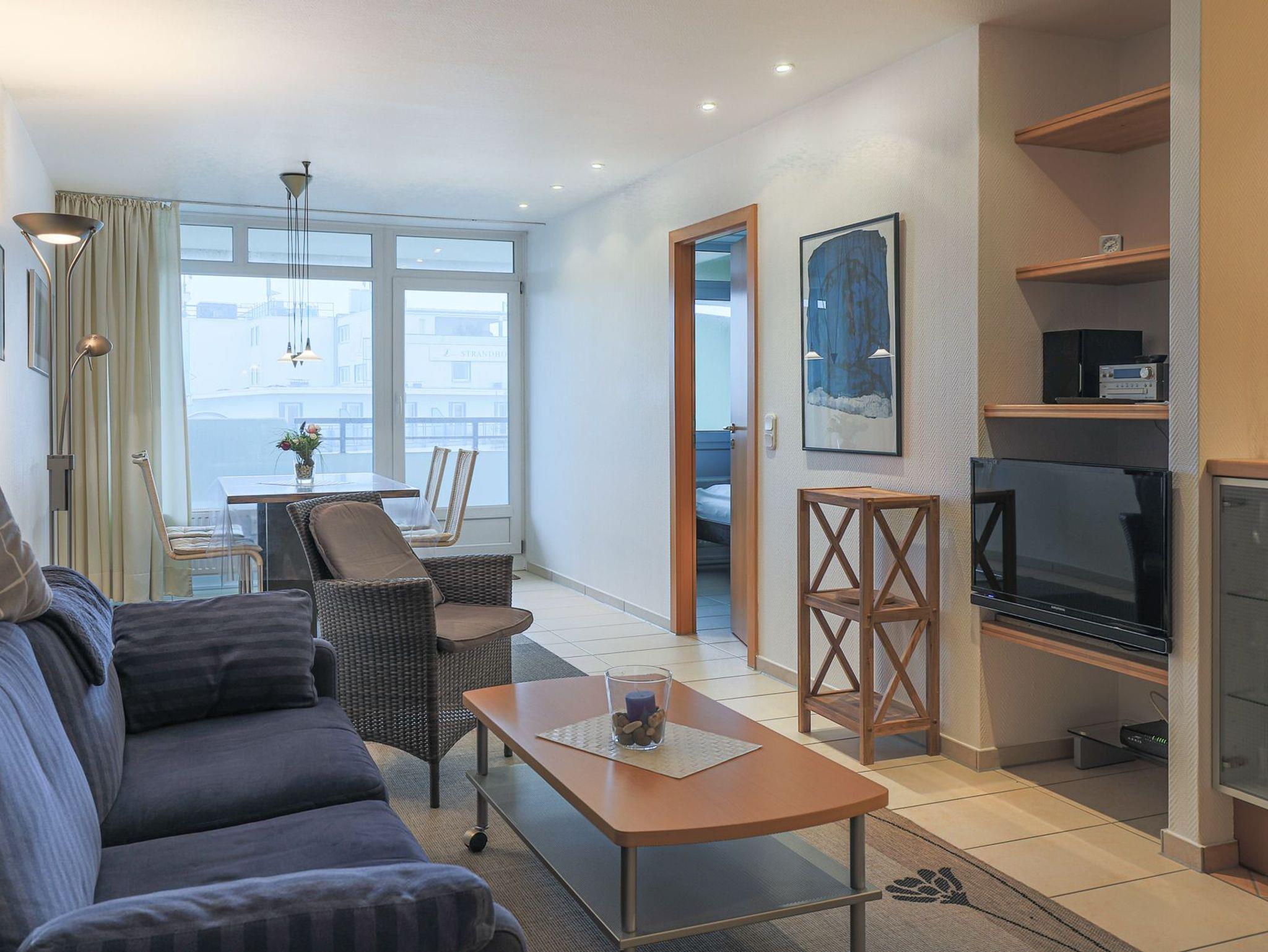 Komfortable 2-Zimmer-Ferienwohnung mit Meerblick im Panoramahaus Duhnen, inklusive Schwimmbad, Sauna und Tiefgarage.