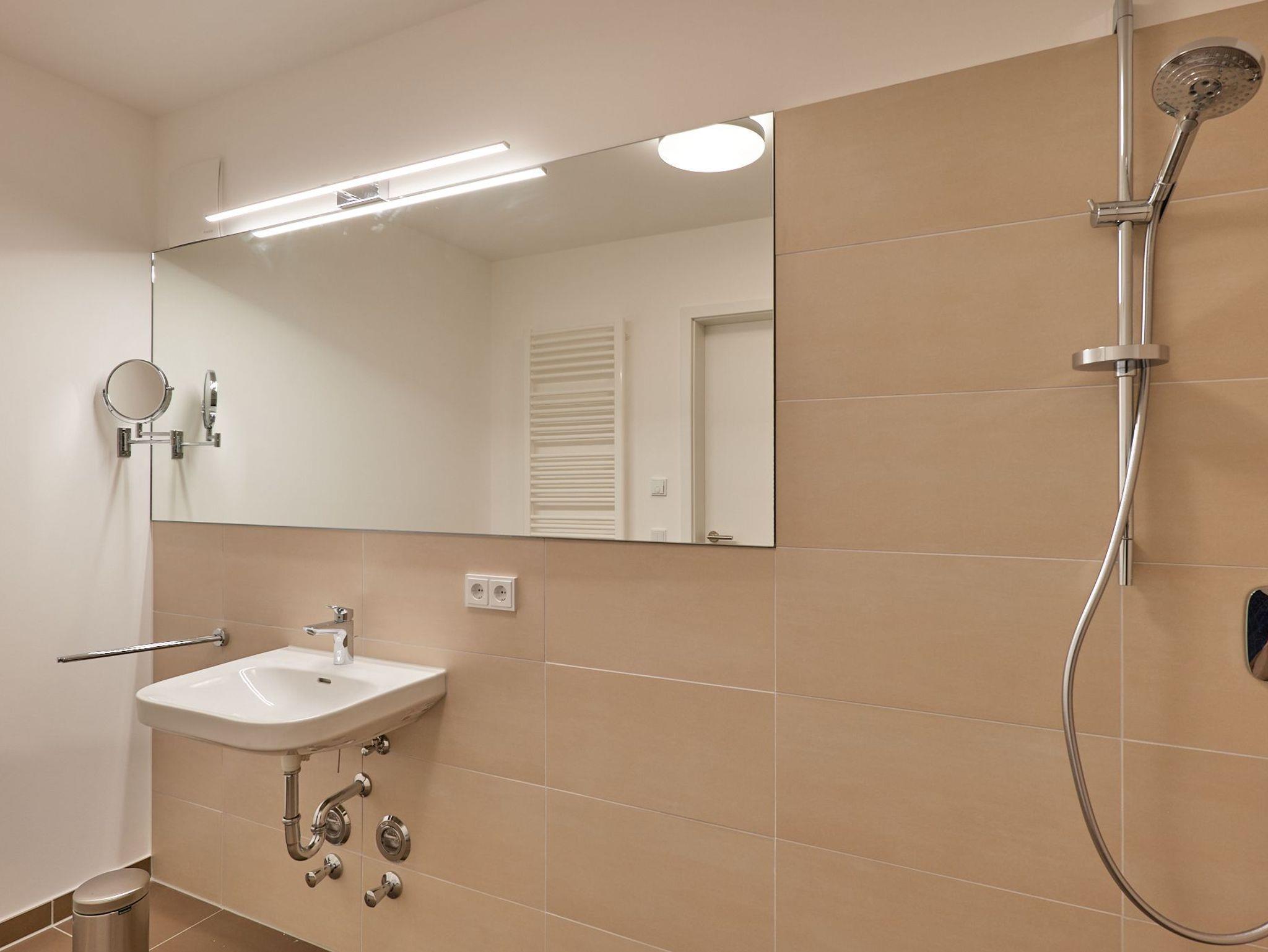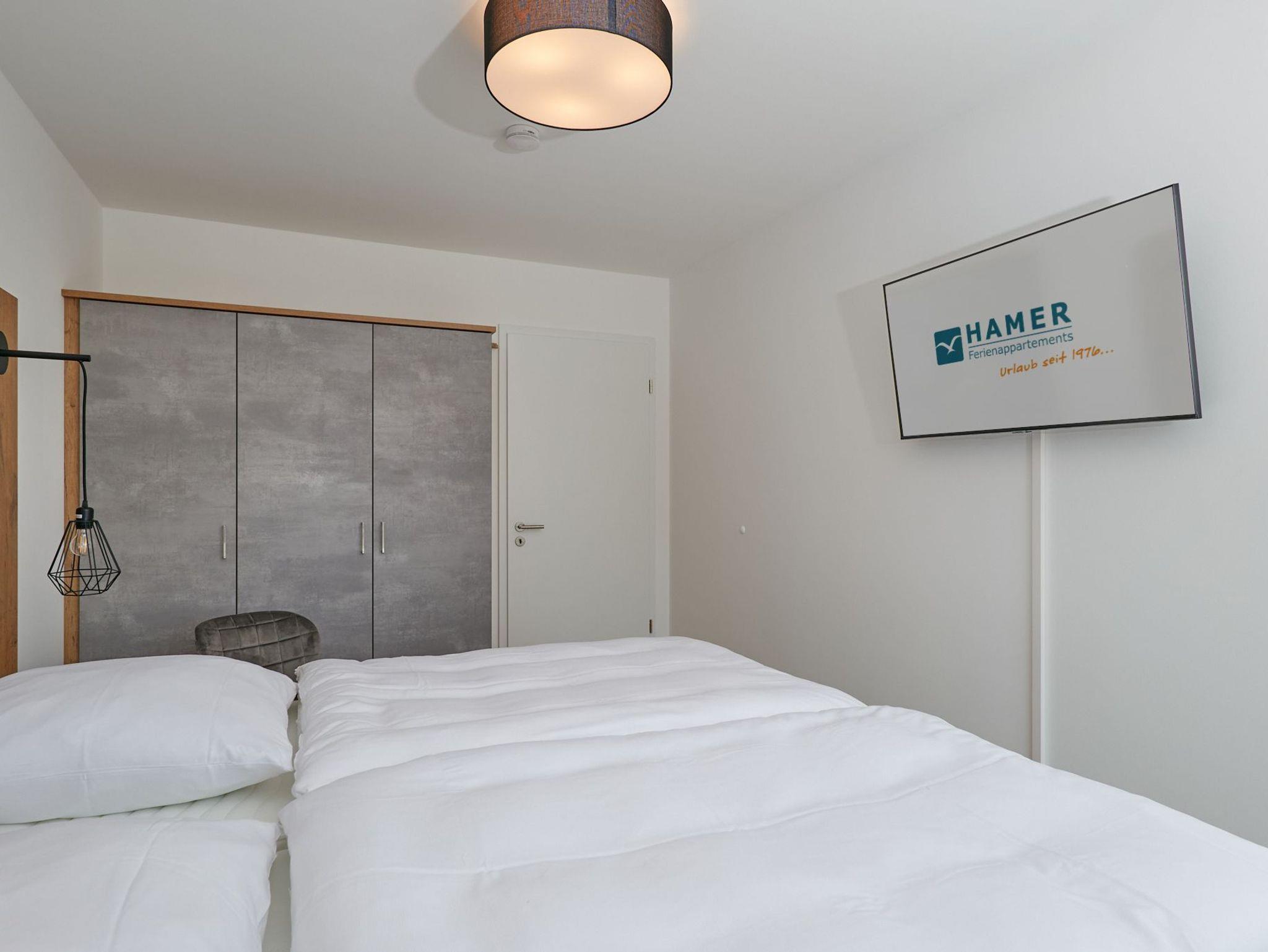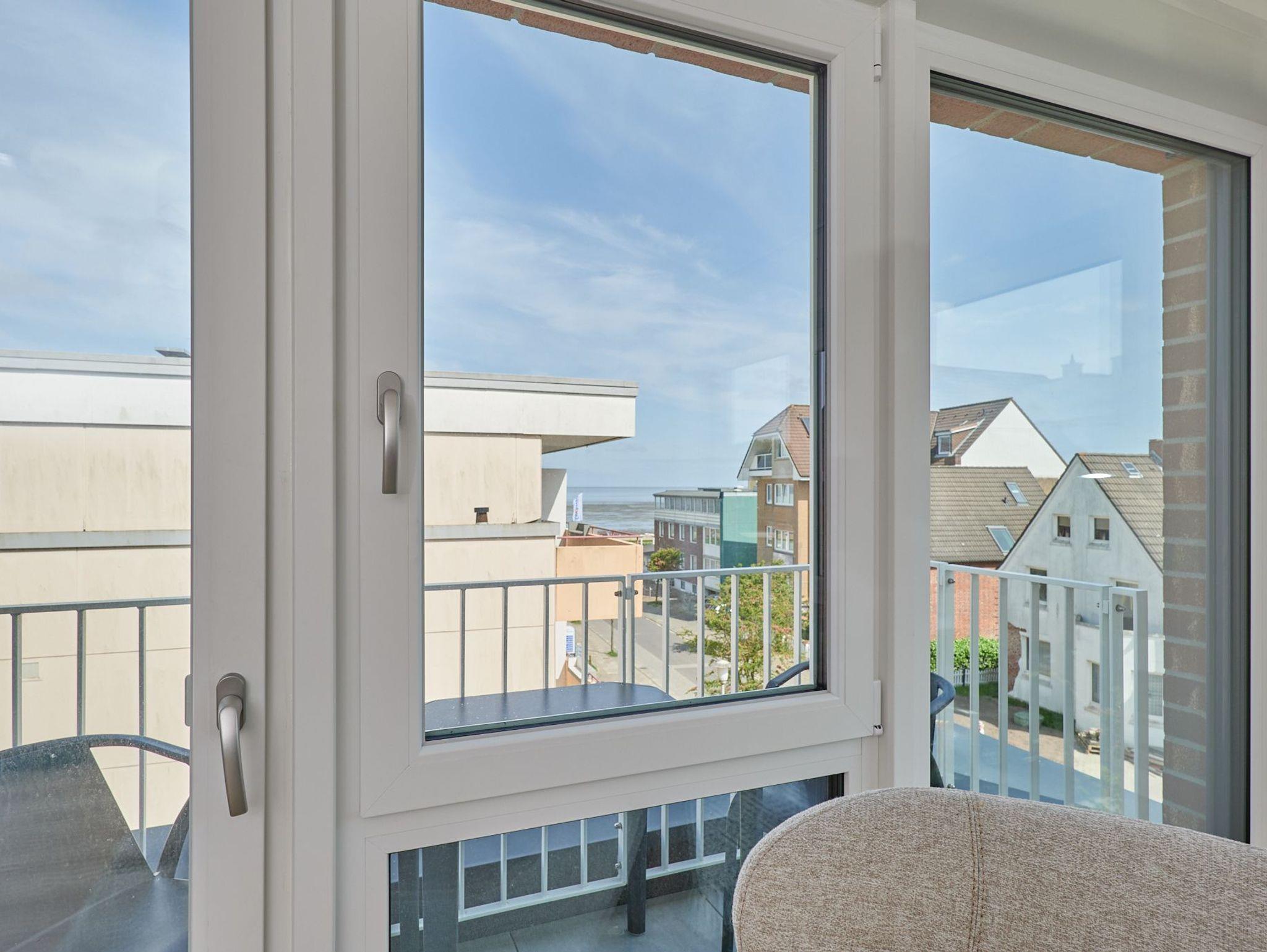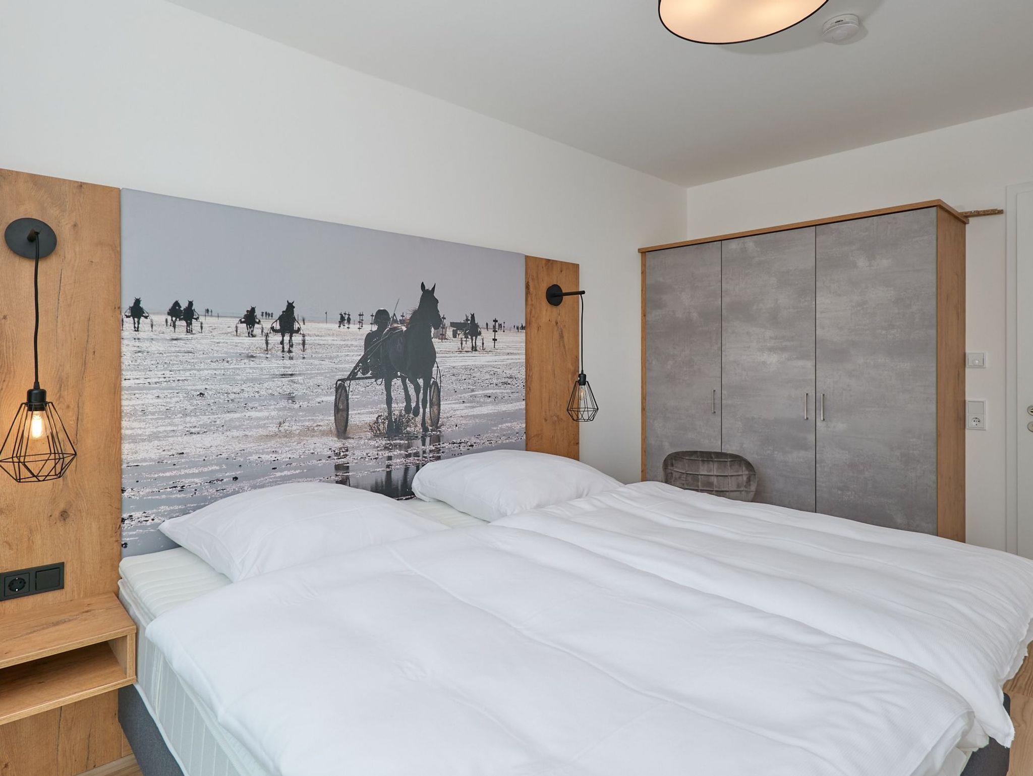 Neubau Mai 2023! Sehr schöne, moderne 3-Raum-Wohnung bis 4 Pers. voll ausgestattet auf ca. 80 m² in der 3.Etage gelegen, 2 Schlafzimmer (1x Doppelbett, 1x 2 Einzelbetten) und Außenjalousien an allen Fenstern, ebenerdige Dusche/WC, Wohnzimmer mit großer Küchenzeile (Backofen, Geschirrspüler, Mikrowelle) u. Teilseesicht, 2x Kabel-TV, Radio, kostenfreies W-LAN-Internet, kleiner Balkon (nord) mit Teilseesicht, Personenaufzug, reservierter Pkw-Stellplatz in der Tiefgarage inkl., es sind keine Haustiere erlaubt und natürlich Nichtraucher. Durchfahrtshöhe Tiefgarage: 2,05m.
