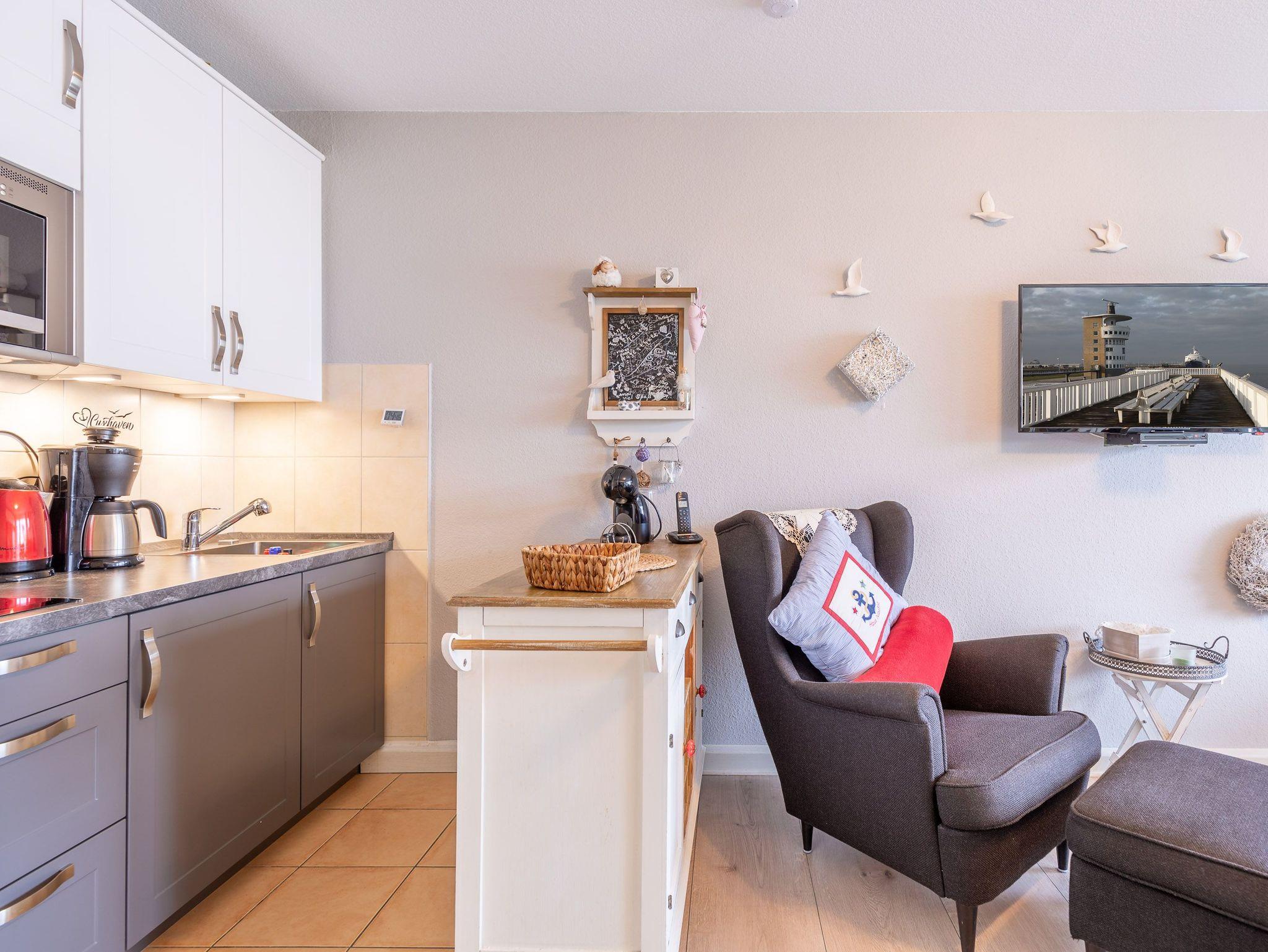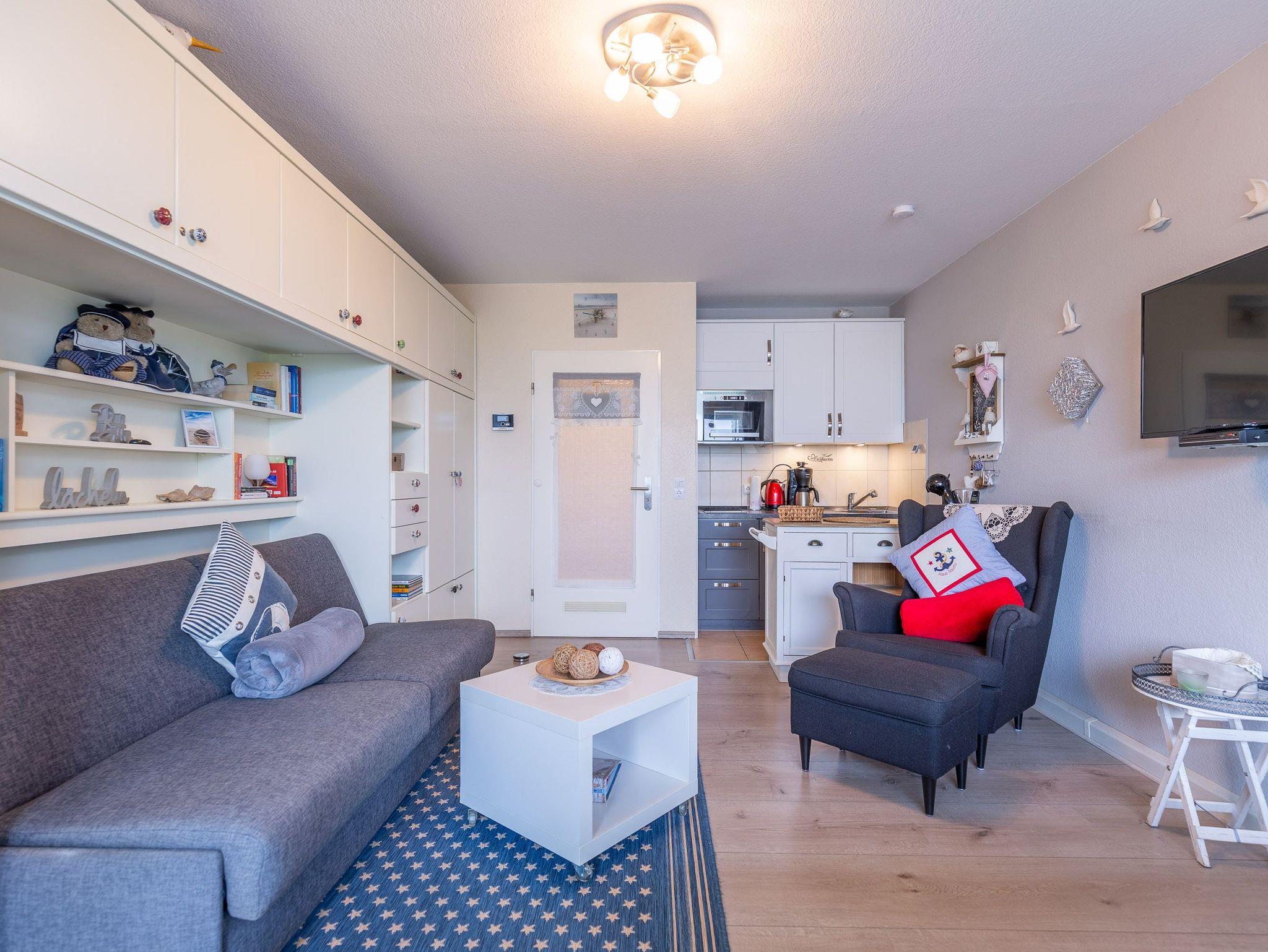 Das Tageslichtbad ist mit Dusche und WC ausgestattet. Auf dem möblierten Balkon genießen Sie einen herrlichen Ausblick auf die Grimmershörnbucht, den Hafen und das bunte Treiben auf dem Wasser. Ein eigener KFZ-Stellplatz steht Ihnen selbstverständlich ebenfalls zur Verfügung. Das Haus Nautic befindet sich in bester Lage direkt an der beliebten Grimmershörnbucht. Rad- und Wanderwege starten direkt vor der Haustür. Und wenn das Wetter mal nicht mitspielt: Das hauseigene Schwimmbad und die Sauna stehen Ihnen kostenlos zur Verfügung