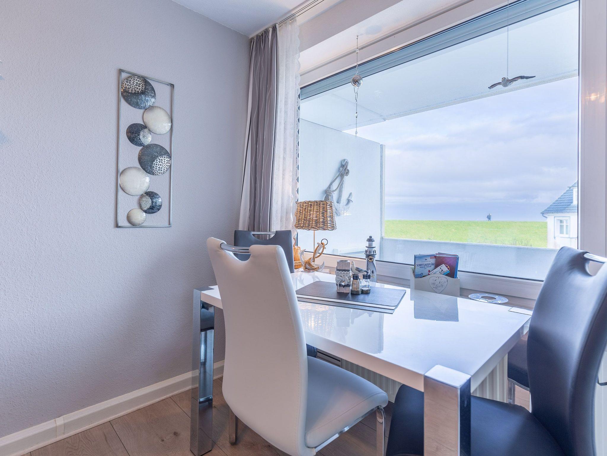 Ankommen und sich wohlfühlen. Nur einen Steinwurf vom Deich entfernt erleben Sie Cuxhaven mit allen Sinnen: spüren Sie die frische Meeresbrise, hören Sie das Rauschen der Wellen und beobachten Sie die vorbeiziehenden Ozeanriesen direkt vom Fenster aus. Unsere 35 m² große Ferienwohnung bietet einen abwechslungsreichen Ausblick auf den Weltschifffahrtsweg. Langeweile kommt hier garantiert nicht auf. Schon beim Frühstück am Esstisch mit Blick auf die Elbe startet Ihr Urlaubstag mit einem besonderen Highlight.