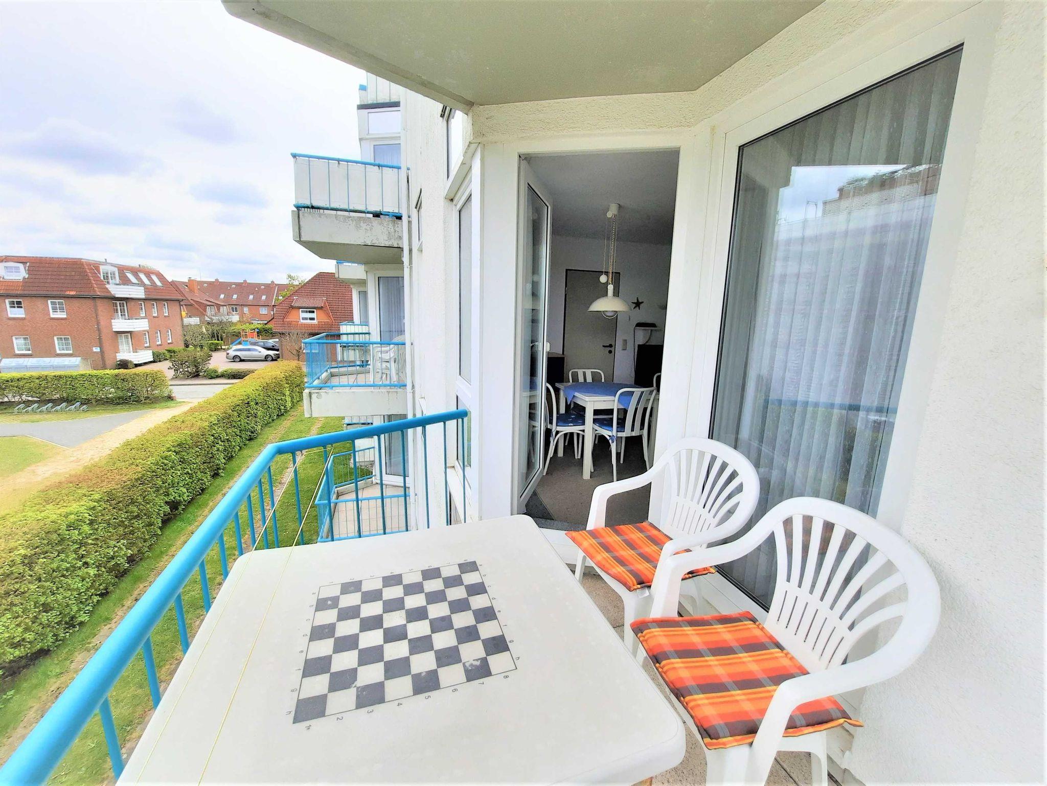 Auf unserem Ost-Balkon im 1. OG mit Blick zur Seeseite können Sie schon ab März bis zum Oktober Sonne vom Frühstück bis zur Mittagszeit tanken. Nachmittags schätzen dort alle Gäste, die die intensive Sonne nicht mögen, die Aussicht zum Strandübergang besonders. Wem es draußen noch zu frisch ist, der genießt einfach die Leseecke.