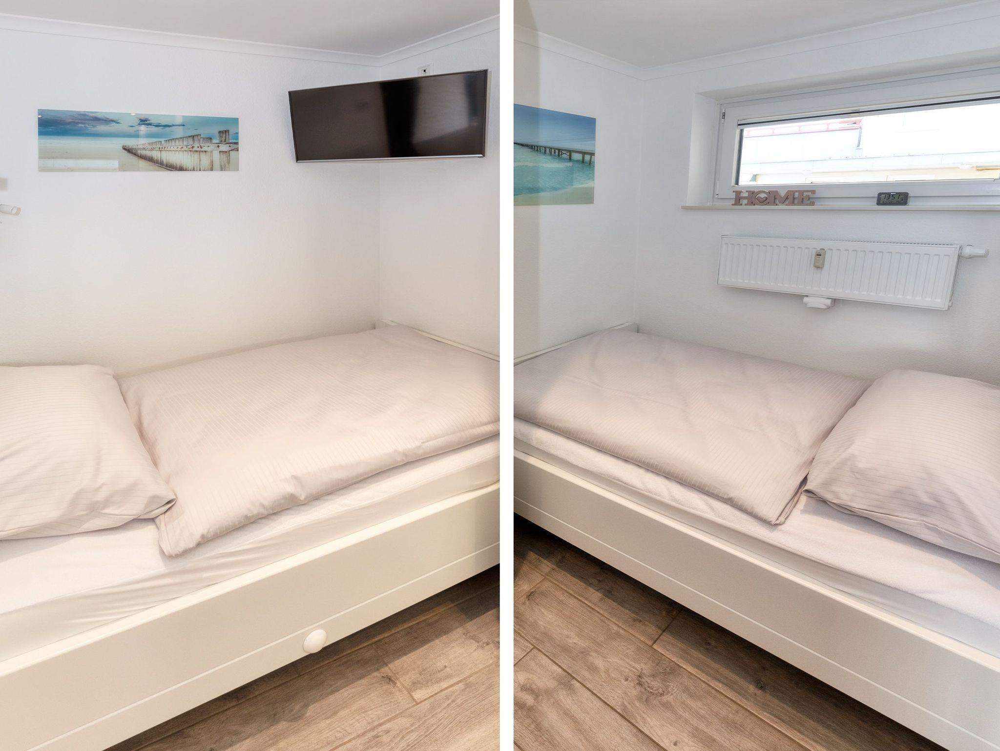Das Appartement besteht aus einem Schlafzimmer mit zwei Einzelbetten, einem Wohnbereich mit ausziehbarem Schlafsofa, eine voll ausgestattete integrierter Küche, einem Badezimmer mit Dusche sowie WC.