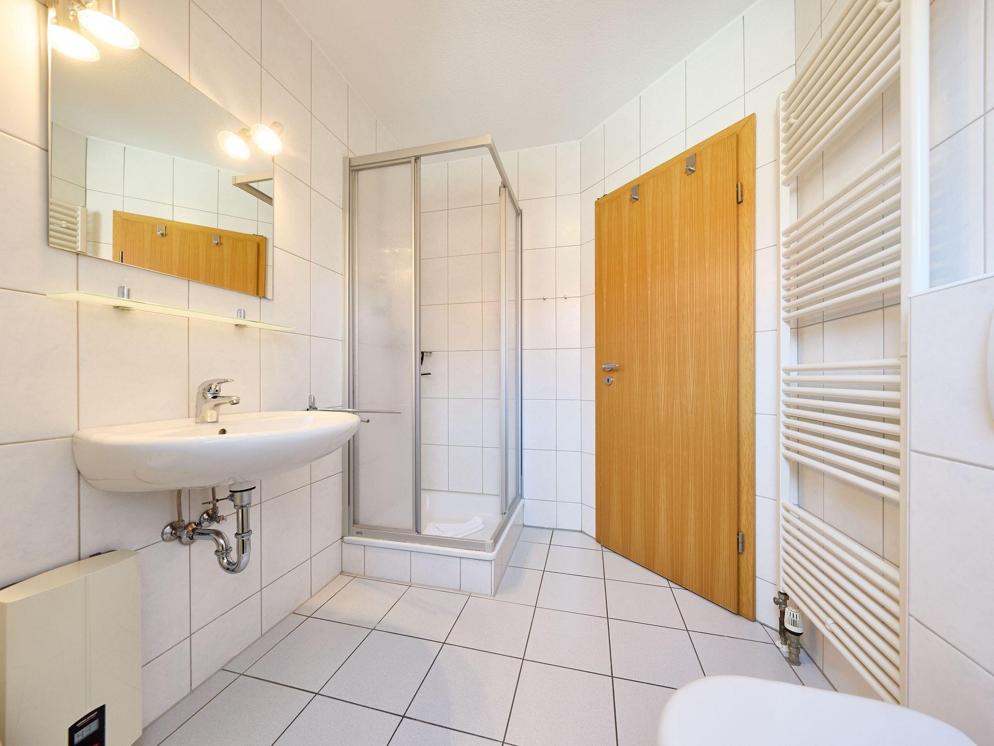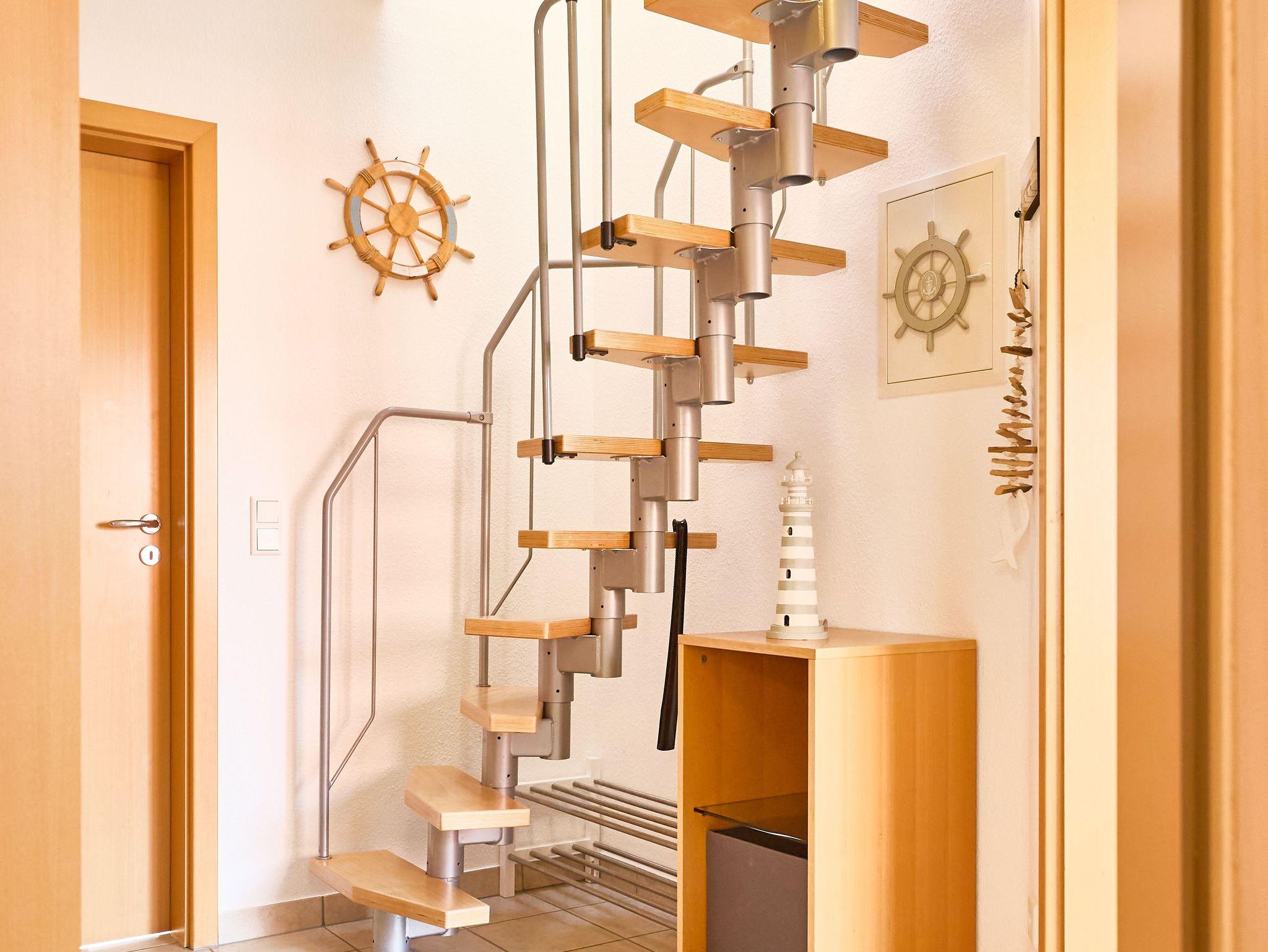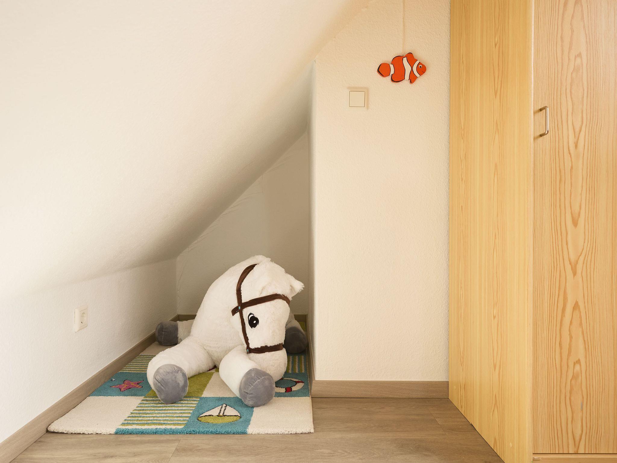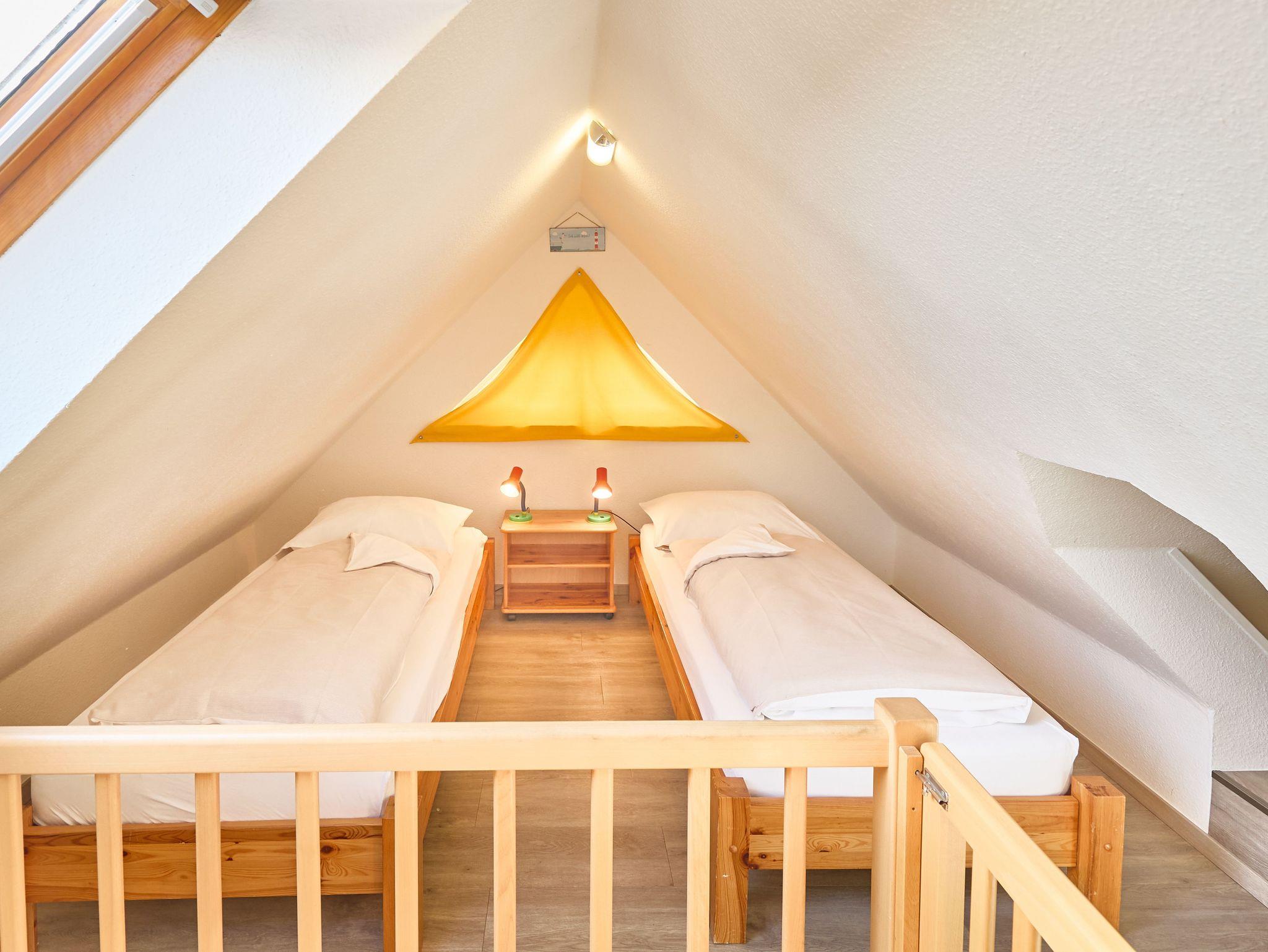 Neptun 12, Whg. 4, 3-Raum, 1.OG + DG, ca. 64m², bis zu 4 Personen, Kleiner Spielbereich für die Kleinen im Dachgeschoss. Die Ferienwohnung ist für bis zu 4 Personen geeignet und ist aufgeteilt mit einem separaten Schlafzimmer, mit einem Doppelbett (im 1.OG), einem Kinderzimmer (auch für Große) mit 2 Einzelbetten und einem Spielbereich für die Kleinen (im ausgebauten Dachgeschoss, ein fest eingebautes Treppenschutzgitter ist oberhalb der Treppe vorhanden), einem hellen Duschbad/WC, dem Wohnbereich mit Zugang zum Balkon und dem Essbereich mit der komfortablen Einbauküche. Der gemütliche und sonnige Balkon, mit Balkonmöbeln lädt zum urlauben ein.
