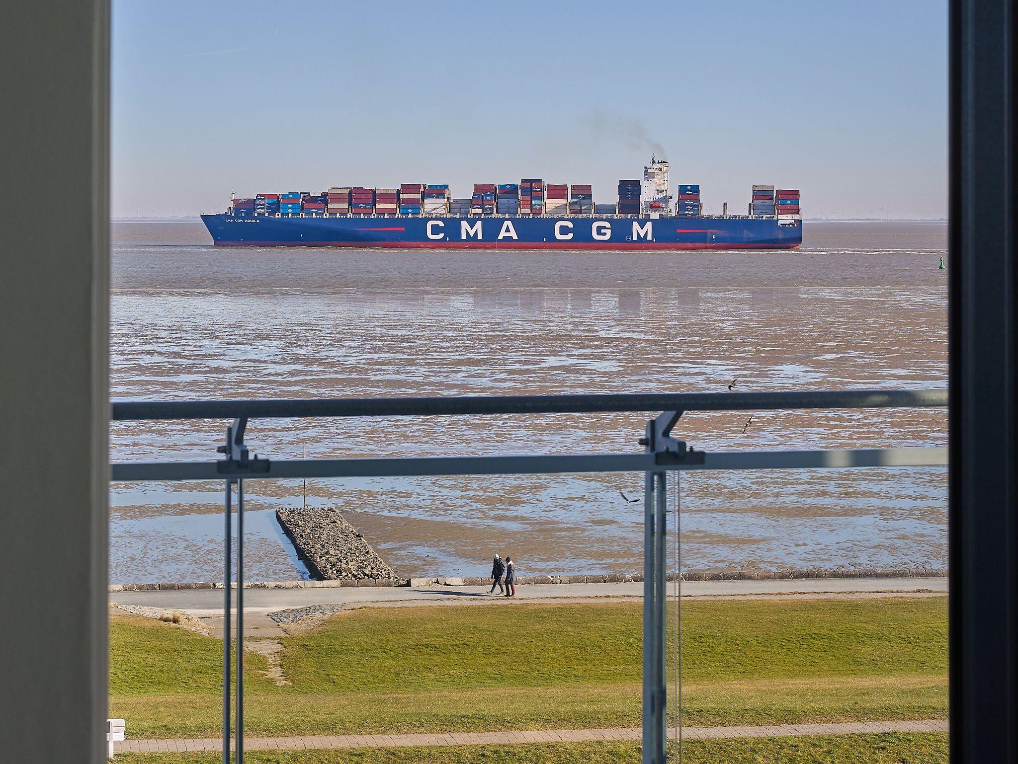 Exklusive Ferienwohnung mit Panoramablick auf Elbmündung und Nordsee direkt am Döser Seedeich 7 in Cuxhaven-Grimmershörn.