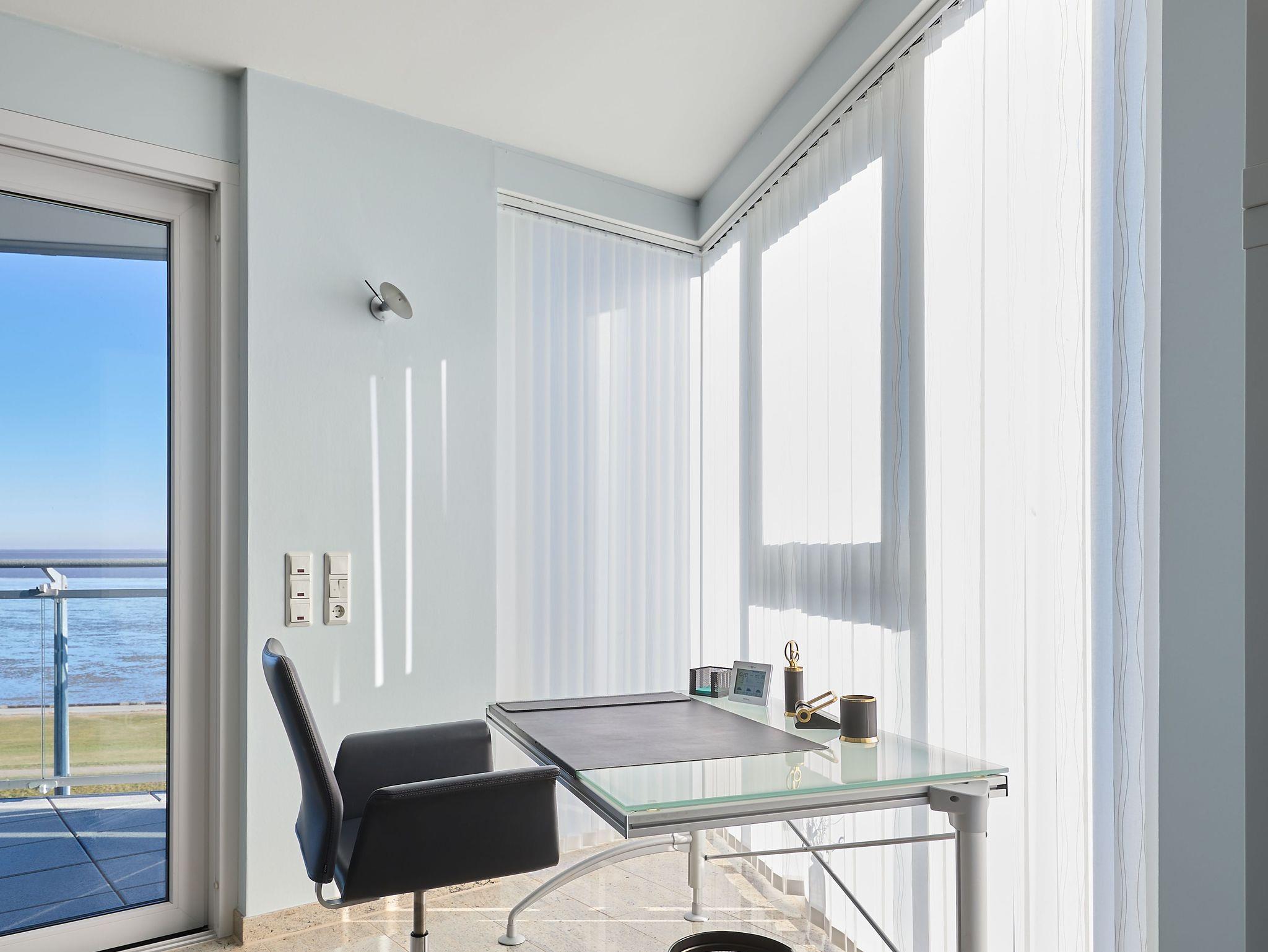 Für unsere Gäste, die auch im Urlaub ihrer Arbeit oder ihrem Hobby nachgehen möchten, steht ein heller Arbeitsplatz mit Sonnenschutz zur Verfügung. Ein Schreibtisch mit einem Bluetooth-fähiger Drucker, sorgen dabei für zusätzlichen Komfort. Darüber hinaus befindet sich in der Wohnung ein großer Safe, der auch Ihre Wertsachen sicher verschließen lässt.