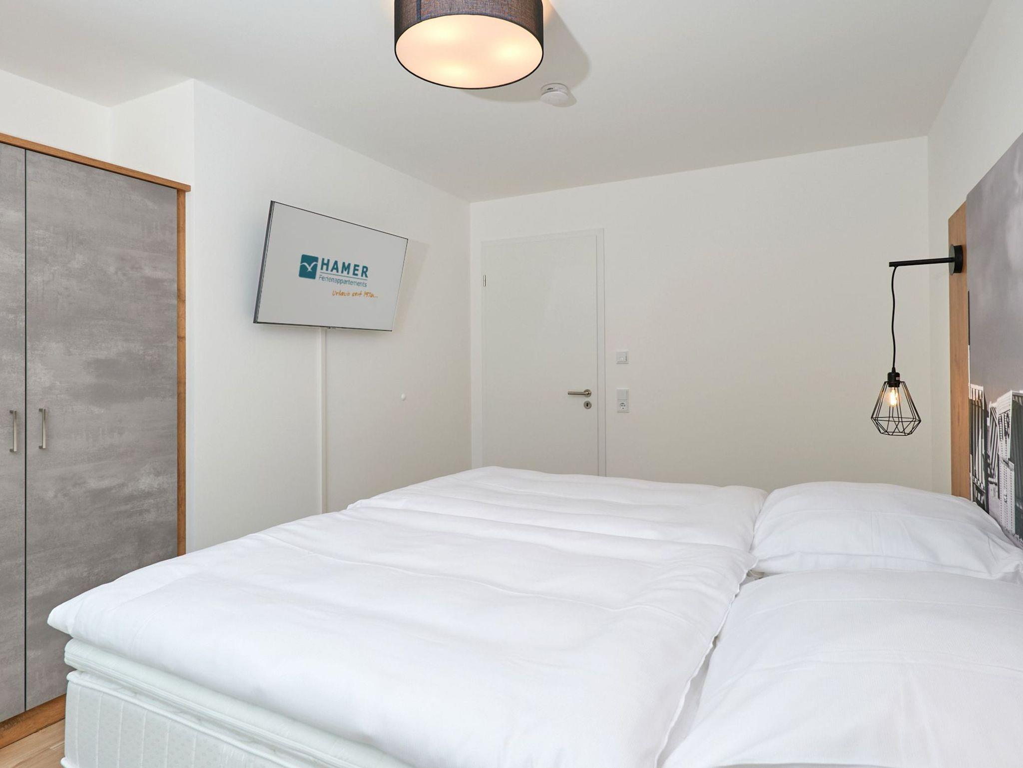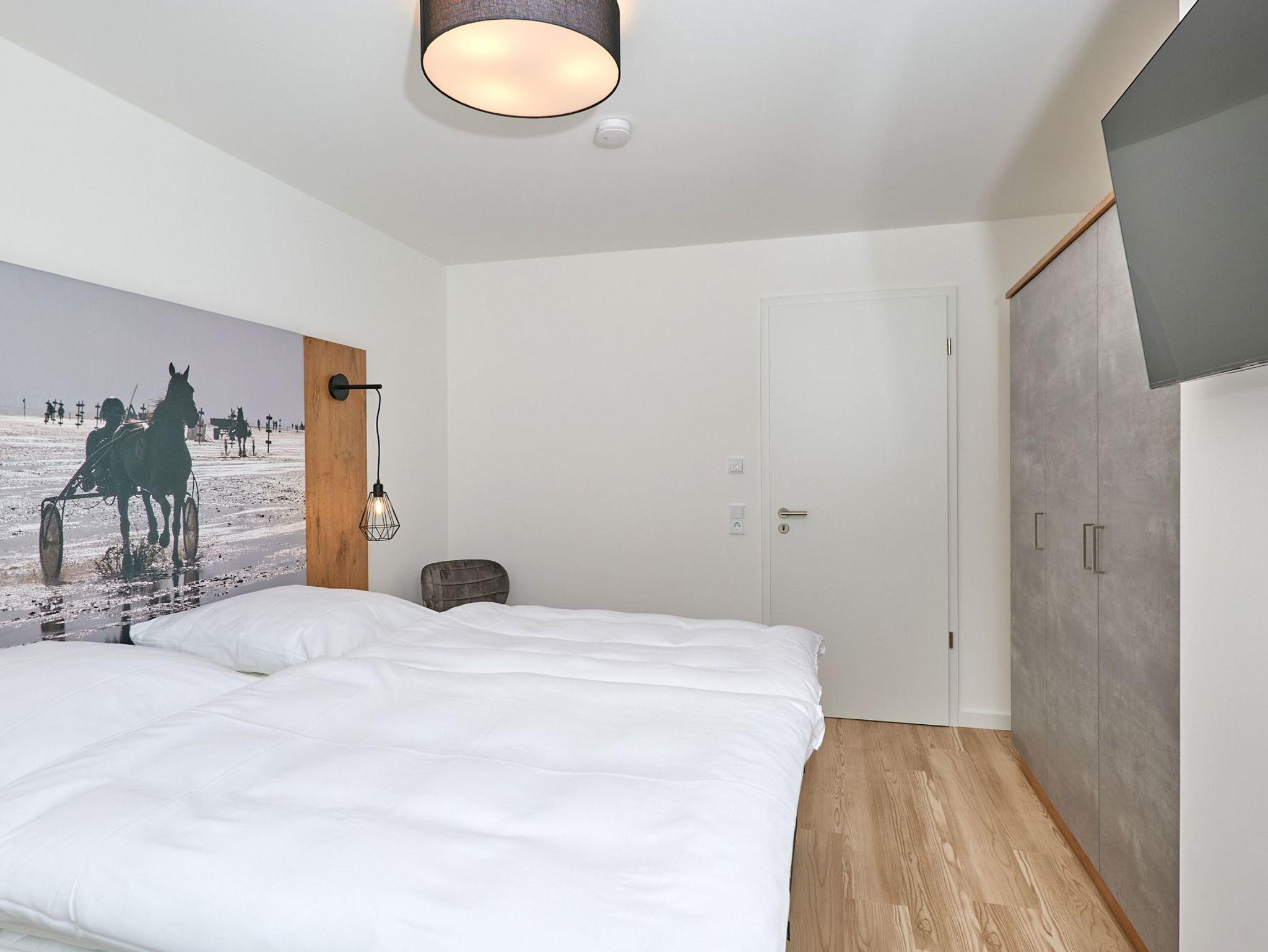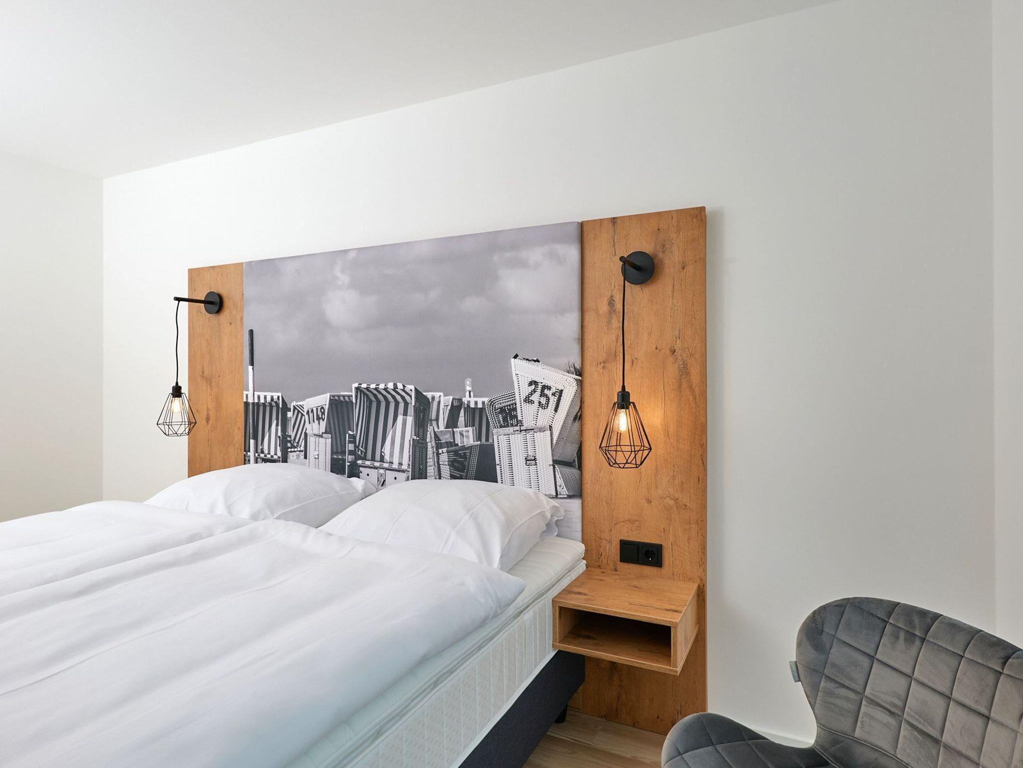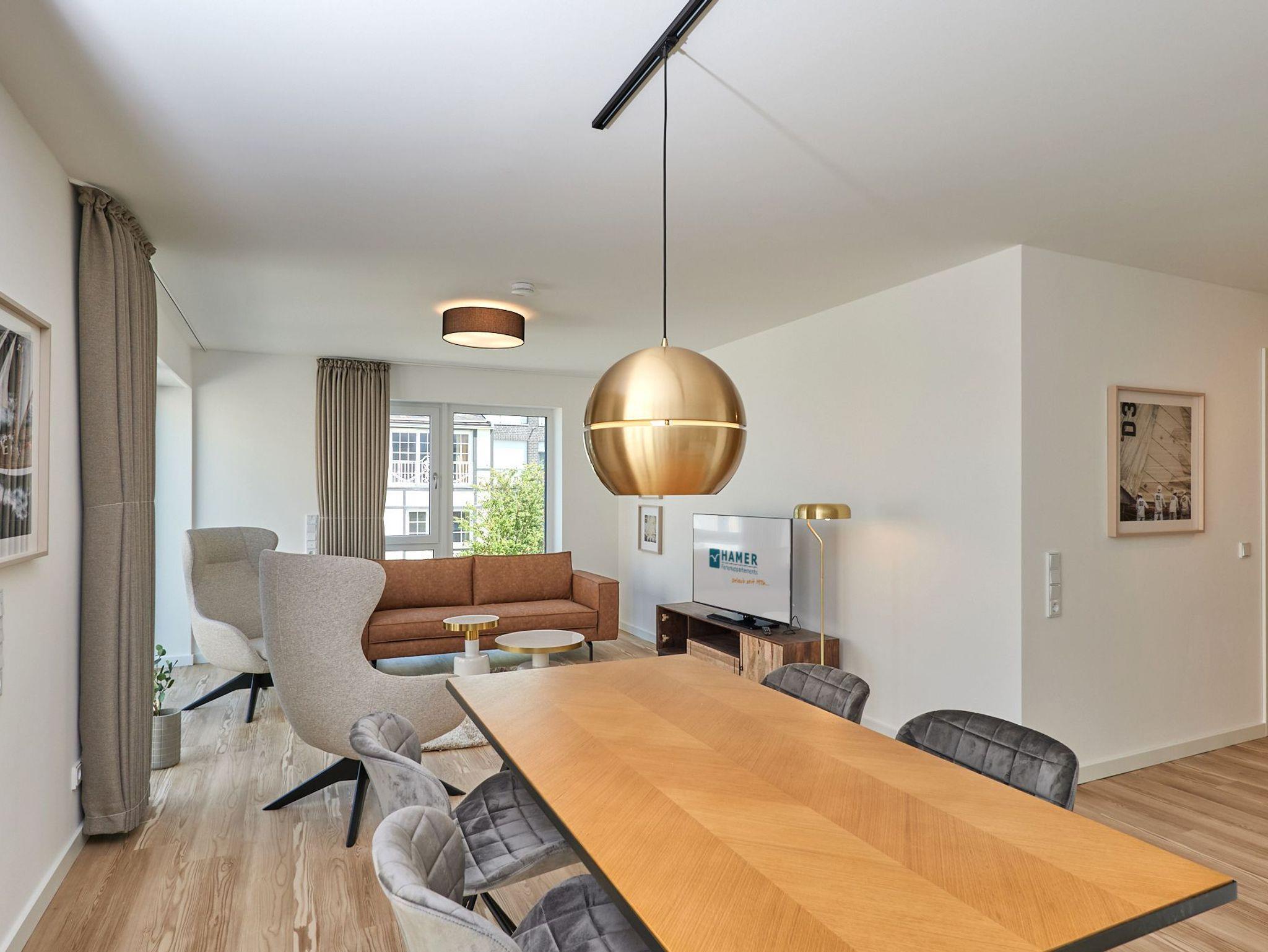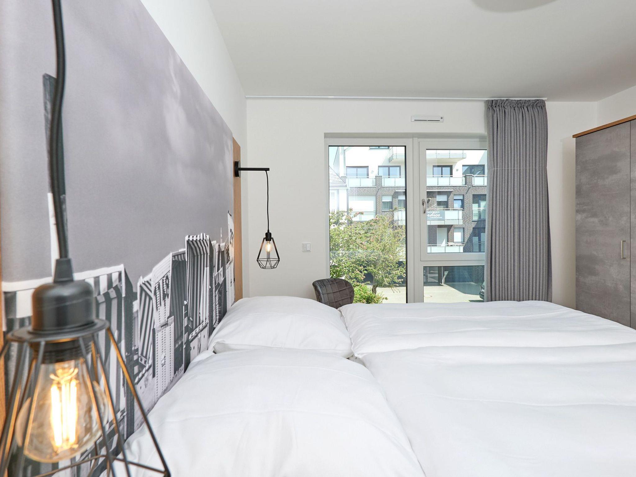 Neubau Mai 2023! Sehr schöne, moderne 3-Raum-Wohnung bis 4 Pers. voll ausgestattet auf ca. 91 m² in der 2.Etage gelegen, 2 Schlafzimmer mit komfortablen Doppelbetten (Bettwäsche inkl.) und Außenjalousien an allen Fenstern, ebenerdige Dusche/WC, Wohnzimmer mit großer Küchenzeile (Backofen, Geschirrspüler, Mikrowelle), 3x Kabel-TV, Radio, kostenfreies W-LAN-Internet, kleiner Balkon (nord) mit Teilseesicht, Personenaufzug, reservierter Pkw-Stellplatz in der Tiefgarage inkl., es sind keine Haustiere erlaubt und natürlich Nichtraucher. Durchfahrtshöhe Tiefgarage: 2,05m.