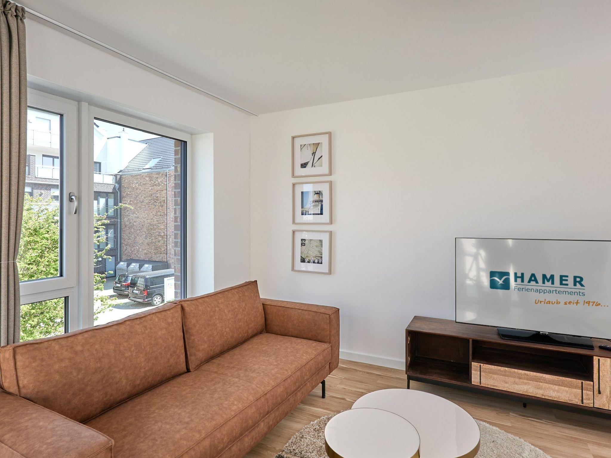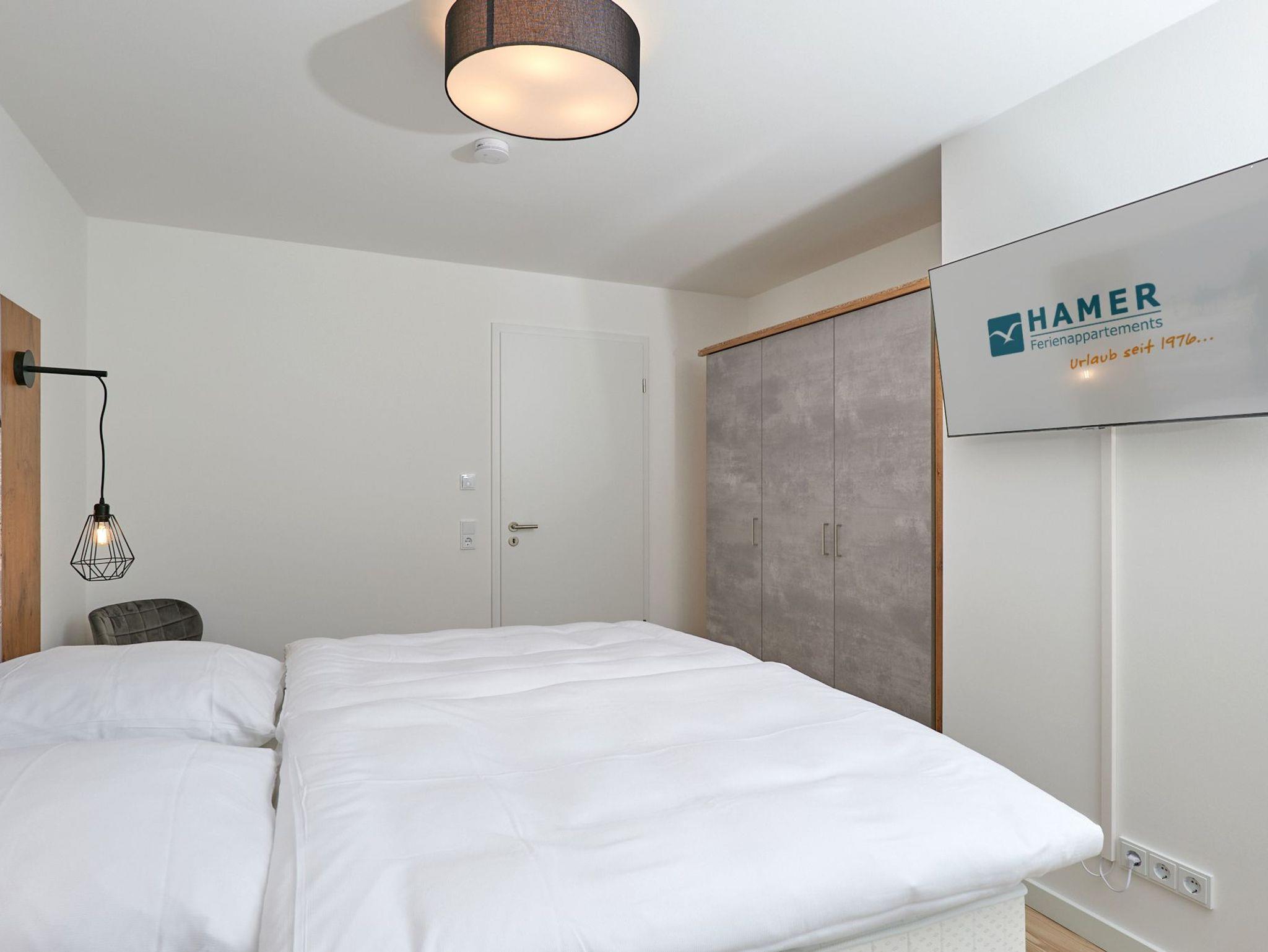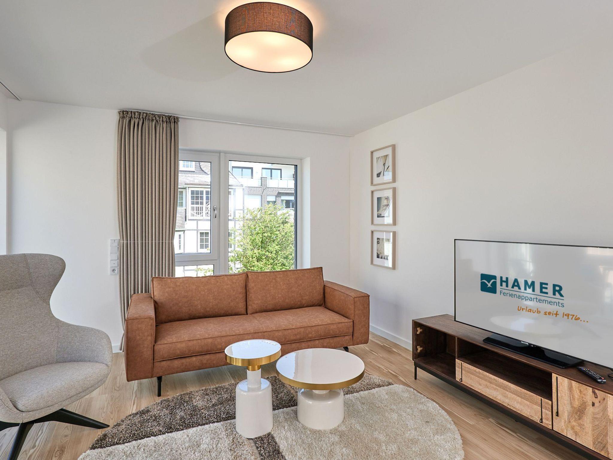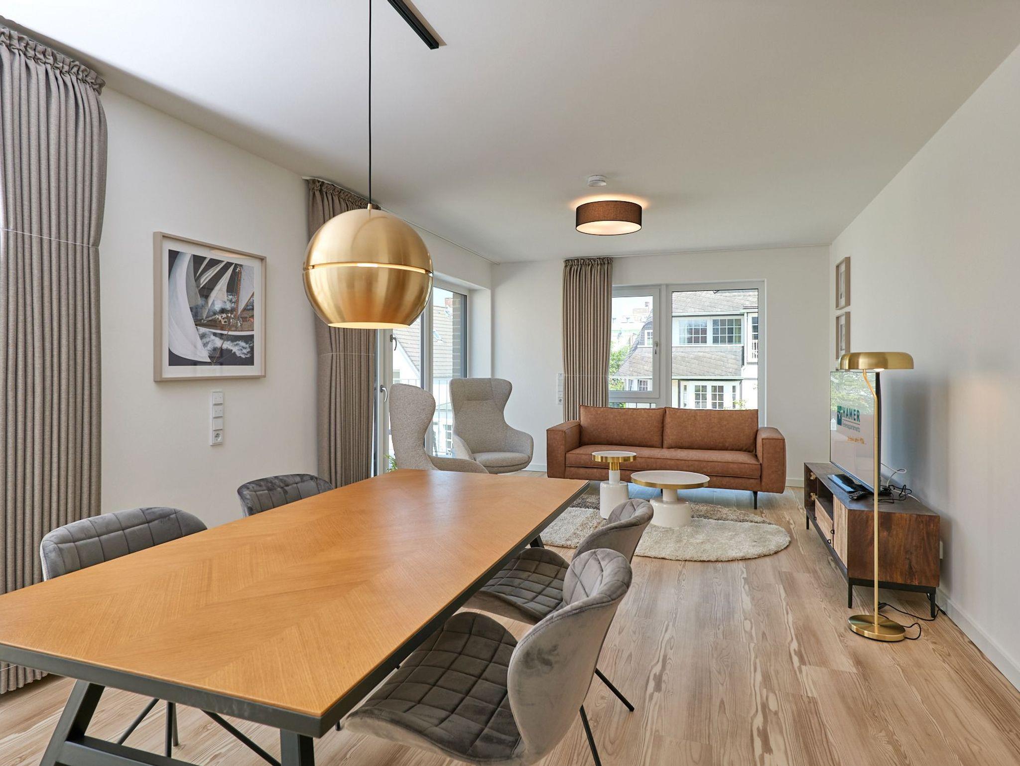 Neubau Mai 2023! Sehr schöne, moderne 3-Raum-Wohnung bis 4 Pers. voll ausgestattet auf ca. 91 m² in der 2.Etage gelegen, 2 Schlafzimmer mit komfortablen Doppelbetten (Bettwäsche inkl.) und Außenjalousien an allen Fenstern, ebenerdige Dusche/WC, Wohnzimmer mit großer Küchenzeile (Backofen, Geschirrspüler, Mikrowelle), 3x Kabel-TV, Radio, kostenfreies W-LAN-Internet, kleiner Balkon (nord) mit Teilseesicht, Personenaufzug, reservierter Pkw-Stellplatz in der Tiefgarage inkl., es sind keine Haustiere erlaubt und natürlich Nichtraucher. Durchfahrtshöhe Tiefgarage: 2,05m.