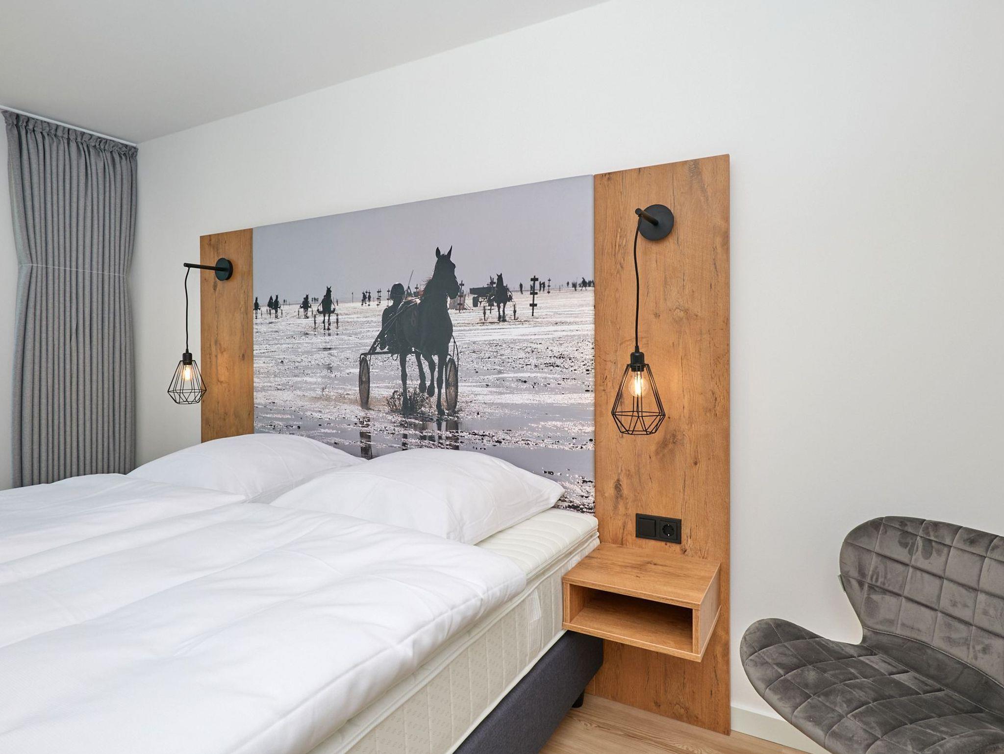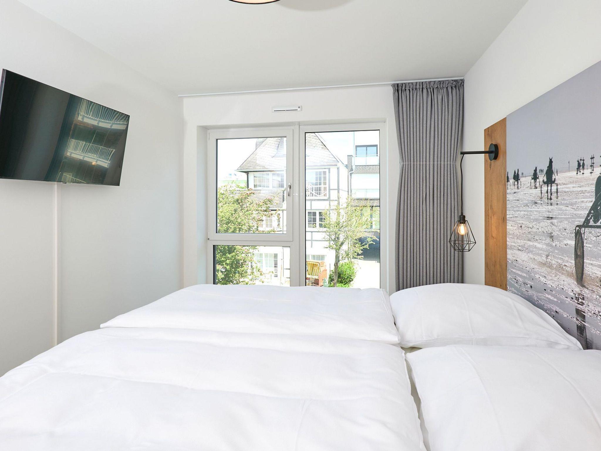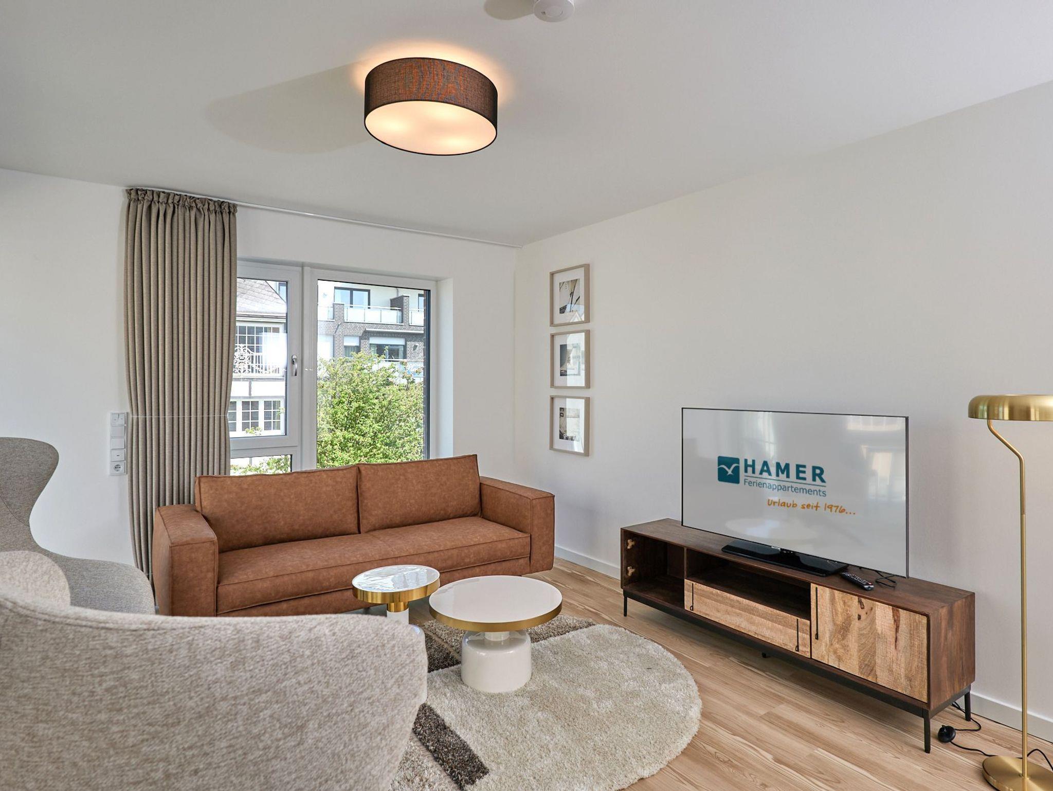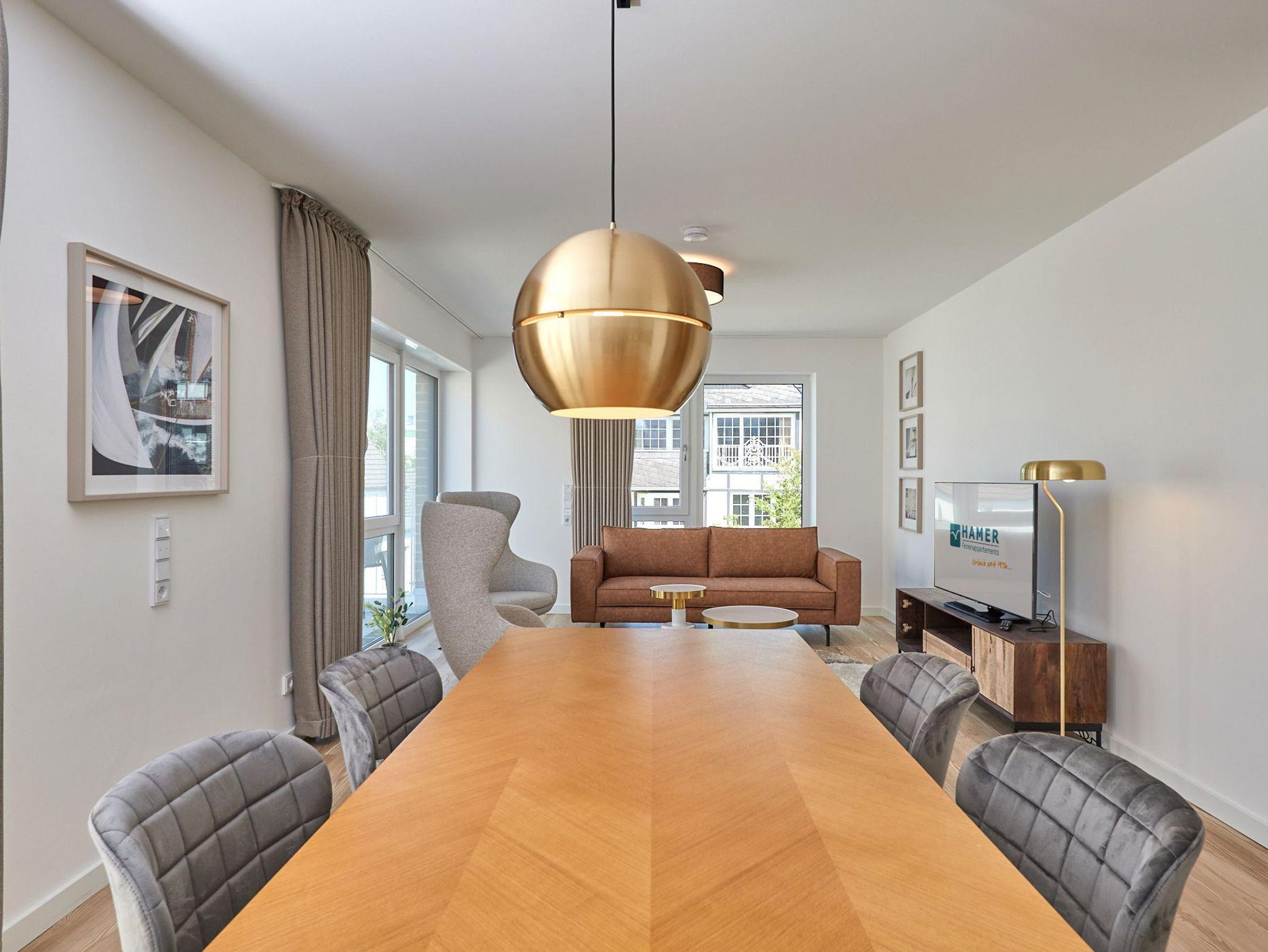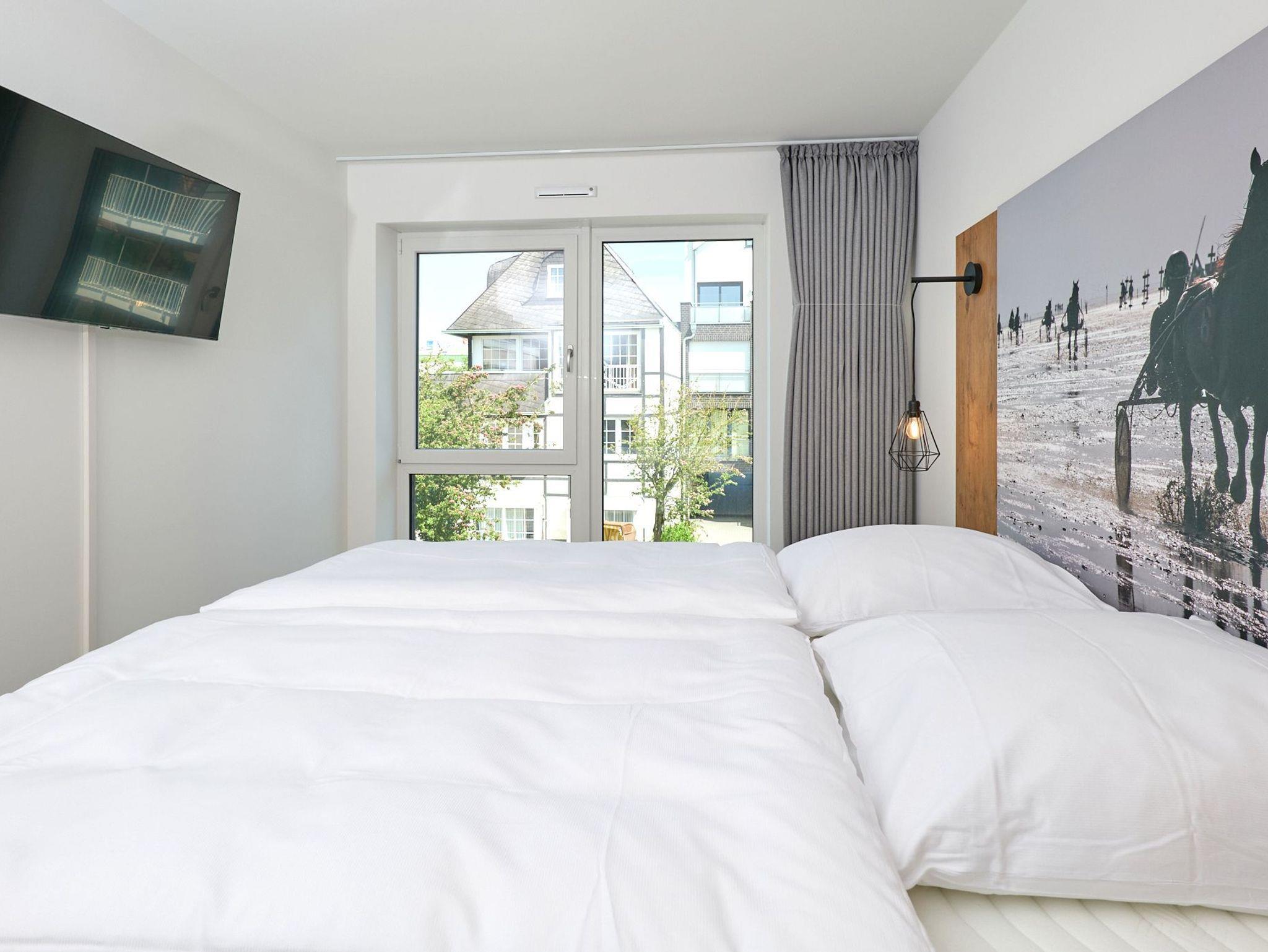 Neubau Mai 2023! Sehr schöne, moderne 3-Raum-Wohnung bis 4 Pers. voll ausgestattet auf ca. 91 m² in der 2.Etage gelegen, 2 Schlafzimmer mit komfortablen Doppelbetten (Bettwäsche inkl.) und Außenjalousien an allen Fenstern, ebenerdige Dusche/WC, Wohnzimmer mit großer Küchenzeile (Backofen, Geschirrspüler, Mikrowelle), 3x Kabel-TV, Radio, kostenfreies W-LAN-Internet, kleiner Balkon (nord) mit Teilseesicht, Personenaufzug, reservierter Pkw-Stellplatz in der Tiefgarage inkl., es sind keine Haustiere erlaubt und natürlich Nichtraucher. Durchfahrtshöhe Tiefgarage: 2,05m.