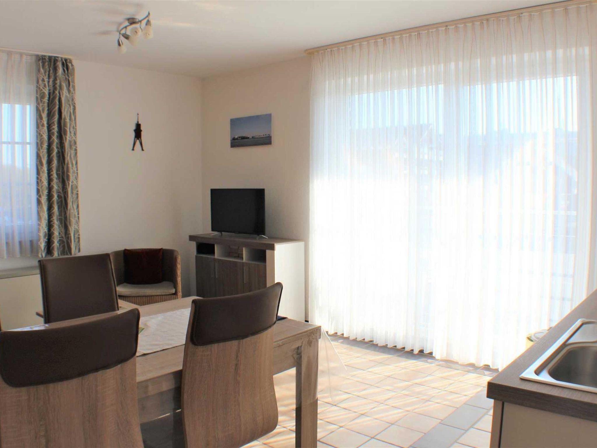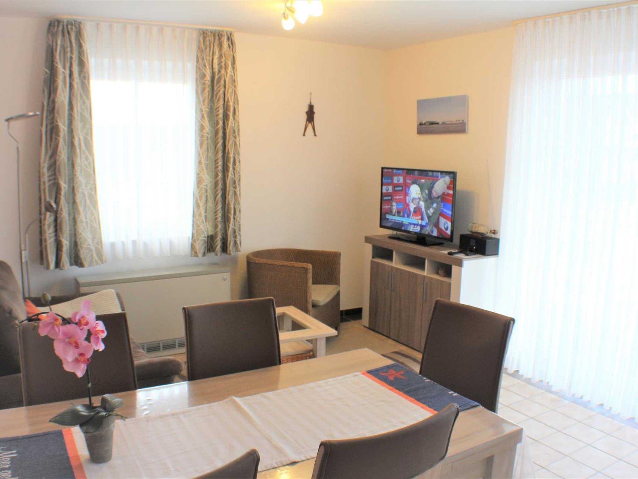 Sie wohnen in einem 3-Zimmer-Appartement in der ersten Etage auf ca. 47 m² Wohnfläche. Ein Schlafzimmer mit Doppelbett, ein Schlafzimmer mit einem Einzelbett, welches für die 4. Person ausgezogen werden kann, heller Wohnraum mit 2er-Couch und Sessel und mit SAT-LED-TV und Internetradio, separater Essplatz, voll ausgestattete Einbauküche mit Backofen incl. Mikrowelle und Spülmaschine, moderne Dusche/WC, Ost-Balkon.