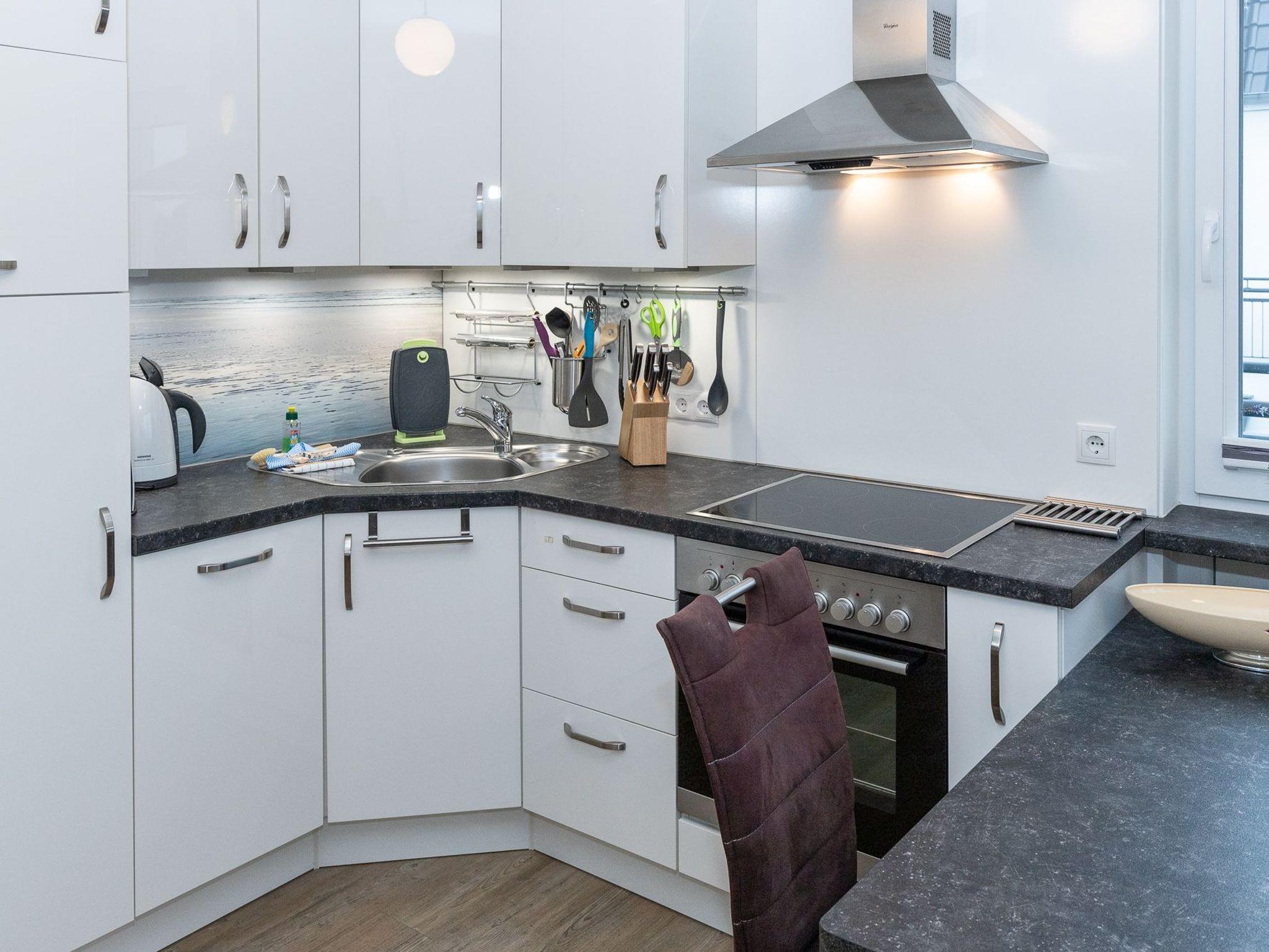 Der Wohn- und Essbereich der Wohnung beeindruckt mit seiner Gemütlichkeit und lädt zum Verweilen ein. Die komfortable Einbauküche bietet Ihnen neben modernen Geräten auch einen Cafissimo Kapsel-Automaten, um Ihren Tag mit einer köstlichen Tasse Kaffee zu beginnen. Die teilweise bodentiefen Fenster lassen viel Licht herein und bieten Ihnen einen herrlichen Ausblick. Von der Dachterrasse aus können Sie sogar einen kleinen Blick auf die Nordsee erhaschen.