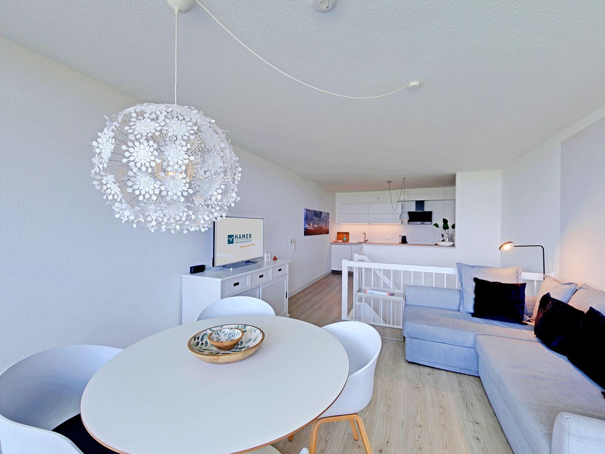Schöne neu renovierte 2-Raum Wohnung über zwei Etagen auf ca. 60m². Das Schlafzimmer im EG mit Doppelbett Kabel-TV. Du/Wc. Im 1. OG befindet sich das Wohn-/Schlafzimmer mit Querschläfer, Kabel-TV, Bose-Soundlink. Küchenzeile mit Vollausstattung (Geschirrsp. Mikrow. etc.) Balkon zur Wasserseite mit dem einmaligen Blick auf die Elbmündung. Die Wohnung verfügt über Fußbodenheizung, kostenfreies W-Lan und ist allergikergerecht ausgestattet. Tiefgaragenstellplatz #2 (Durchfahrtshöhe 1,90m), Keine Haustiere erlaubt. Nichtraucher