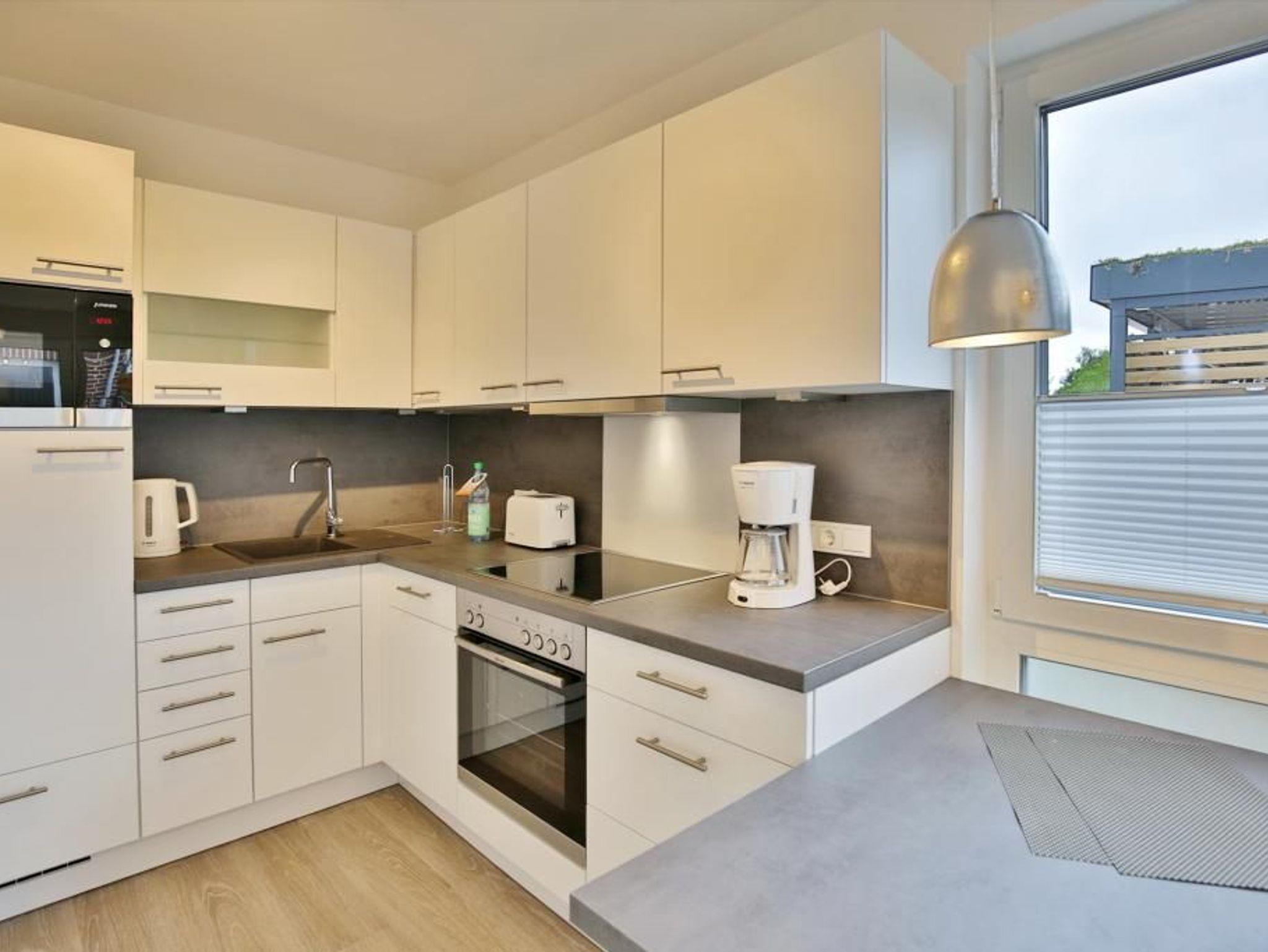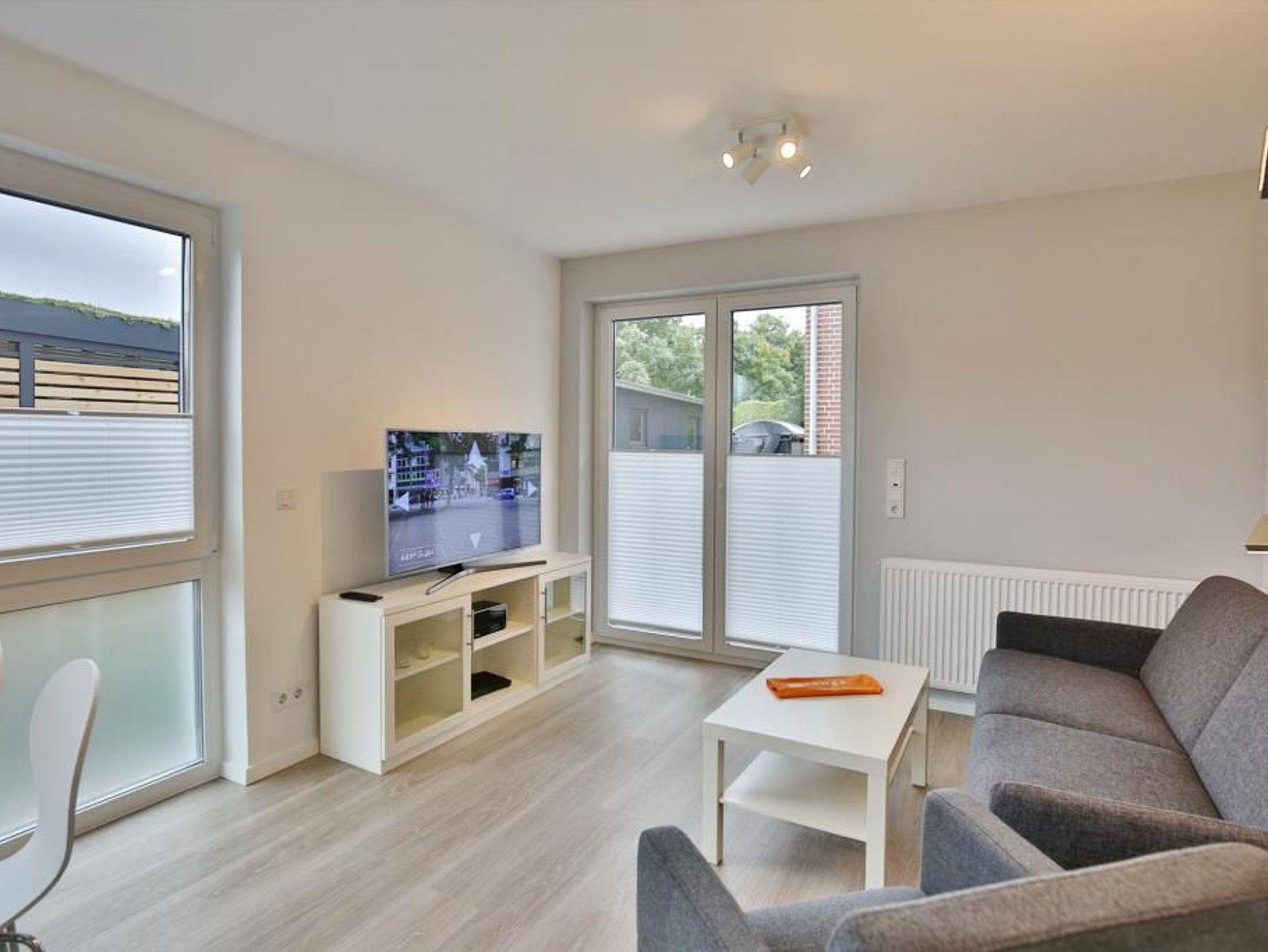 Sehr geschmackvoll und vollständig ausgestattete Ferienwohnung auf ca. 47m² bis 3 Pers., EG mit großer Terrasse (süd), 1 Schlafzimmer mit Doppelbett u. TV, Wohn-/Schlafzimmer mit hochwertiger Schlafcouch, TV, Blue-Ray-DVD, kostenfreies W-LAN, vollständige Küchenzeile mit Geschirrspüler, Mikrowelle, Backofen, Gefrierfach, ebenerdige Dusche/WC mit Föhn, alle Räume sind mit Rollladen zu verdunkeln, Nichtraucherwohnung, reservierter Pkw-Stellplatz #4, keine Haustiere gestattet. Hinweis der Eigentümer: Elektrofahrzeuge dürfen nicht am Ferienobjekt geladen werden.