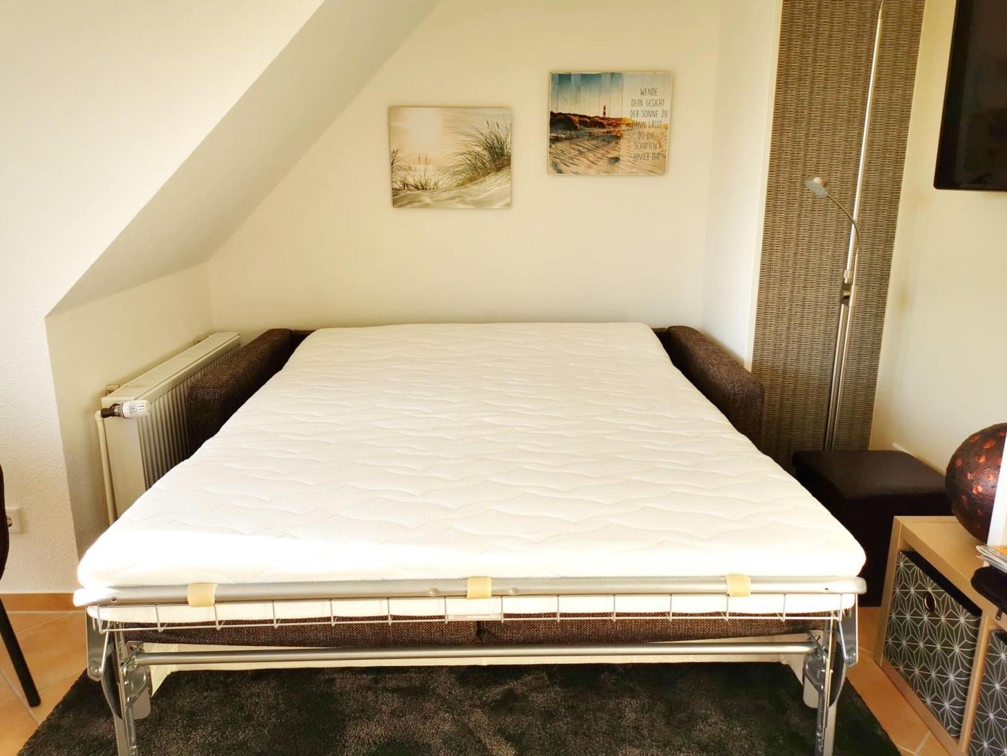 Diegemütliche Couch kann zum Doppelbett mit Matratze (140 cm x 200 cm) umgebaut werden. Für Unterhaltung sorgen ein großer LED-Flachbildfernseher (43“) sowie eine Stereoanlage. Wir haben für die Wohnung einen eigenen WLAN-Anschluss eingerichtet, den Sie kostenlos nutzen können.