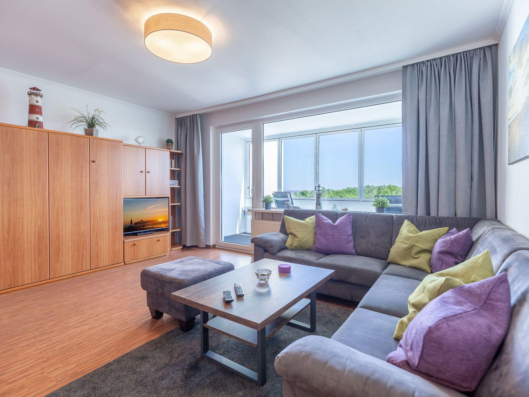 Ein komfortables Ecksofa lädt zum Verweilen ein. Währenddessen sorgen ein Flachbild-TV und kostenloses WLAN für beste Unterhaltung. Den Abend können Sie auf dem verglasten Balkon bei einem Glas Wein mit Blick auf den Weltschifffahrtsweg ausklingen lassen. Die Verglasung des Balkons lässt sich auf Wunsch öffnen. Ein zweiter Balkon ist vom Schlafzimmer aus zugänglich.