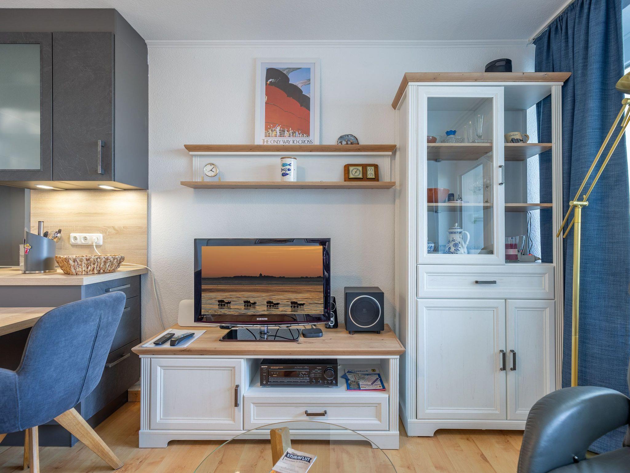 Die großzügige Küche ist vollständig mit Backofen, Geschirrspüler sowie Kühlschrank mit Gefrierfach ausgestattet und lässt für Selbstversorger keine Wünsche offen. Ein LCD-Fernseher gewährleistet, dass Sie im Urlaub nicht auf Ihre Lieblingsserie verzichten müssen. Ferienwohnung Nautic 205 ist mit elektrischen Außenjalousien ausgestattet, sodass Sie nicht von der Morgensonne geweckt werden. Der kombinierte Wohn- und Schlafbereich ist mit einem Schlafsofa ausgestattet. Ein Einzelbett im Vorraum ermöglicht getrenntes Schlafen.