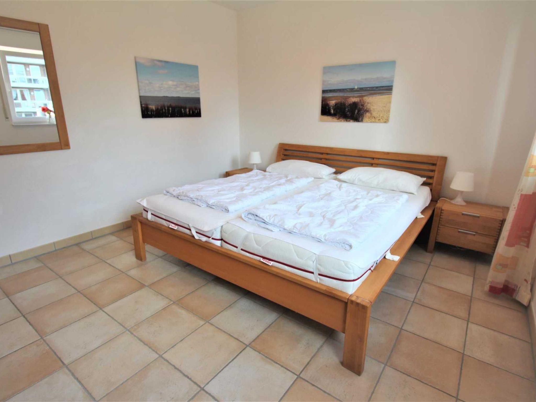 Die Wohnung verfügt über ein Schlafzimmer mit Doppelbett, ein Schlafzimmer mit 2 Einzelbetten,