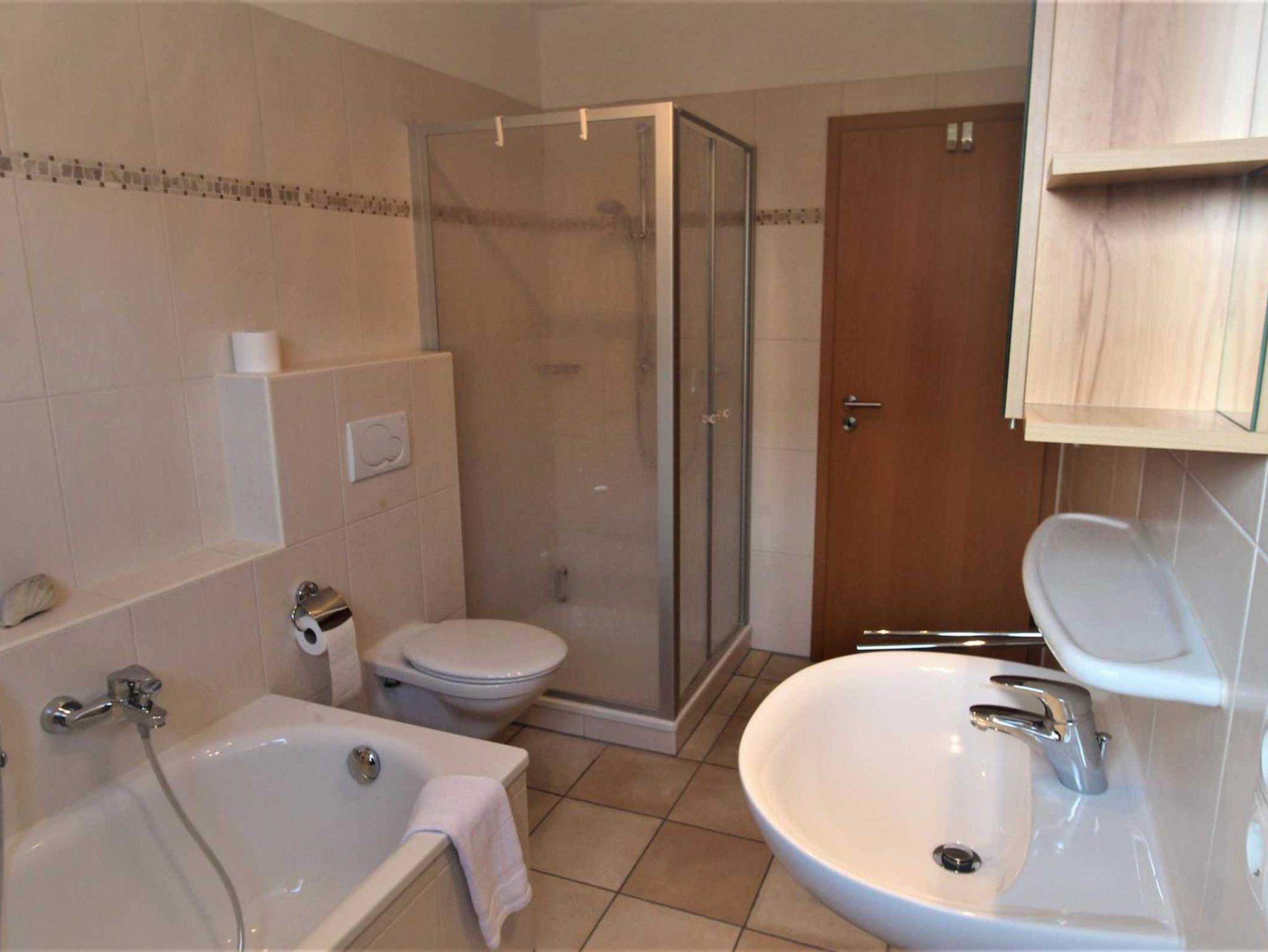 Daneben gibt es ein Bad mit Dusche und WC (Föhn vorhanden).