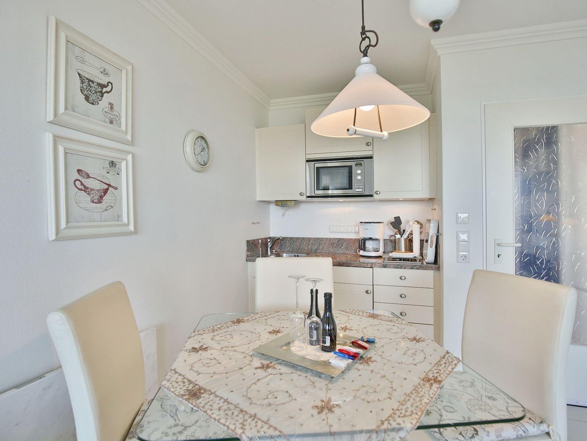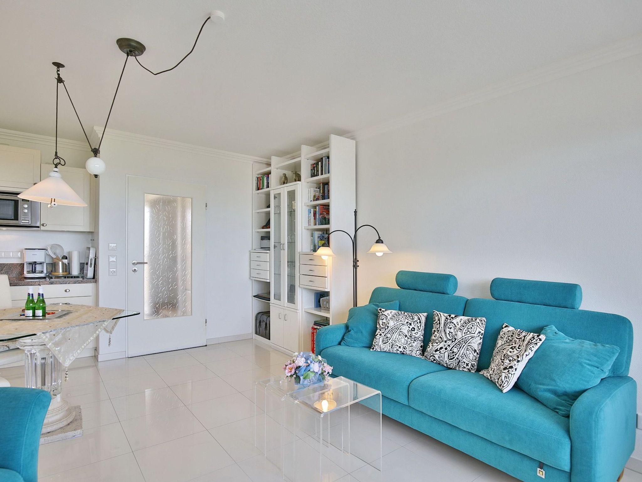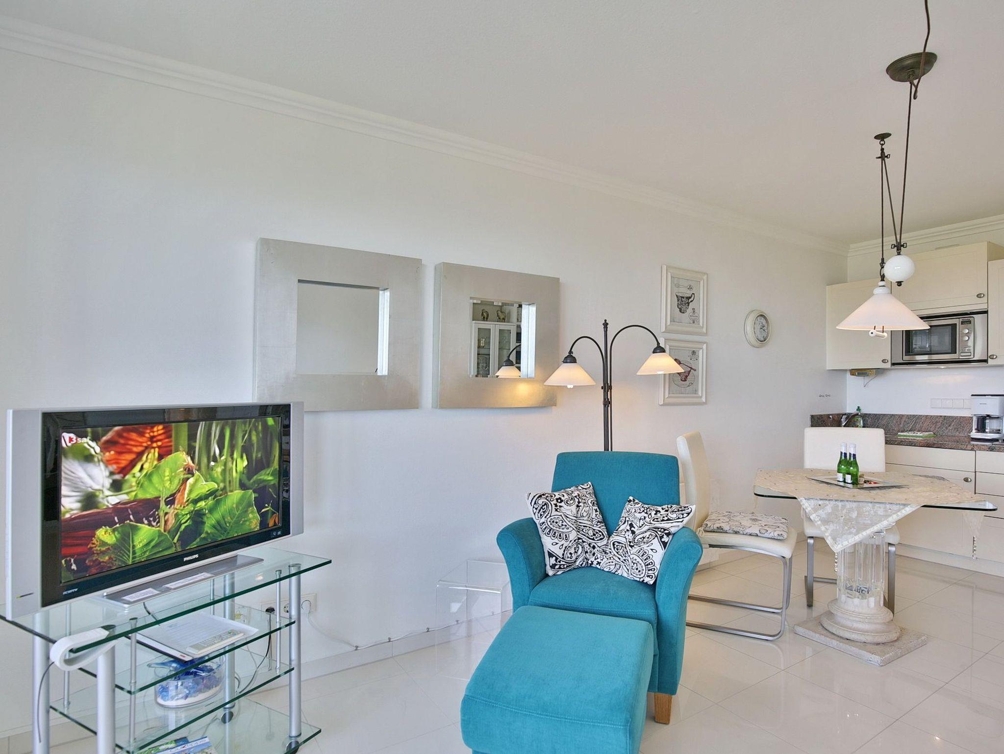 Der kombinierte Wohn-/Essbereich bietet eine hochwertige Küchenzeile mit Miele-Geräten. Unter anderem ist die Küche mit einem 2-Plattenherd, einer Mikrowelle und einem Kühlschrank ausgestattet. Auf der Couchgarnitur und dem Relaxsessel können Sie sich entspannt zurücklehnen und den Meerblick genießen. Für Unterhaltung sorgt neben dem abwechslungsreichen Ausblick auch ein LCD Fernseher und kostenloses WLAN. Darüber hinaus verfügt Ferienwohnung Nautic 309 über einen großen Balkon, der sowohl vom Wohn- als auch vom Schlafzimmer begehbar ist.
