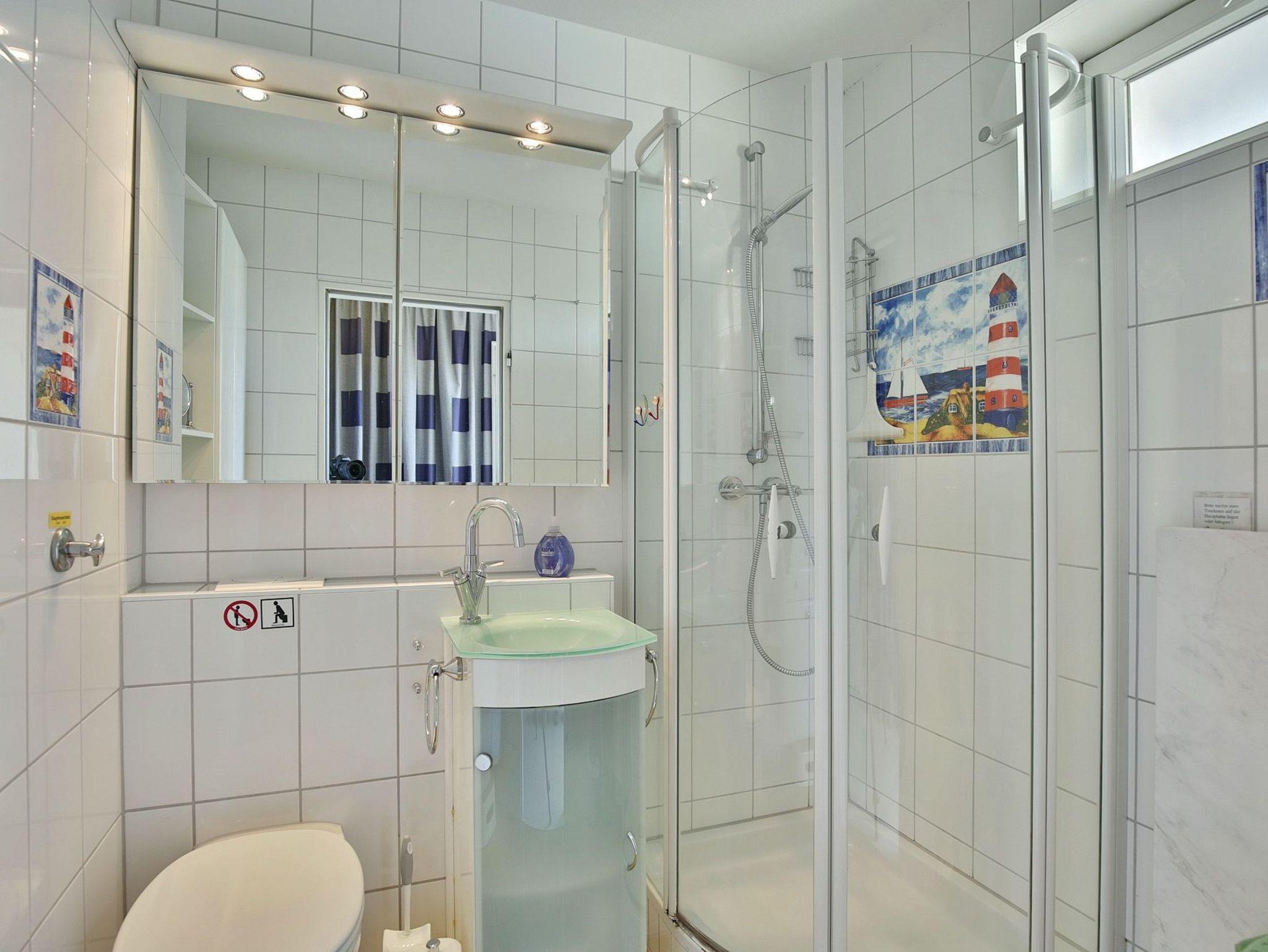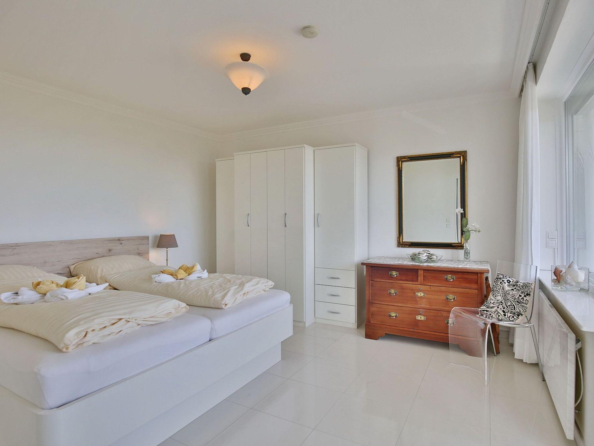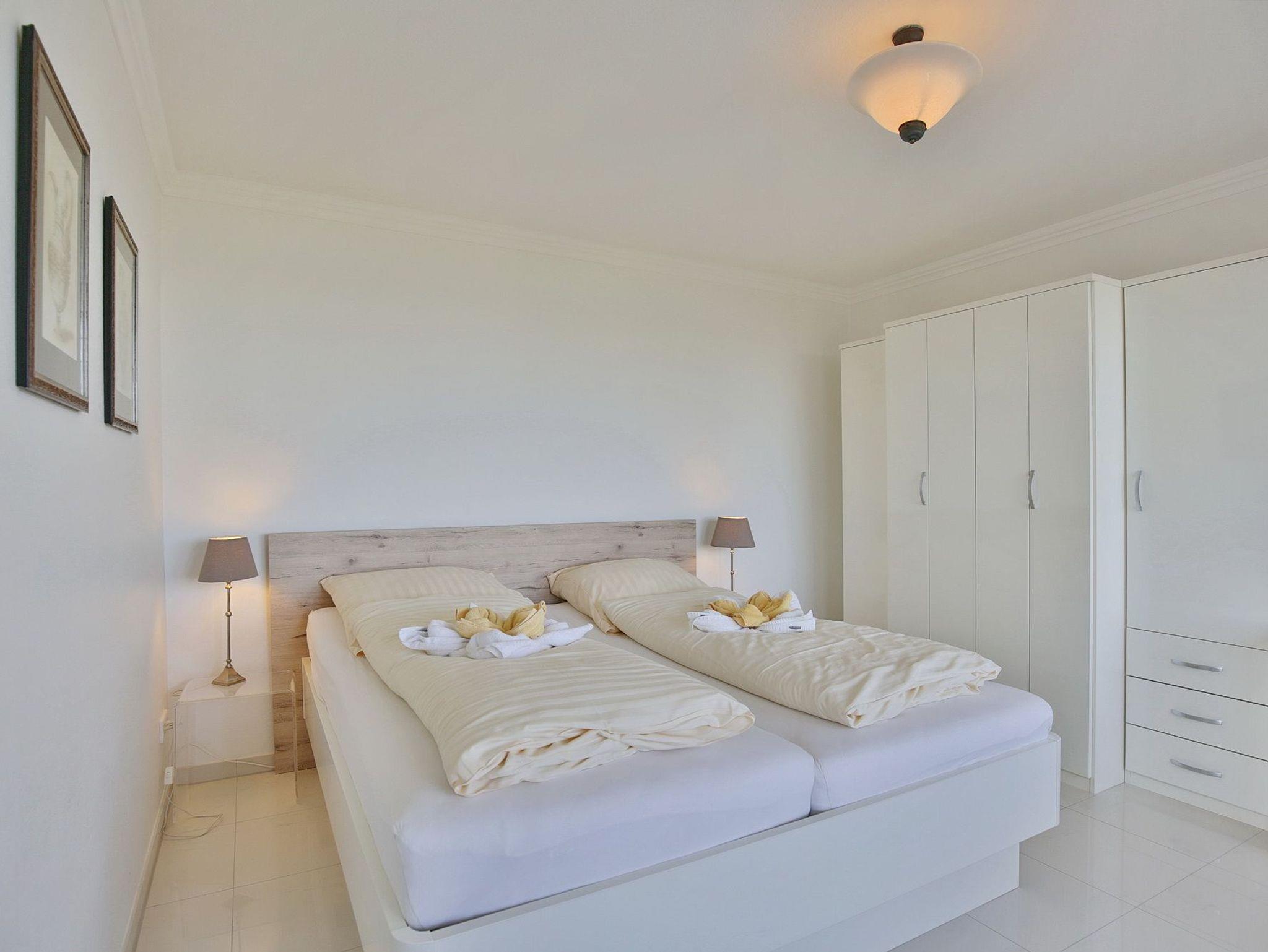 Das separate Schlafzimmer bietet ein Doppelbett (2x90x200). Rückenschonende Matratzen sorgen dafür, dass Sie sich auch im Schlaf erholen. Auch das separate Schlafzimmer bietet einen fantastischen Meerblick und sorgt dafür, dass Sie schon beim Aufstehen den grandiosen Meerblick genießen können. Zur Ferienwohnung gehört ein modern saniertes Bad mit Dusche und WC.
