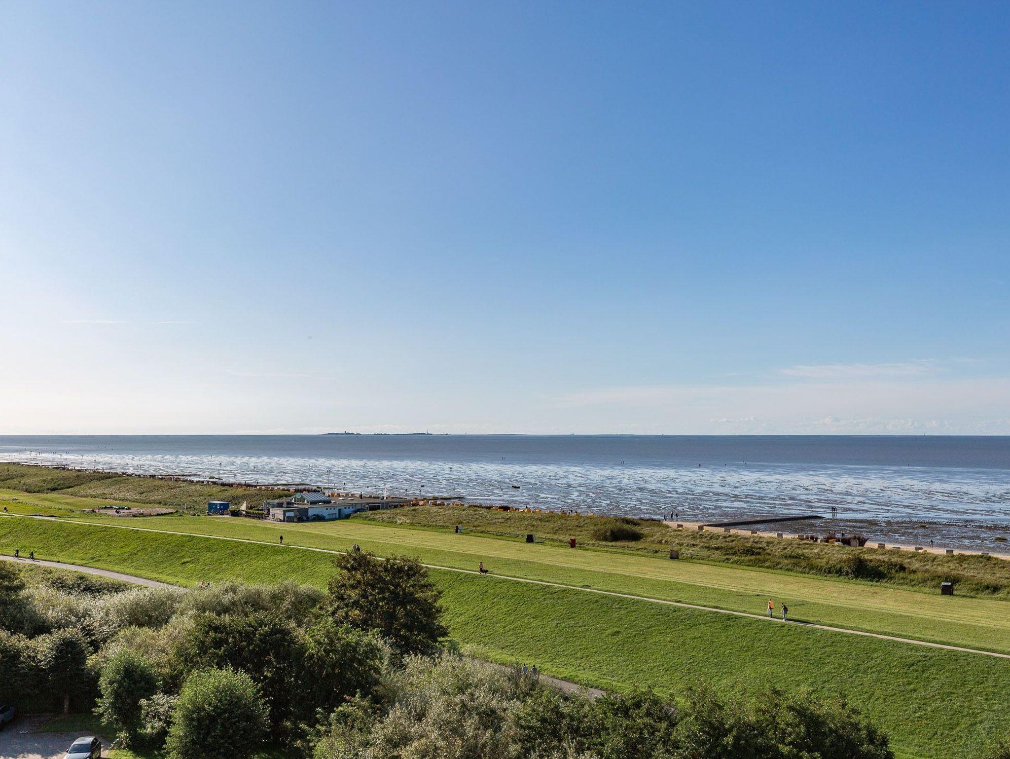 Die Ferienwohnung Atlantic 605 in Cuxhaven bietet einen einzigartigen Rundumblick auf die Nordsee und einen direkten Strandzugang.