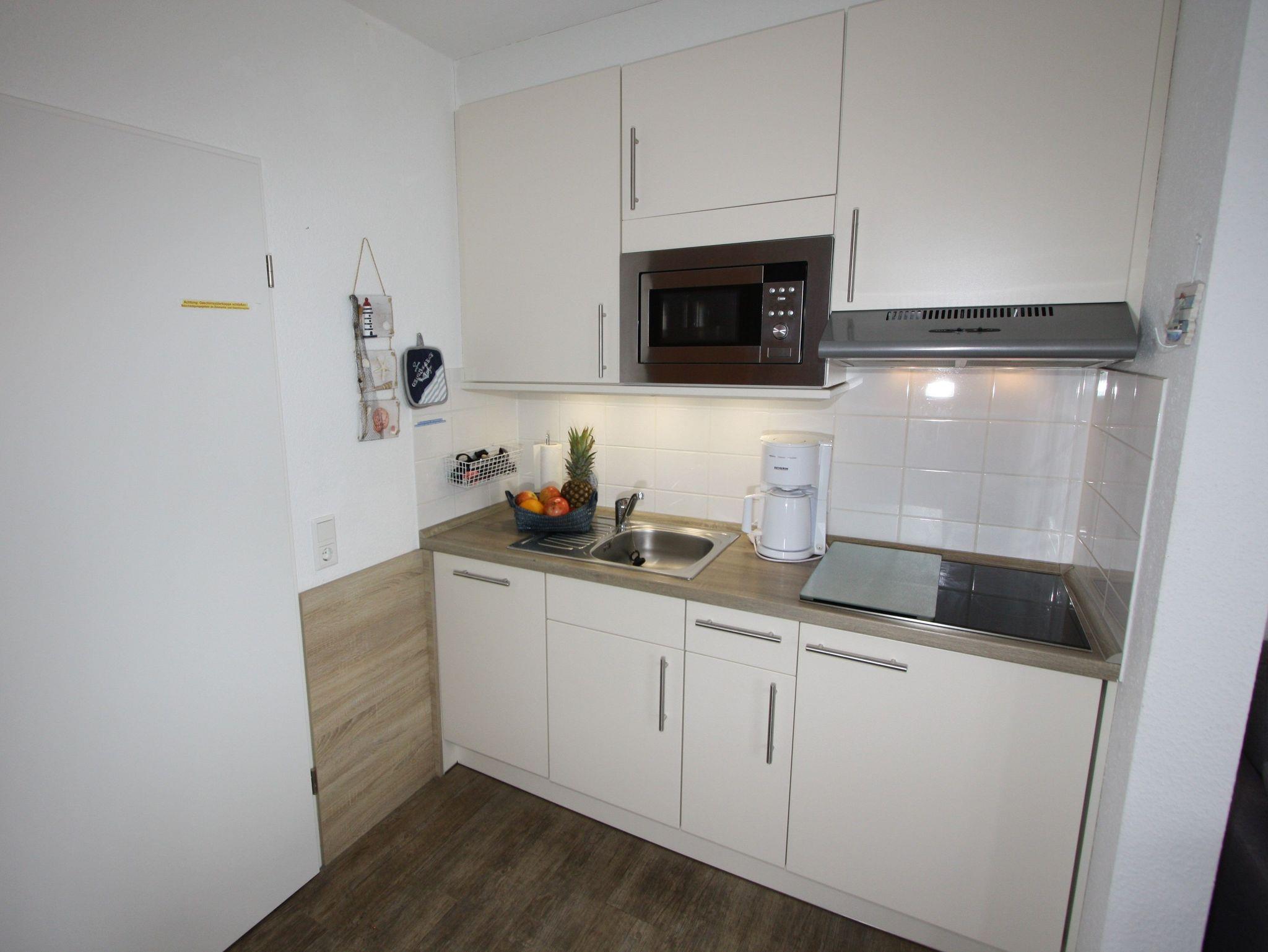Voll ausgestatteter Küchenbereich mit Geschirrspüler, Mikrowelle und zusätzlich mit Senseo-Kaffeemaschine für den guten Kaffeegenuss.