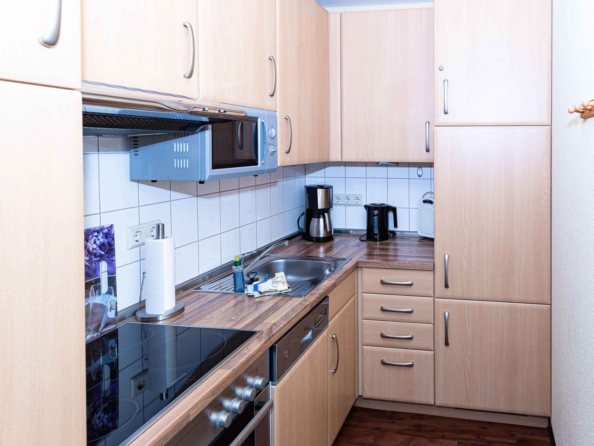 Küche komplett ausgestattet: Geschirrspüler, Cerankochfeld, Backofen, Mikrowelle [&] mehr