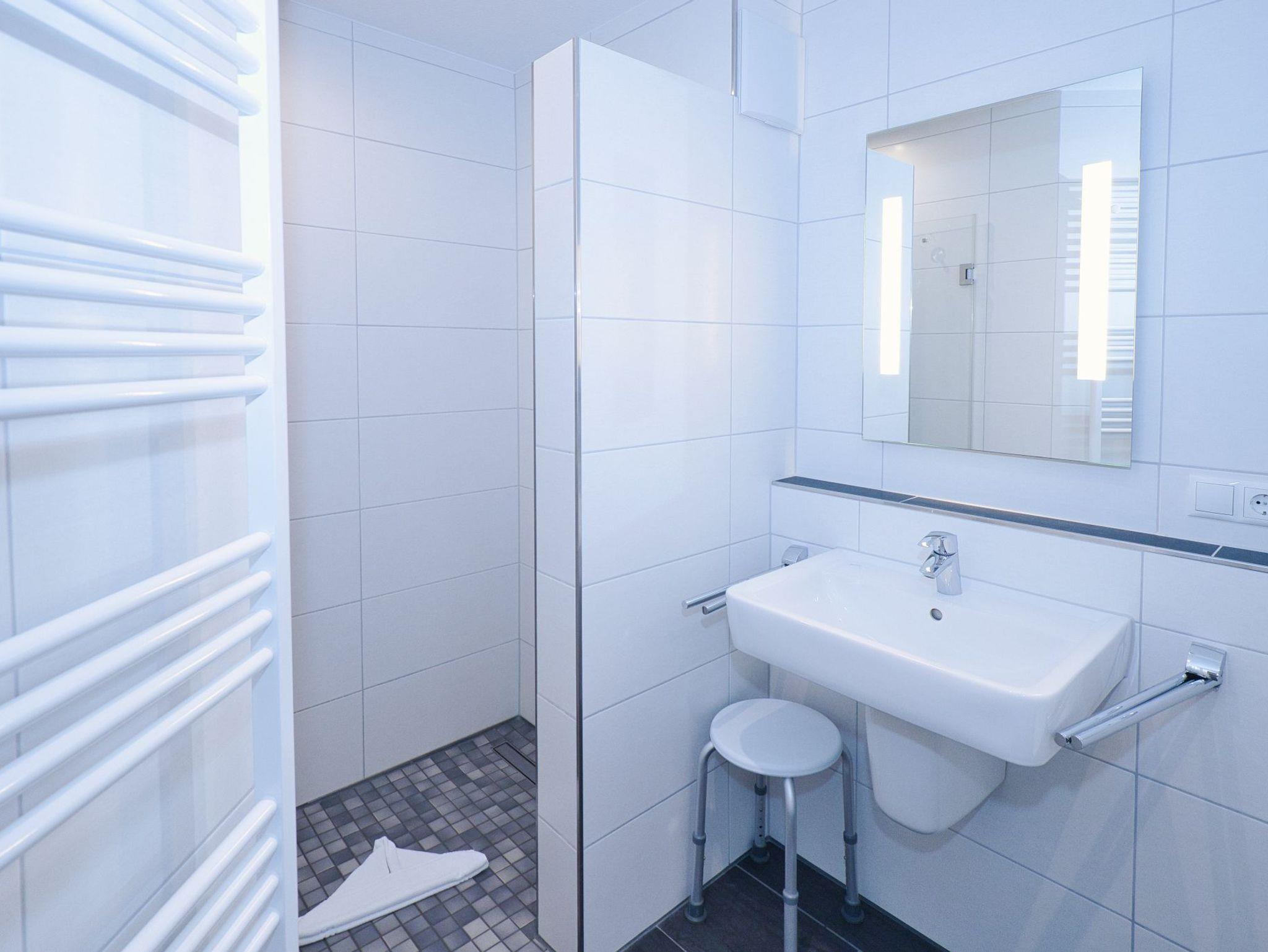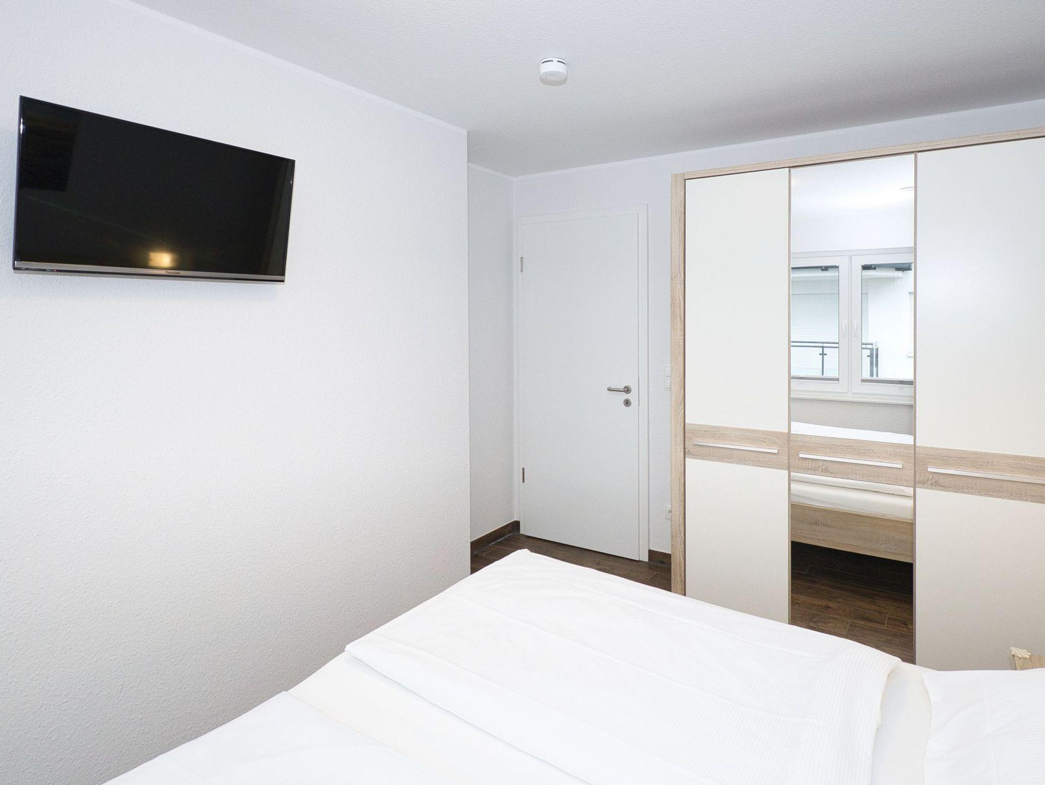 Die Wohnung ist barrierefrei und über einen Fahrstuhl von der Tiefgarage aus zugänglich, der Ihnen einen direkten Zugang zum Treppenhaus bietet. Bei der Einrichtung wurde viel Wert auf Modernität und großzügige Raumgestaltung gelegt. Der Schlafbereich verfügt über bequeme Betten und einen geräumigen Kleiderschrank, um Ihnen den nötigen Komfort zu bieten. Eine schallgedämmte Eingangstür, Außen-Jalousien, eine Garderobe sowie das Duschbad mit WC runden das Angebot ab.