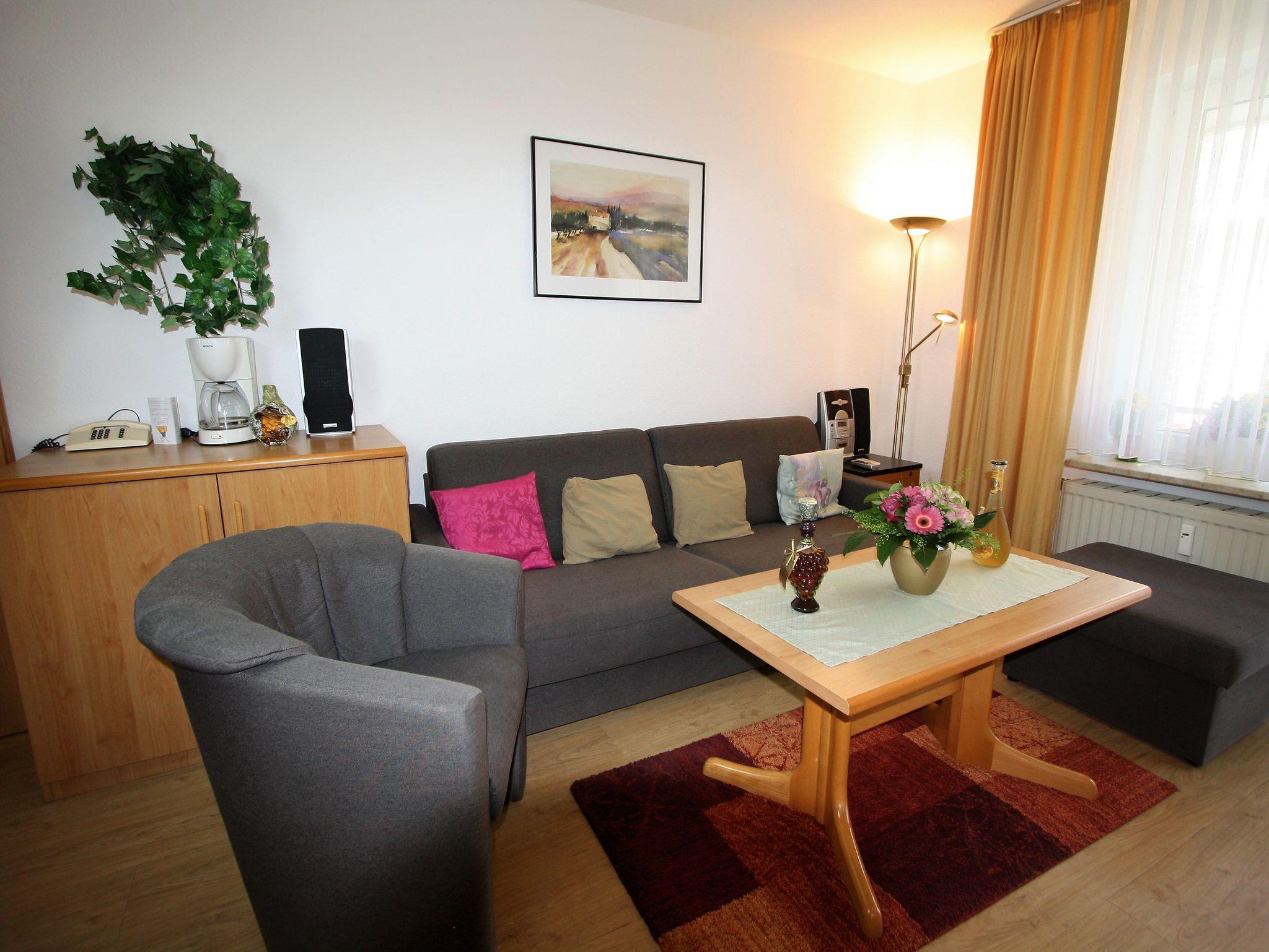 2-Zimmer-Appartement für bis zu 4 Personen auf ca.45 m². Schlafzimmer mit Doppelbett, Wohn-/Schlafraum mit Doppelbettcouch, TV, separatem Essplatz, voll ausgestattetem Küchenbereich, Terrasse oder Balkon, Bad mit Dusche/WC. teilweise WLAN und PKW-Stellplatz vorhanden.