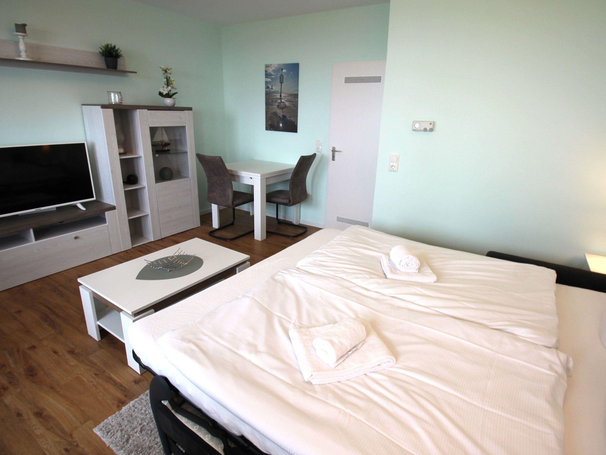 Das geschmackvoll gestaltete Appartement mit 35 m² Wohnfläche überzeugt durch eine durchdachte Raumaufteilung. Der Wohn-/Schlafraum verfügt über eine komfortable Doppelbettcouch, einen separaten Essplatz und einen topmodernen Flachbild-TV. Die voll ausgestattete Küche mit Mikrowelle lädt dazu ein, kulinarische Köstlichkeiten zu zaubern.
