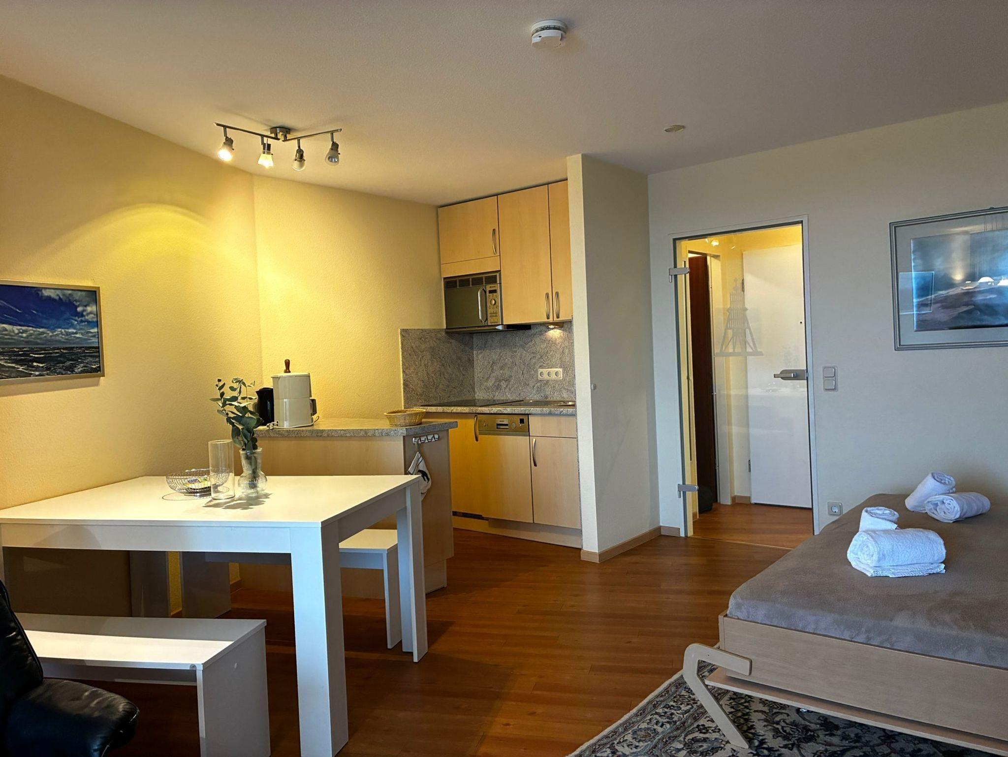 Sie wohnen in einem hellen 1-Zimmer-Appartement für bis zu 4 Personen auf ca. 40 m² im 6. OG mit