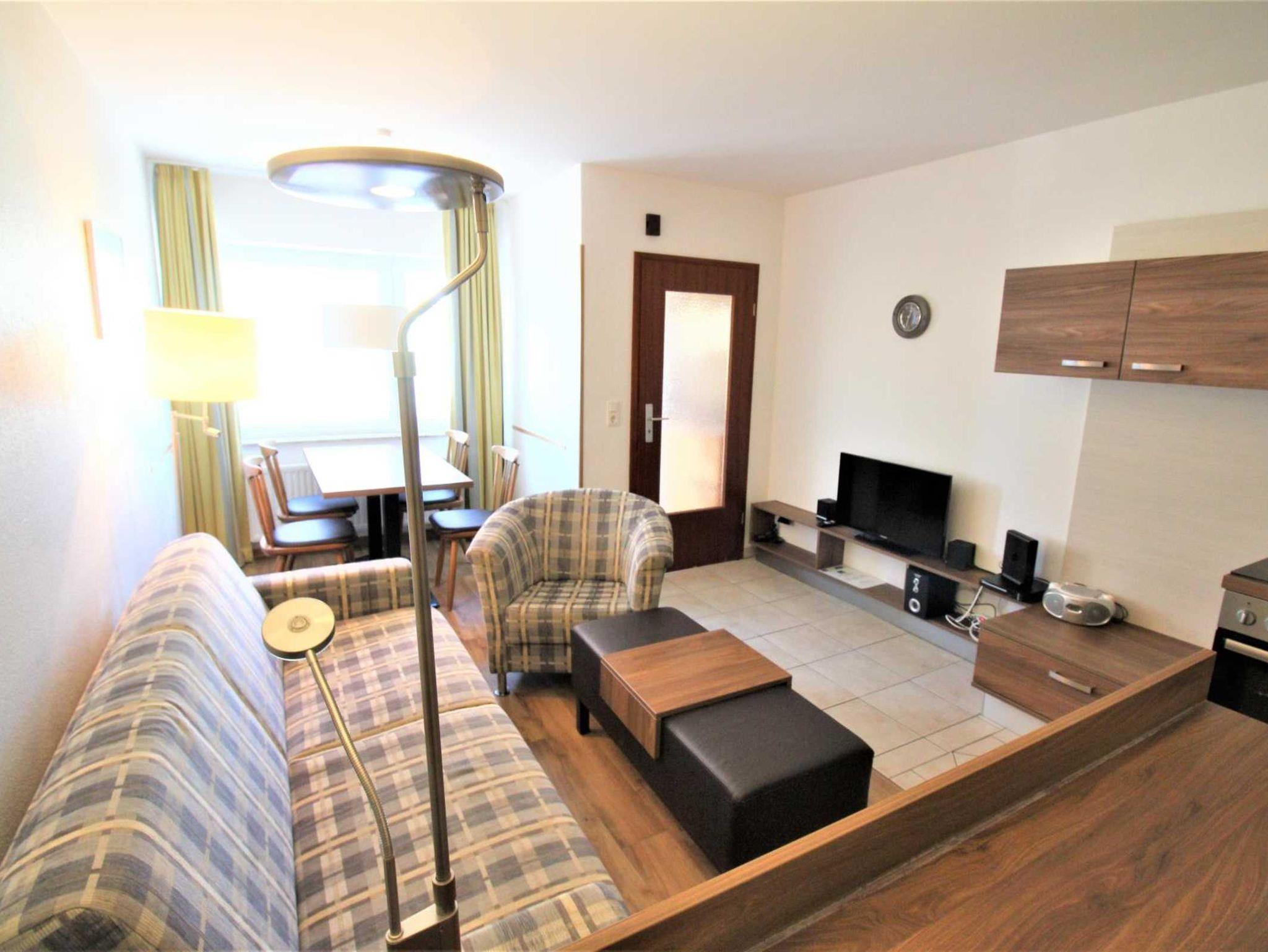 Sie wohnen in einem 2-Zimmer-Appartement für bis zu 4 Personen über 2 Etagen, ca. 50 m².