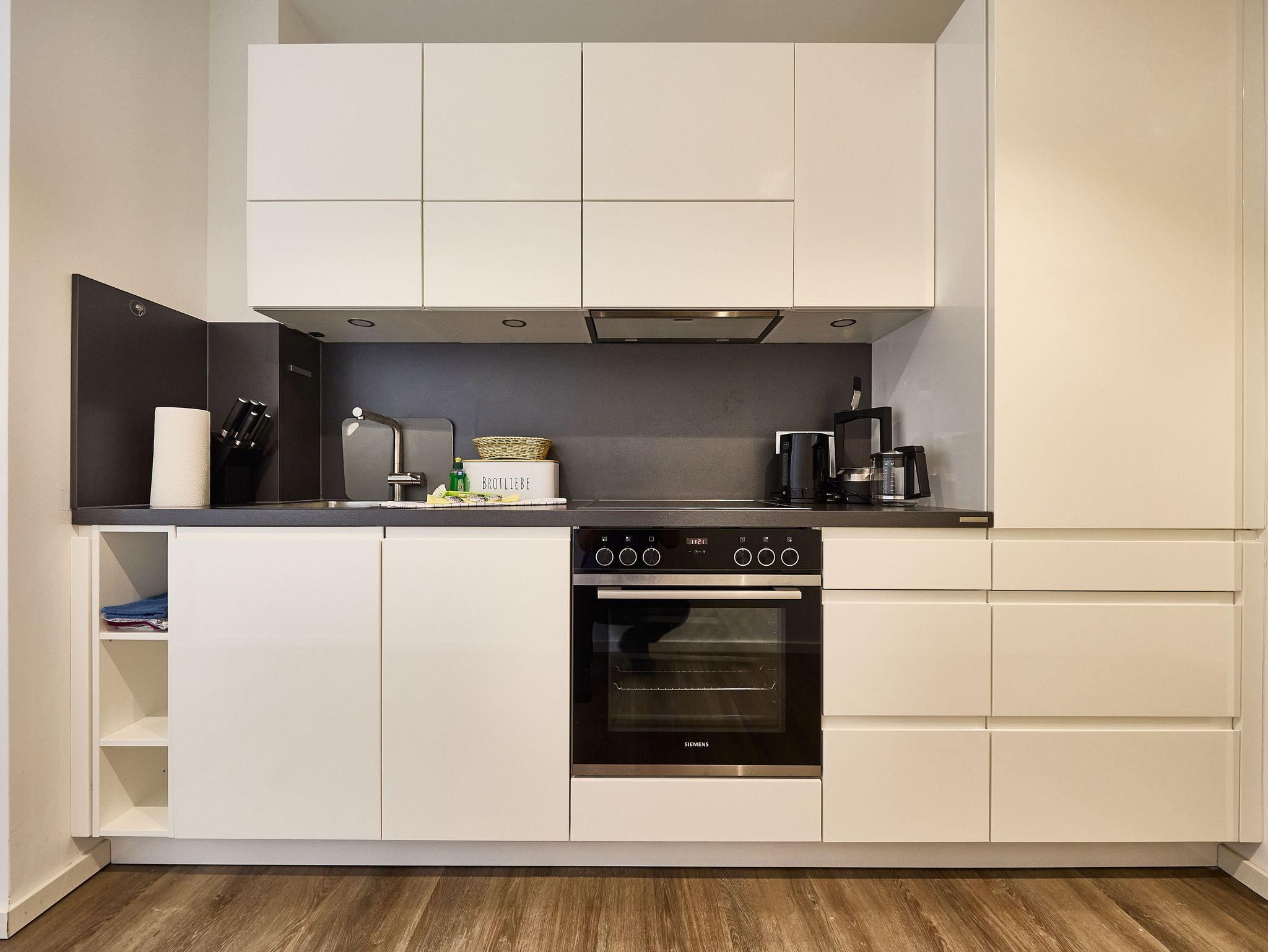 • Küche: Induktionskochfeld, Mikrowelle, Geschirrspüler, Kühlschrank mit Gefrierfach