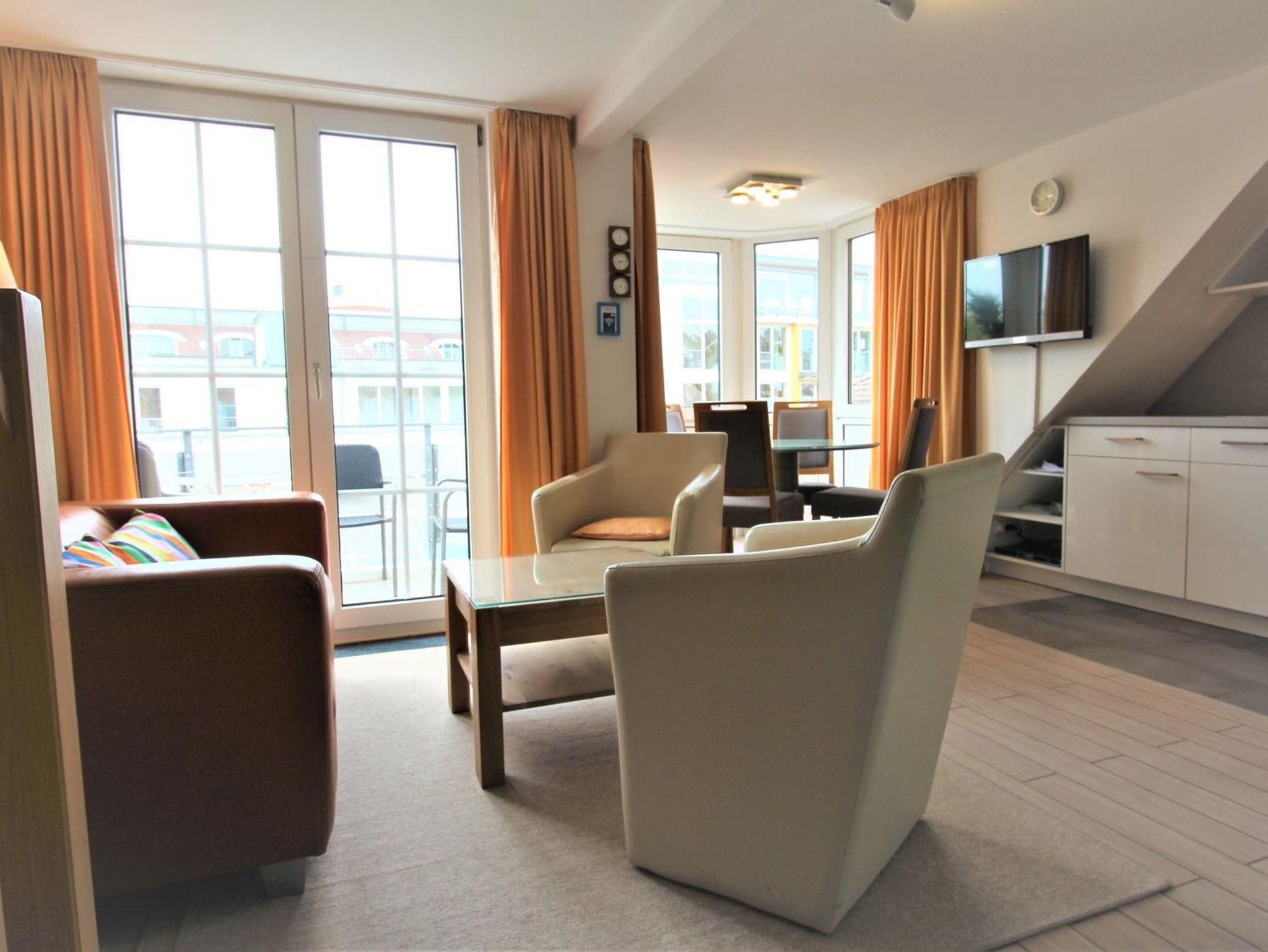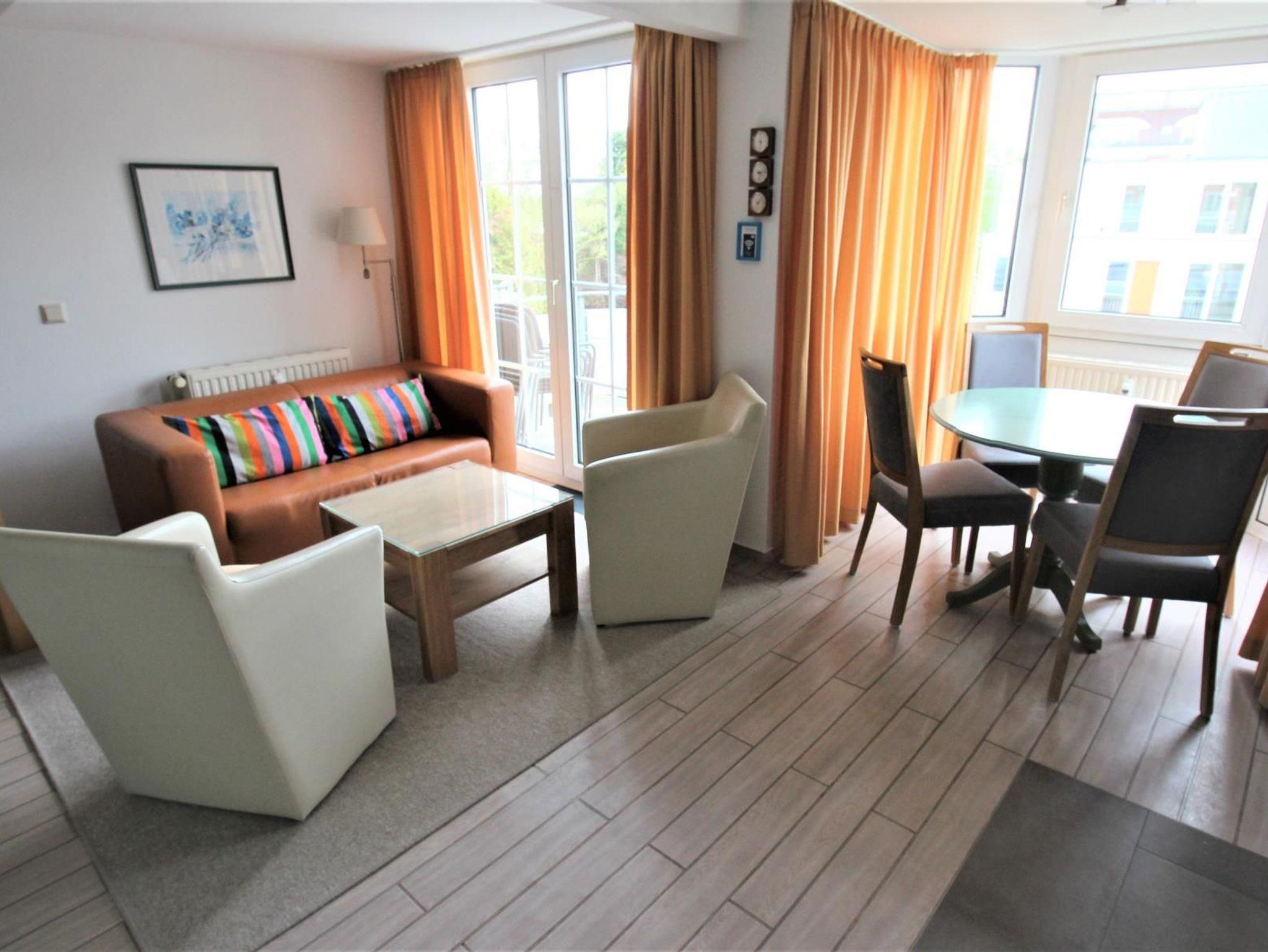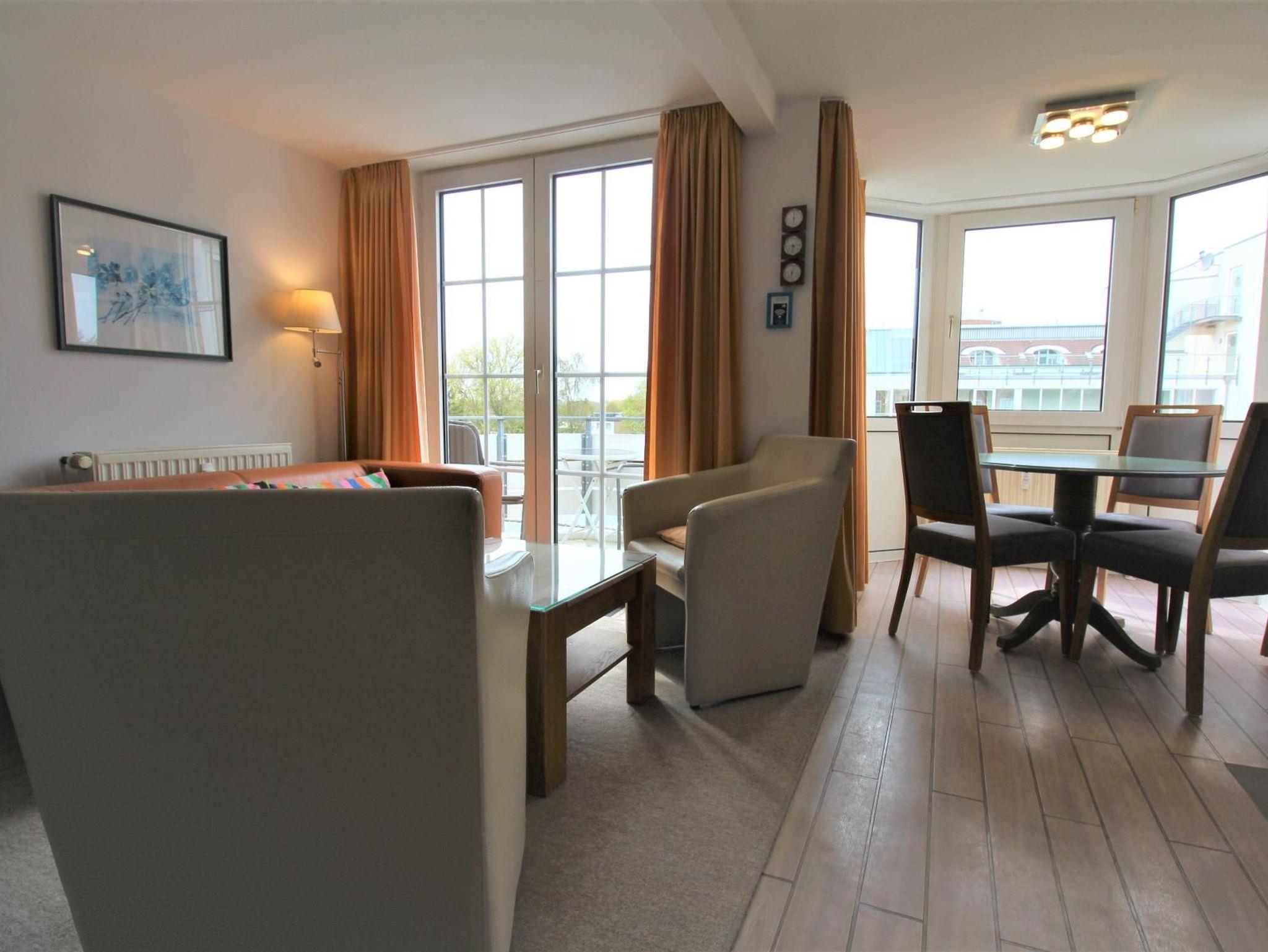 2-Zimmer-Appartement für bis zu 4 Personen auf ca. 40-45 m². Schlafzimmer mit Balkon und Doppelbett, Wohn-Schlafraum mit Balkon und bequemer Doppelbettcouch, TV, separatem Essplatz im Erker und voll ausgestattetem Küchenbereich. Bad mit Dusche/WC. WLAN und PKW-Stellplatz vorhanden.