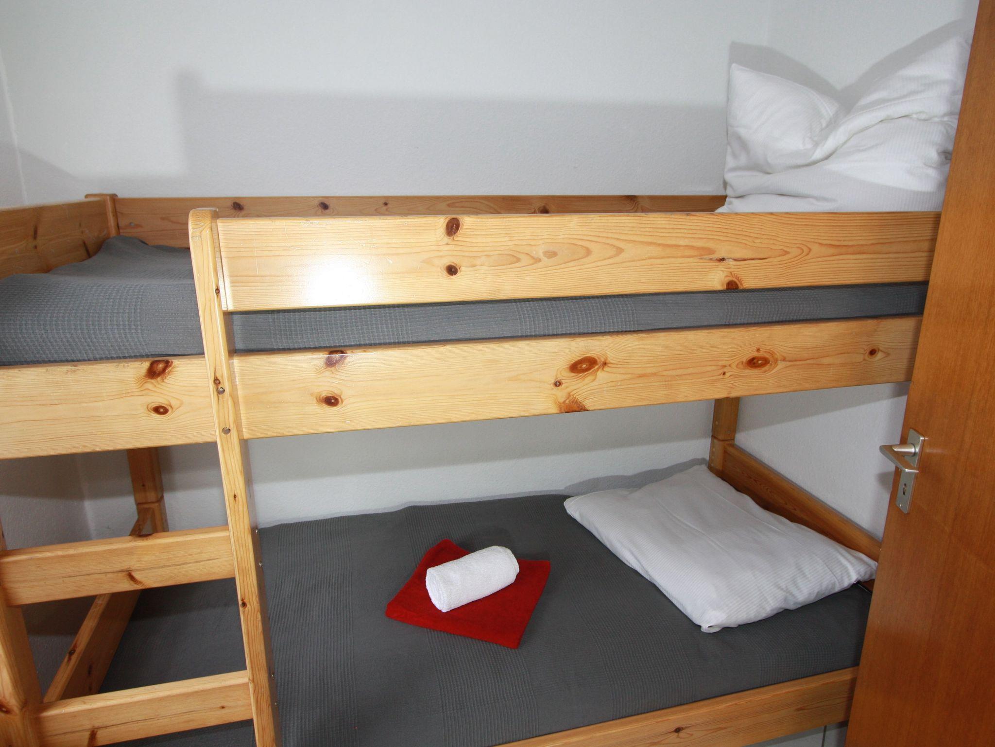 Dusche/WC vorhanden, sowie separates Kinderzimmer mit Etagenbett, außerdem ist eine große Terrasse (gemeinschaftlich von der Anlage nutzbar) aus dem Wohnzimmer zugänglich.