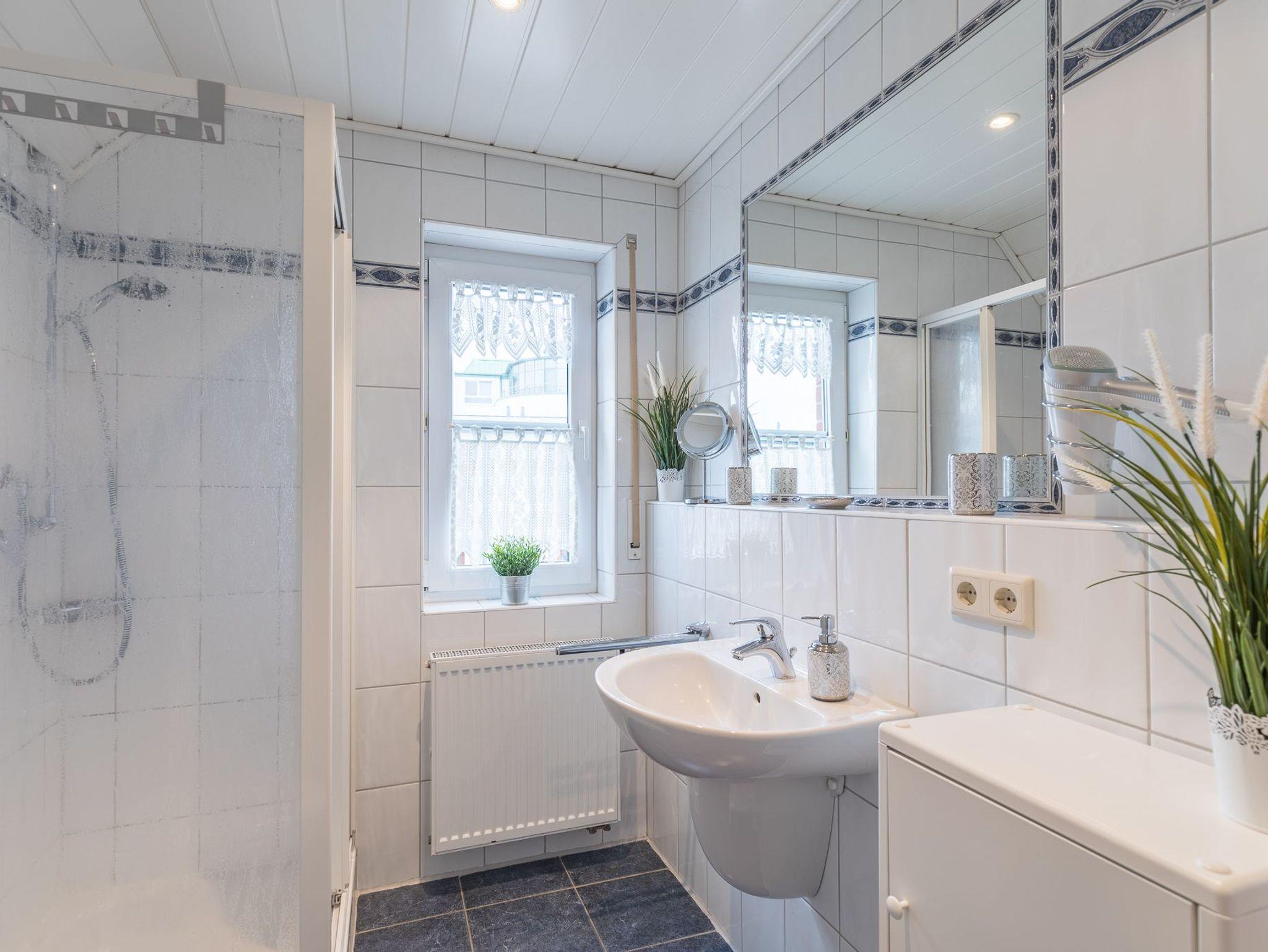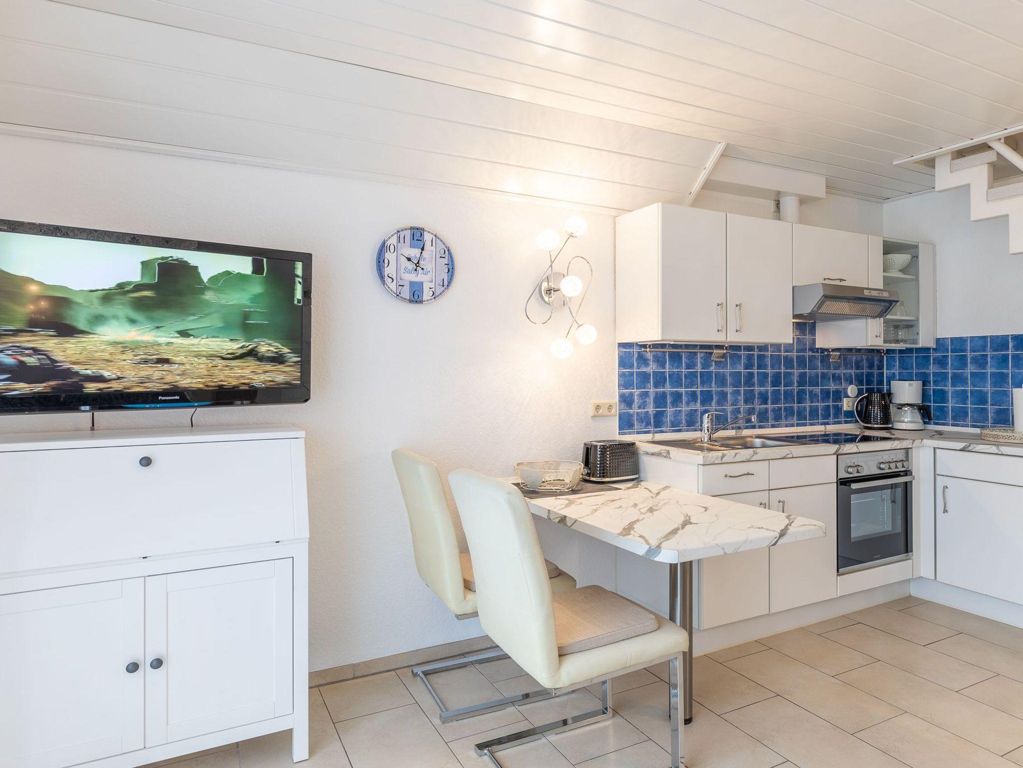 Die Ferienwohnung mit einer Größe von ca. 35m² Wohnfläche ist ideal für 2 Personen ausgestattet (3 Personen finden hier auch platz). 1 Wohnzimmer mit Essplatz, Sofa-/Schlafsofa, Sessel, 1 Flachbildfernseher, Küchenzeile (Cerankochfeld, Backofen, Kühlschrank, Mikrowelle, Kaffeemaschine, Wasserkocher und Toaster) und Zugang zum kleinen Balkon, 1 Schlafzimmer im Obergeschoss (über eine schmalere Treppe erreichbar) mit 2 Einzelbetten und Schrank, Flur, Bad mit Dusche, WC, Waschbecken, Spiegel und Fenster, Nichtraucherwohnung, keine Haustiere, PKW Stellplatz am Haus.