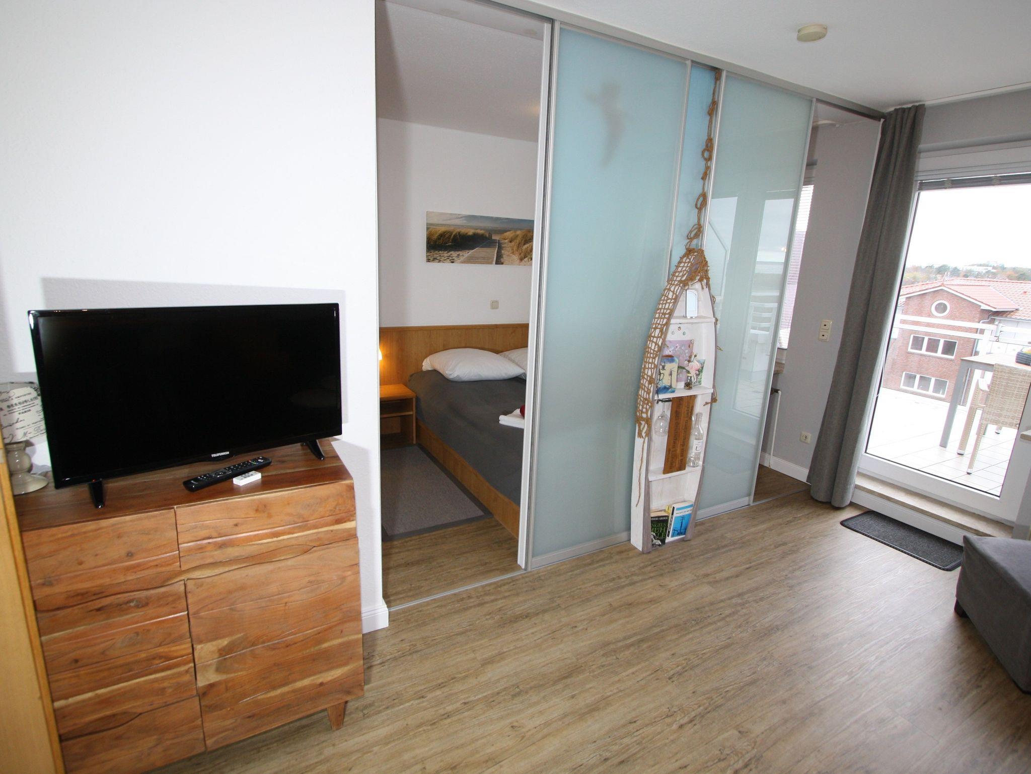 Die 1,5-Zimmerwohnung für bis zu 2 Personen, ist ca. 46 m² groß und verfügt über eine ca. 13 m² große Dachterrasse/Balkon mit herrlichem Blick auf die Nordsee und die Insel Neuwerk.