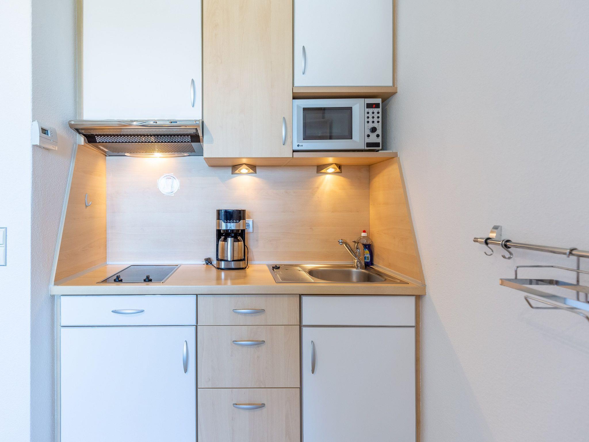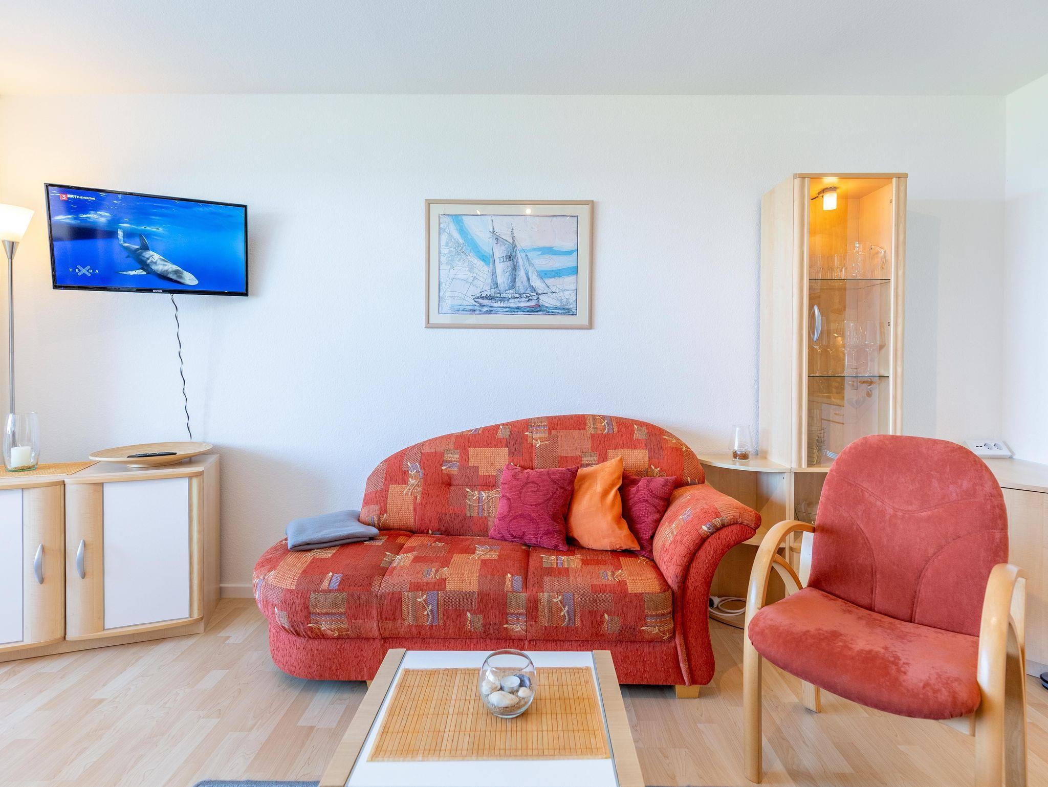 Am Morgen die erste Tasse Tee bei traumhaftem Meerblick genießen oder am Abend die malerische Kulisse des beleuchteten Hafen bestaunen. In unserer 35 m² großen Ferienwohnung mit Meerblick erleben Sie unvergessliche Urlaubsstunden. Warme Farben sorgen für ein einladendes und gemütliches Ambiente. Nach einem erlebnisreichen Tag können Sie in den komfortablen Armlehnstühlen entspannen und die Parade der vorbeiziehenden Segelschiffe, Krabbenkutter und Luxus Liner beobachten. Eine kleine, komplett ausgestattete Küchenzeile ist im Wohnbereich integriert.