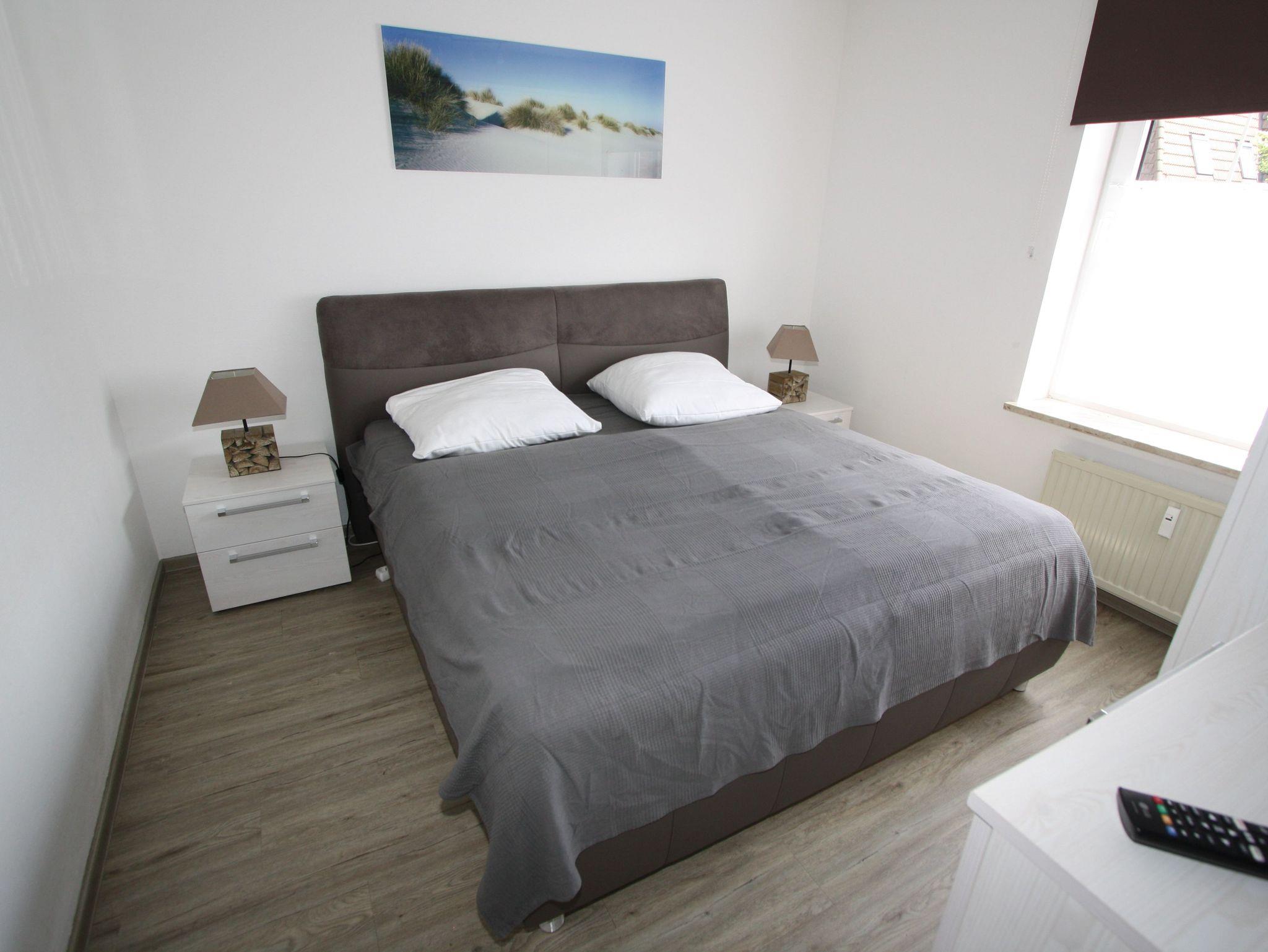 - Ein stilvolles Schlafzimmer mit Doppelbett, Komfortmatratzen u. TV