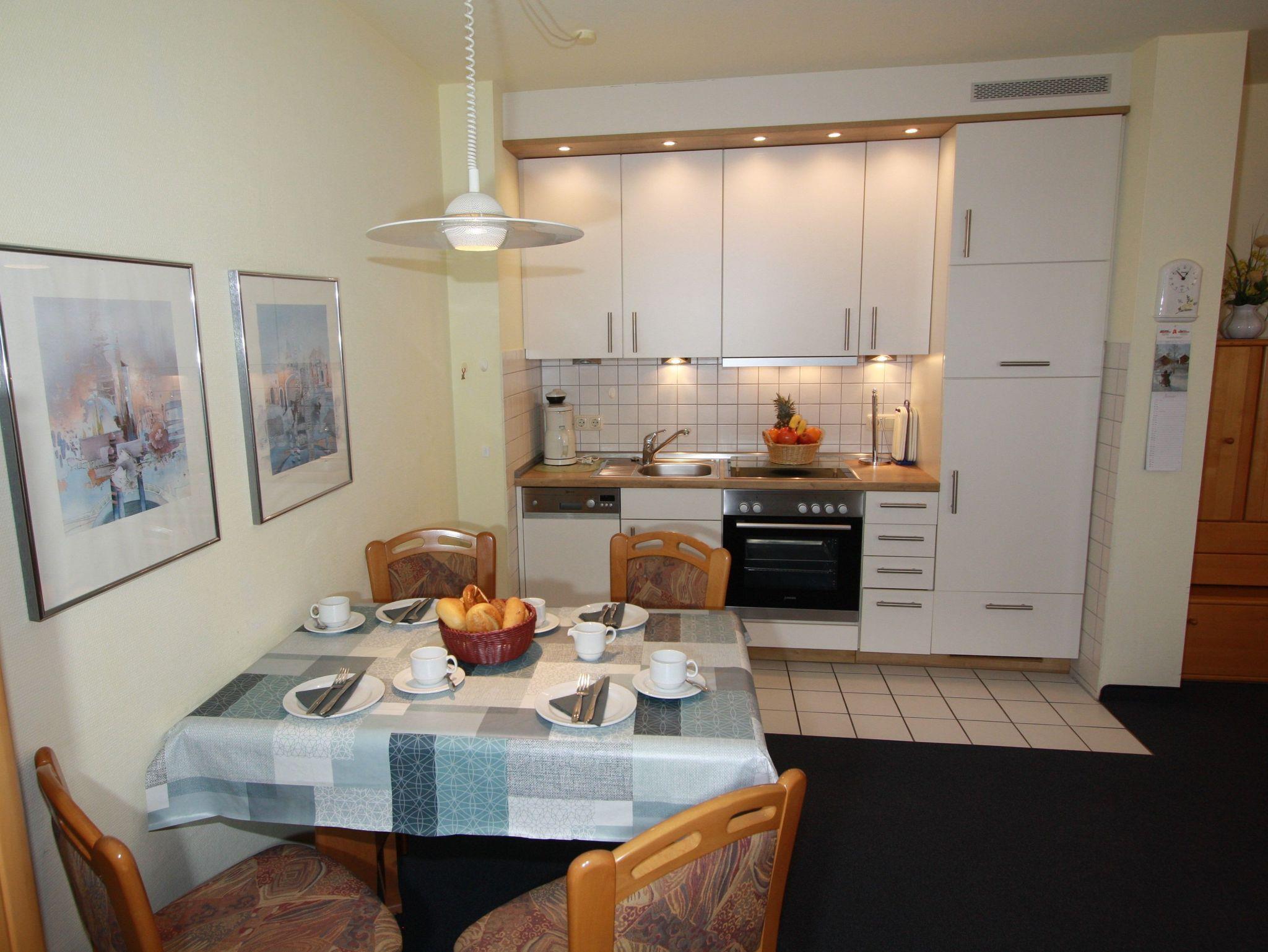 Unsere helle, freundliche und für bis zu 2 Personen eingerichtetet Ferienwohnung mit 55 m² Wohnfläche im 2. Obergeschoss, in ruhiger und sonniger Lage bietet Ihnen: